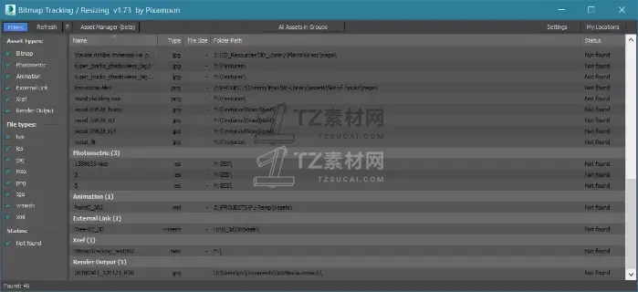 Pixamoon Bitmap Tracking Resizing & Library Track Relink是一套专为3ds Max打造的专业级贴图管理插件组合,用于解决复杂场景中常见的贴图丢失、路径错误、纹理过大、资源库合并失败等问题。