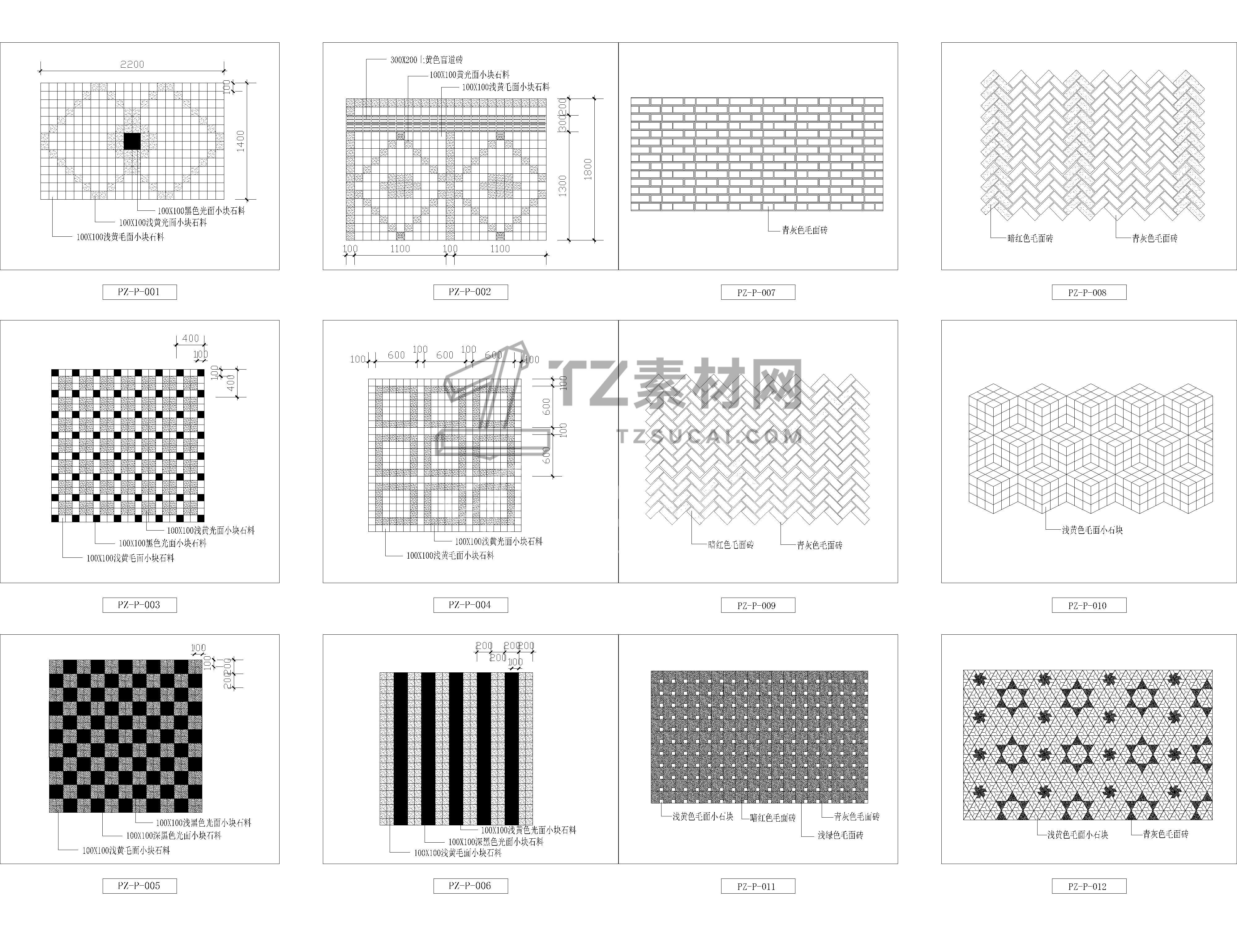 93款景观道路铺装样式CAD道路铺装做法详图CAD园路铺装图案CAD道路铺装CAD地面铺装CAD