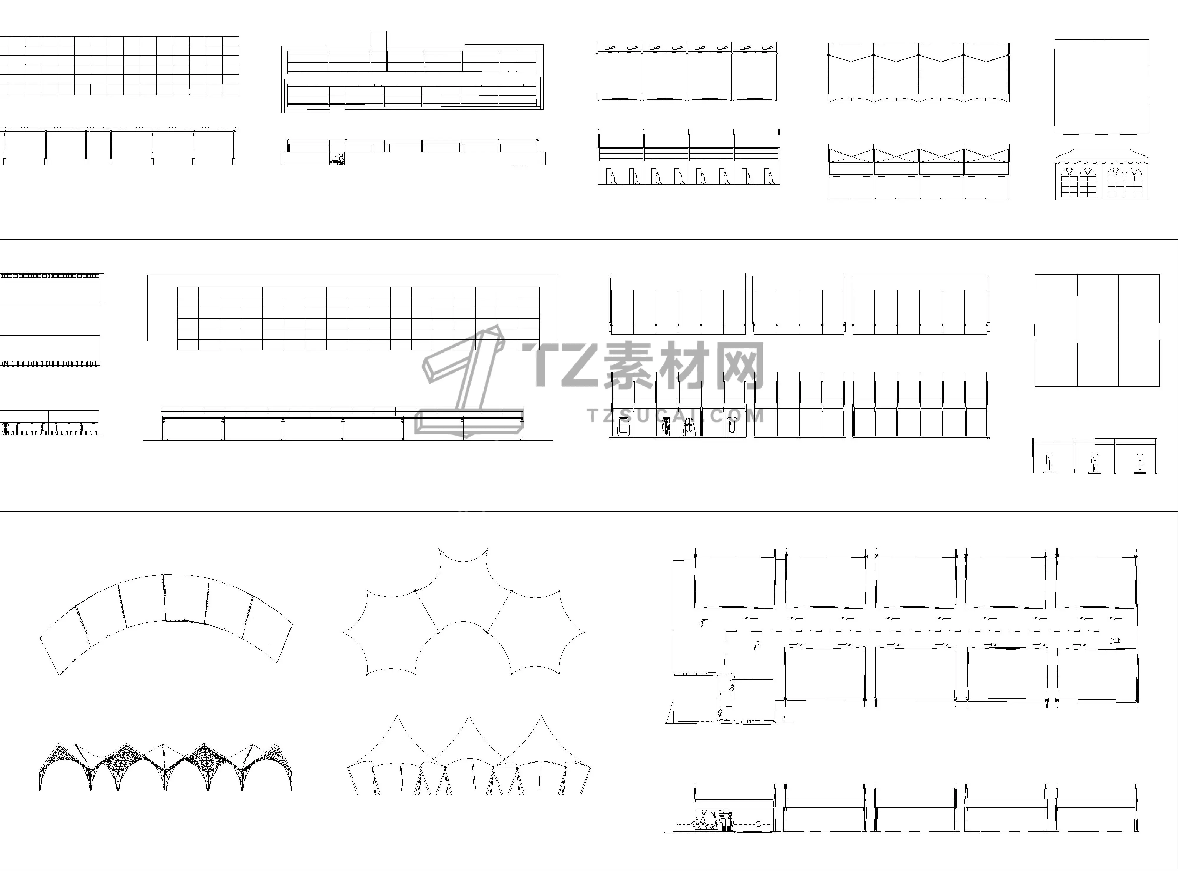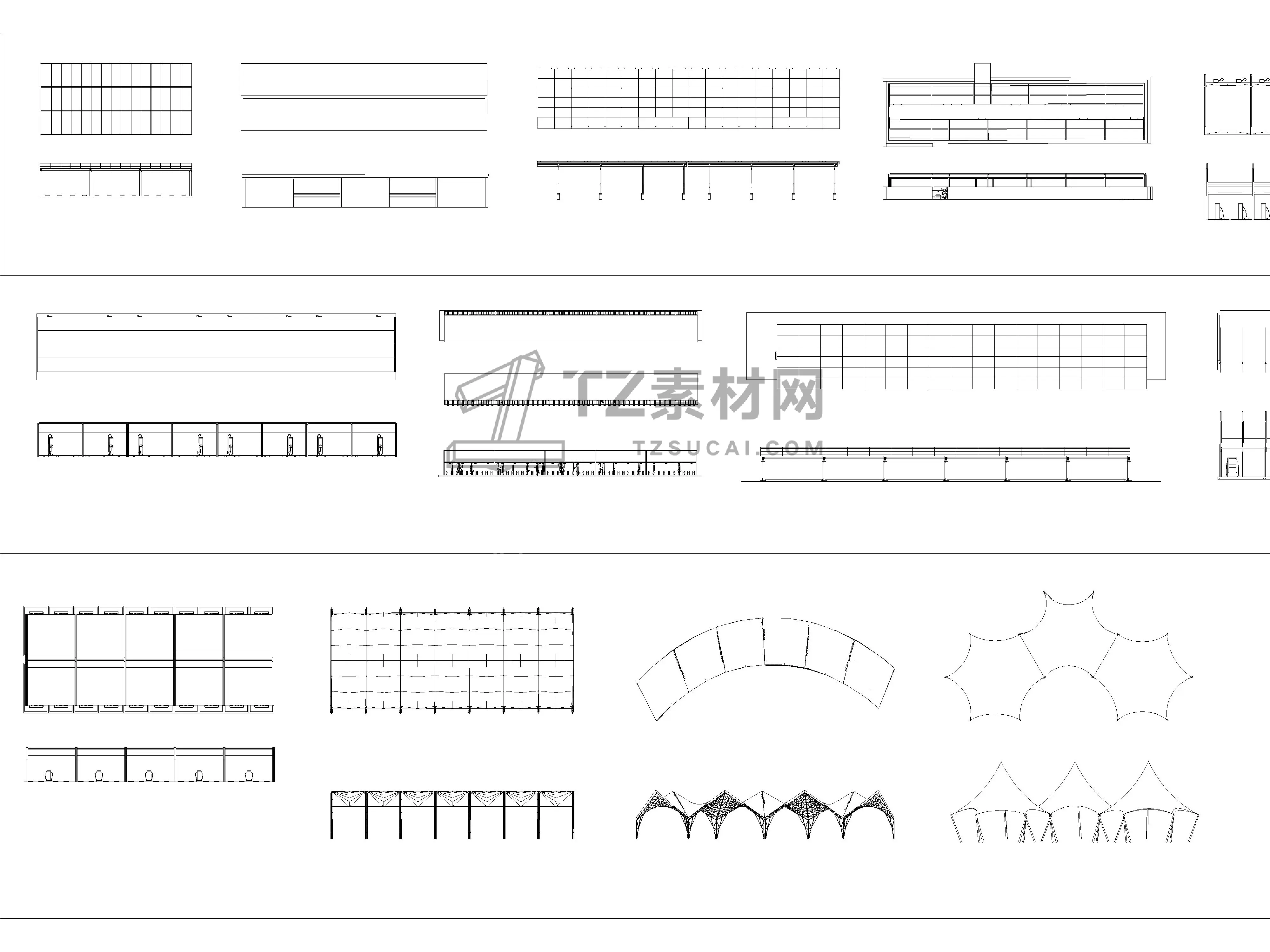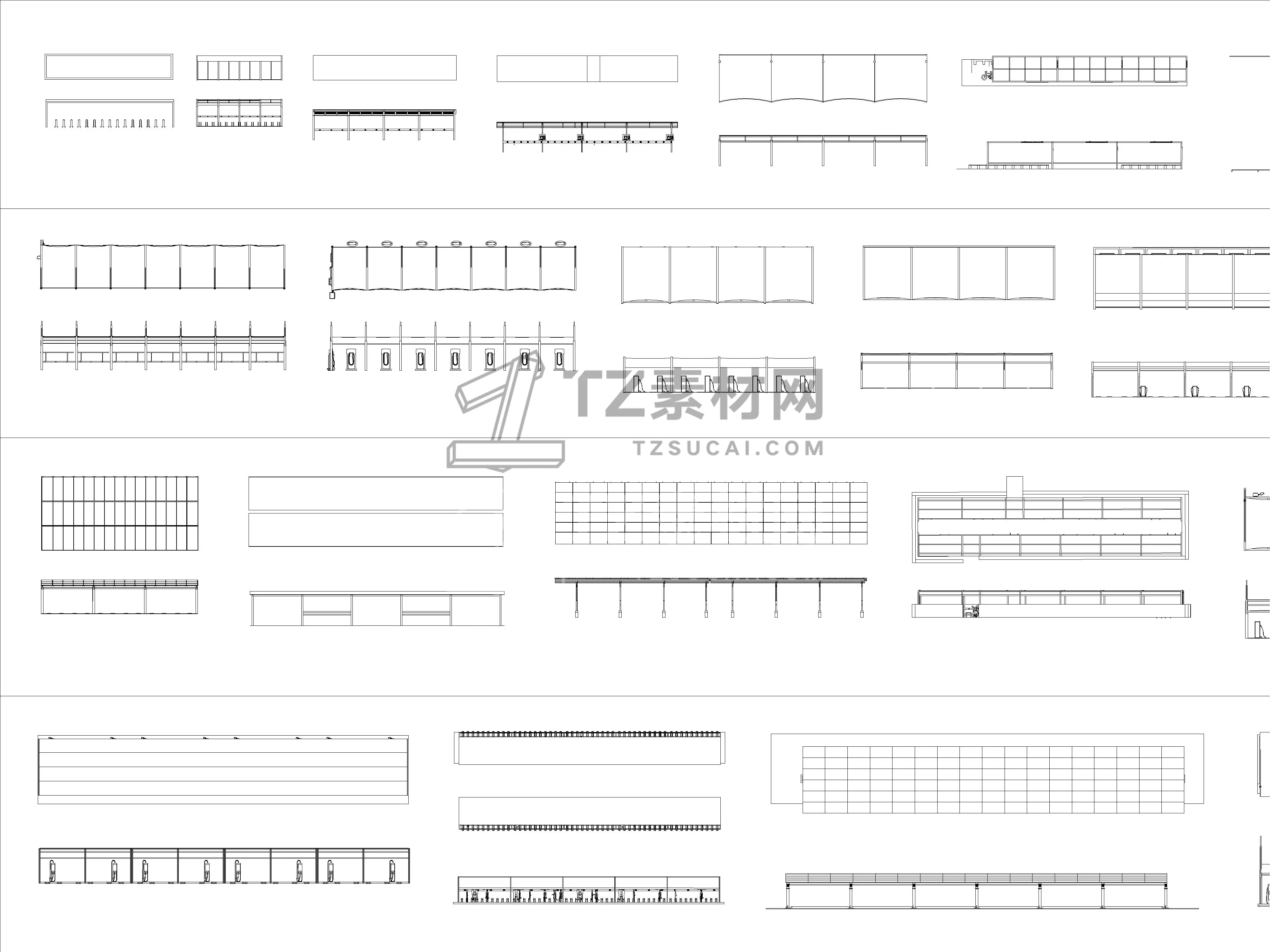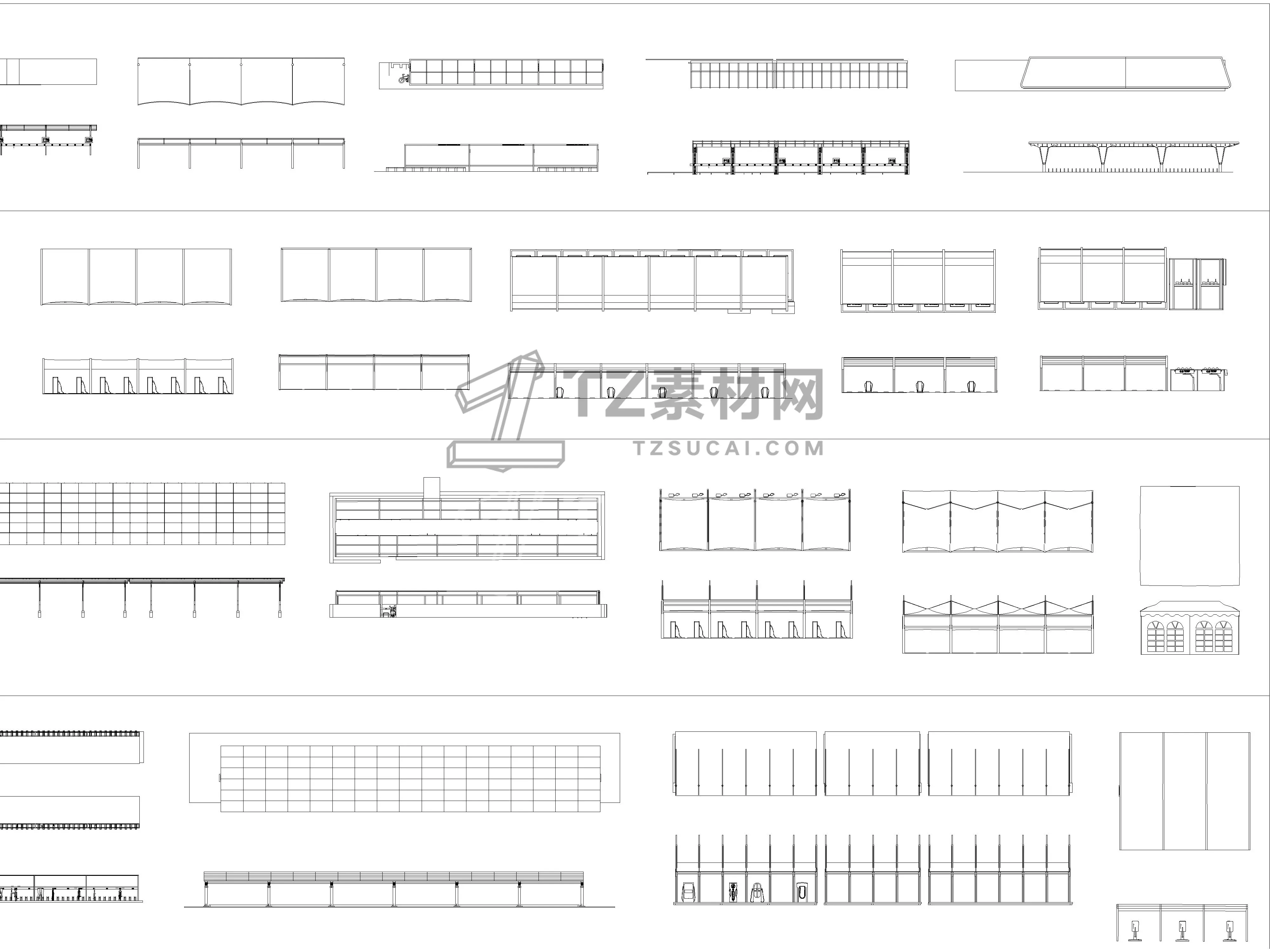 2026年最新车棚CAD图库CAD遮阳棚CAD动车充电棚CAD非机动车棚CAD固定式车棚