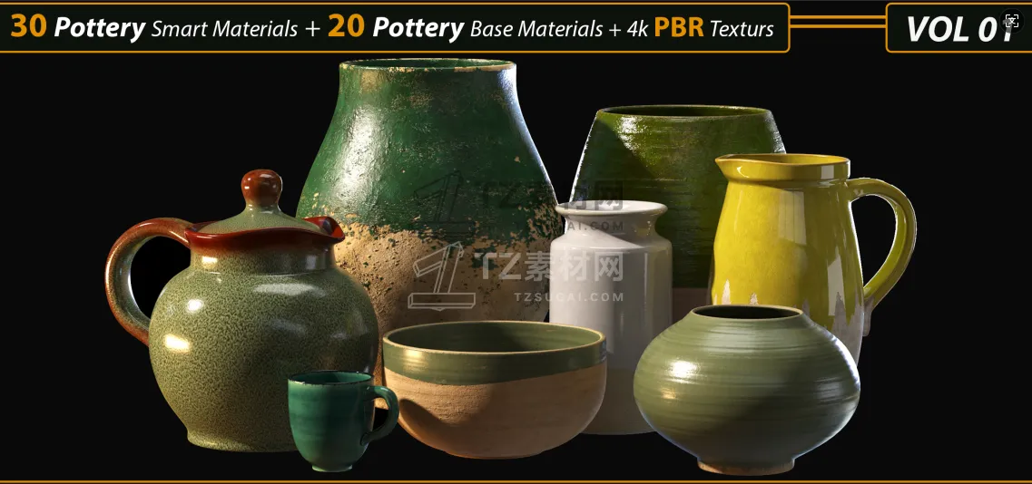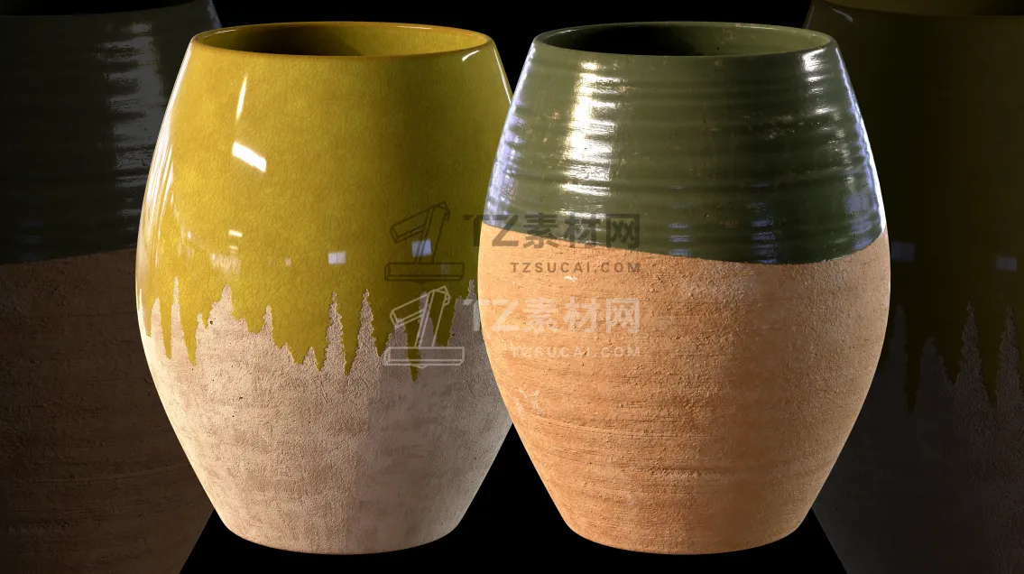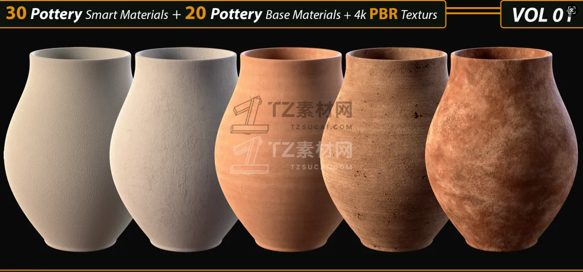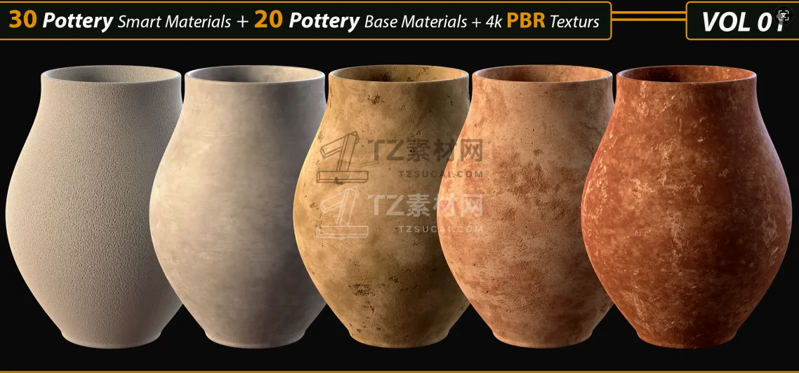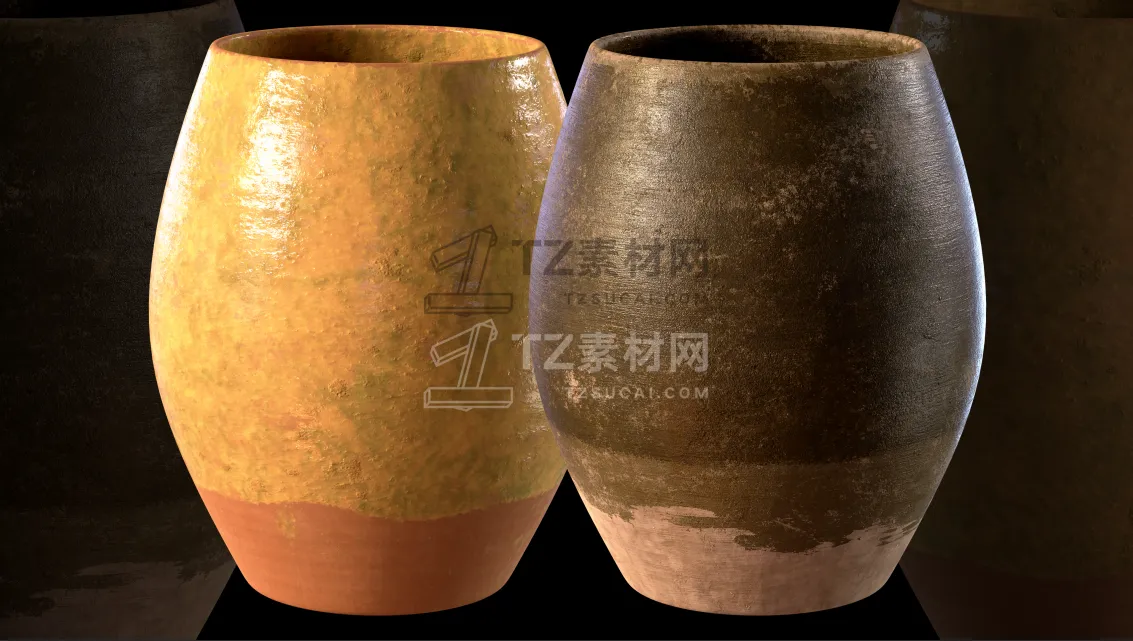 包含20组陶器各种罐子相关的PBR贴图素材,PNG格式,4K分辨率