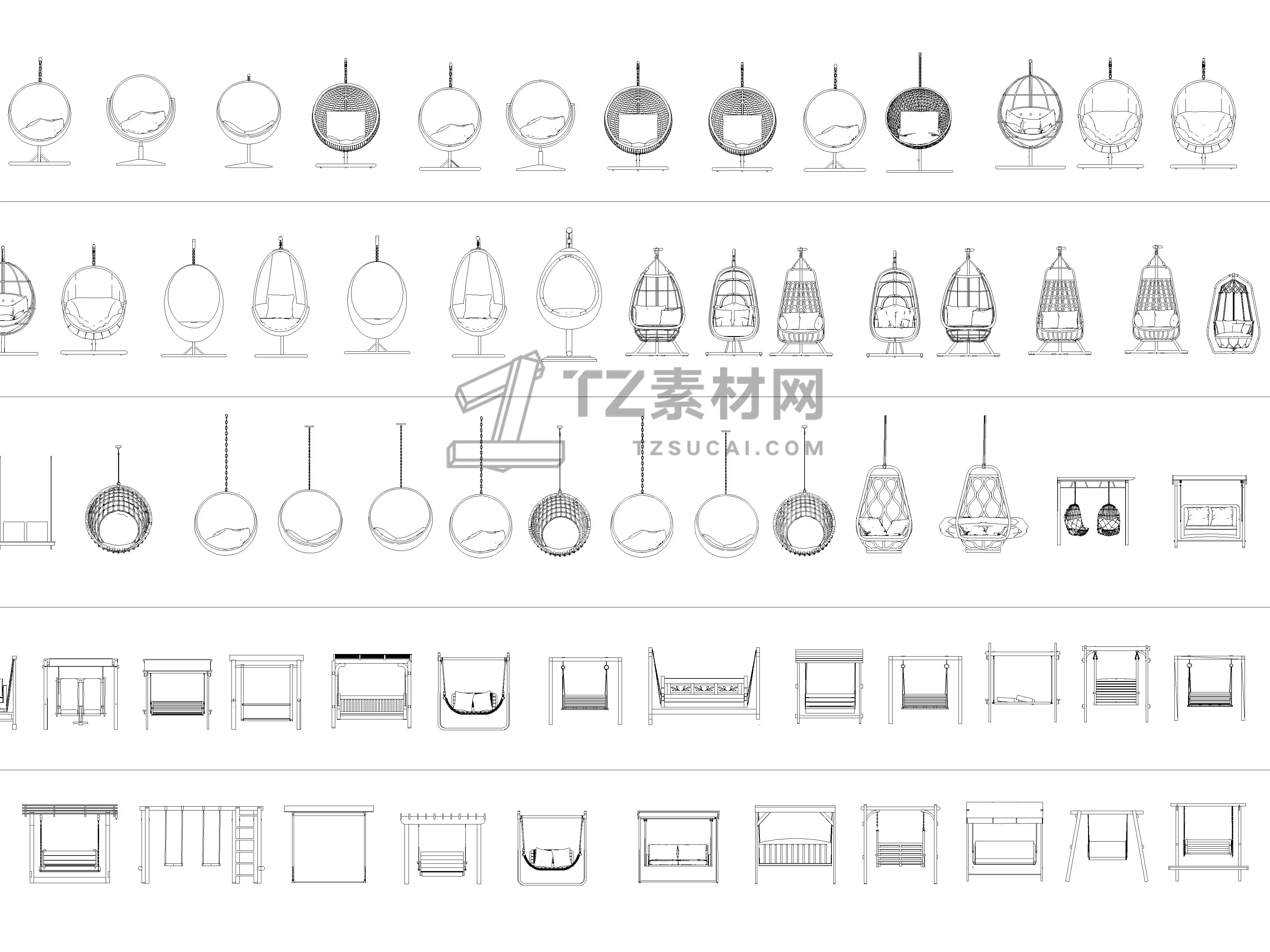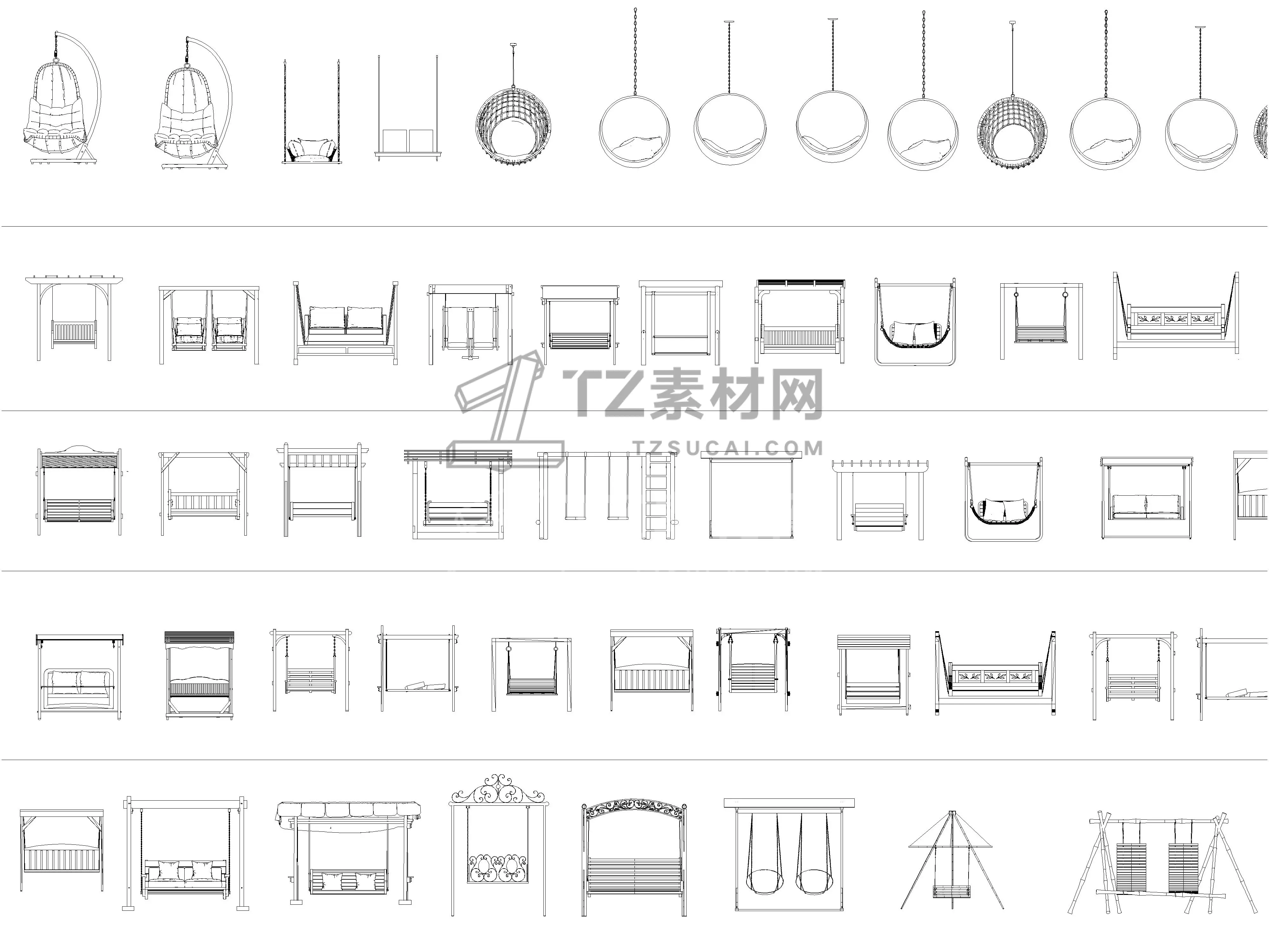 2026年最新秋千CAD图库CAD吊床CAD秋千椅CAD吊椅CAD躺椅