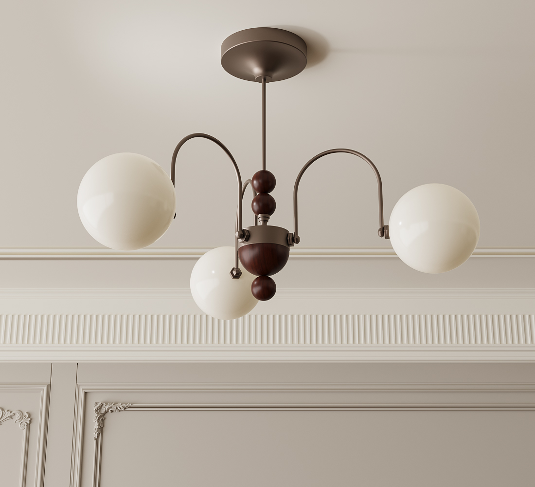法式奶油吊灯三头餐厅玻璃球吊灯中古侘寂风餐厅吊灯