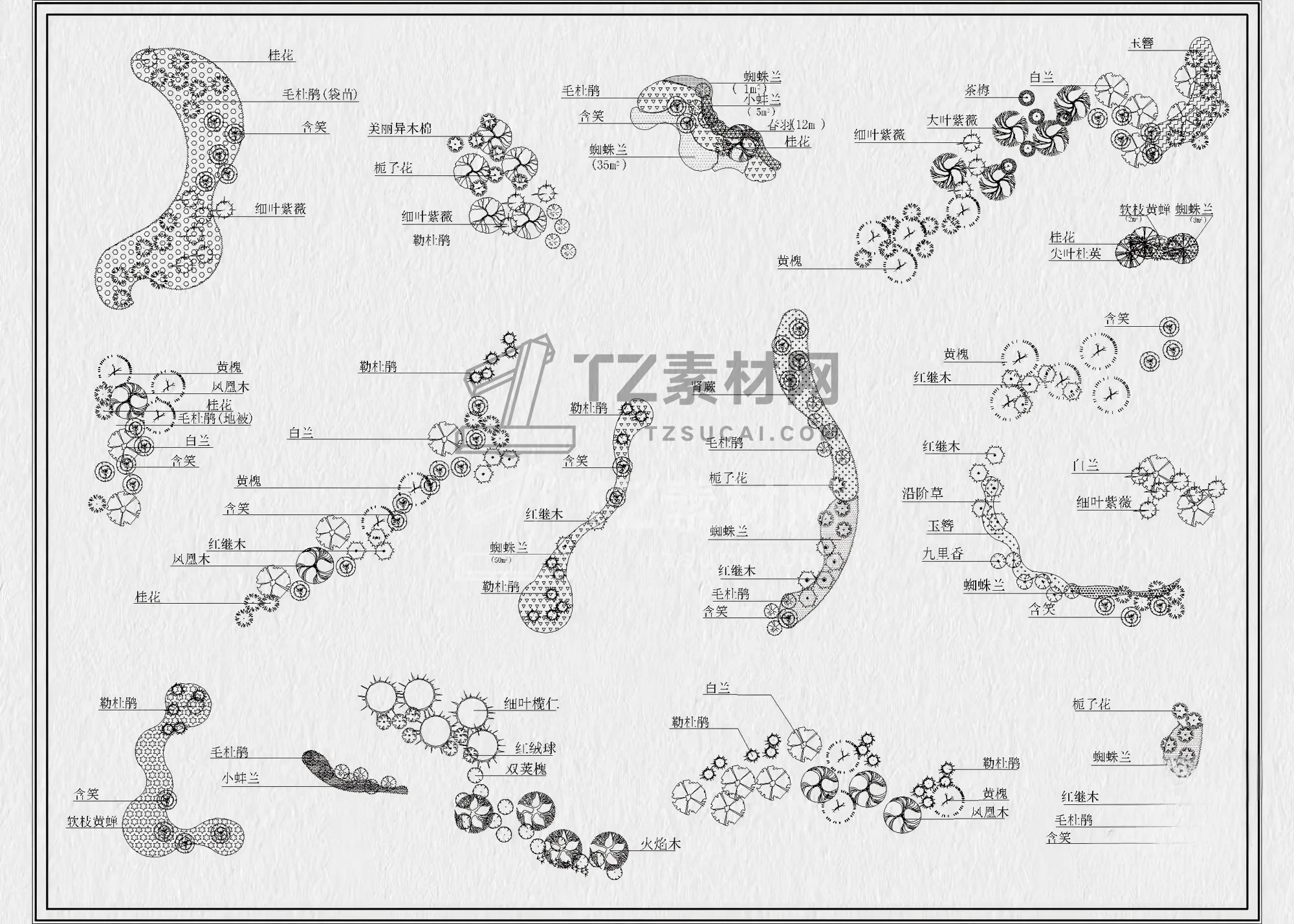 27套植物组团CAD植物配置CAD植物组合CAD花镜植物CAD花境CAD植物CAD绿植CAD景观植物CAD