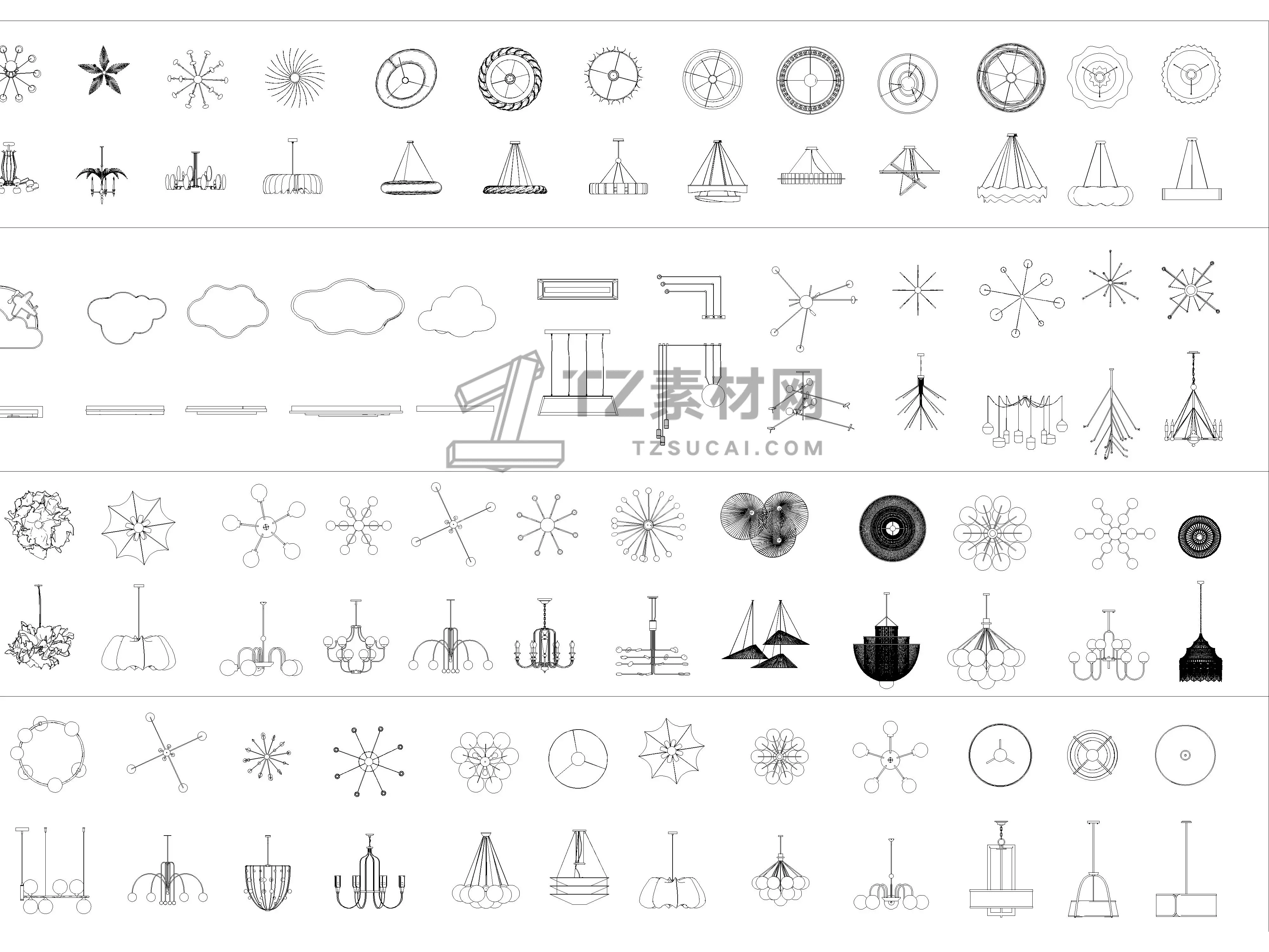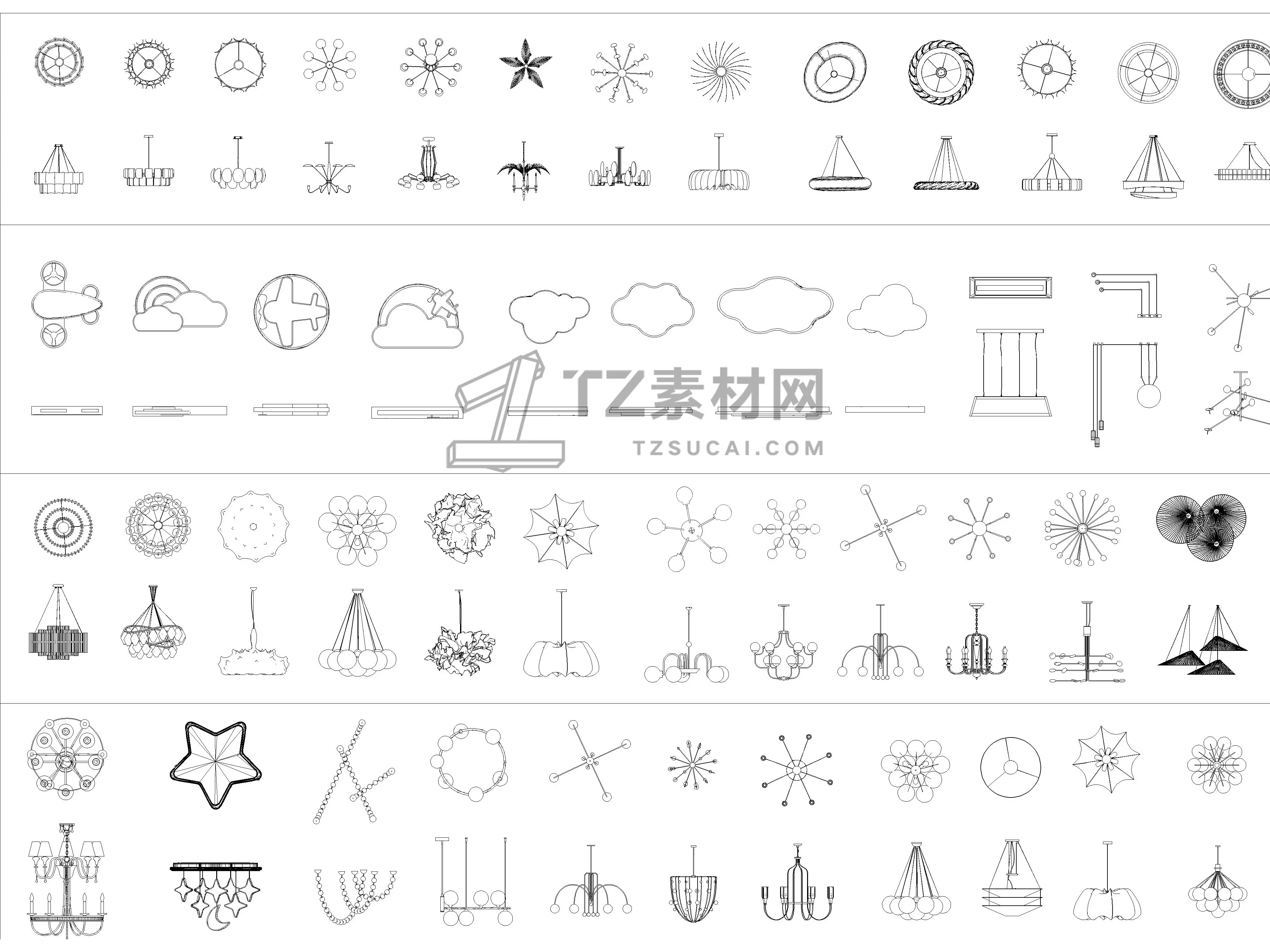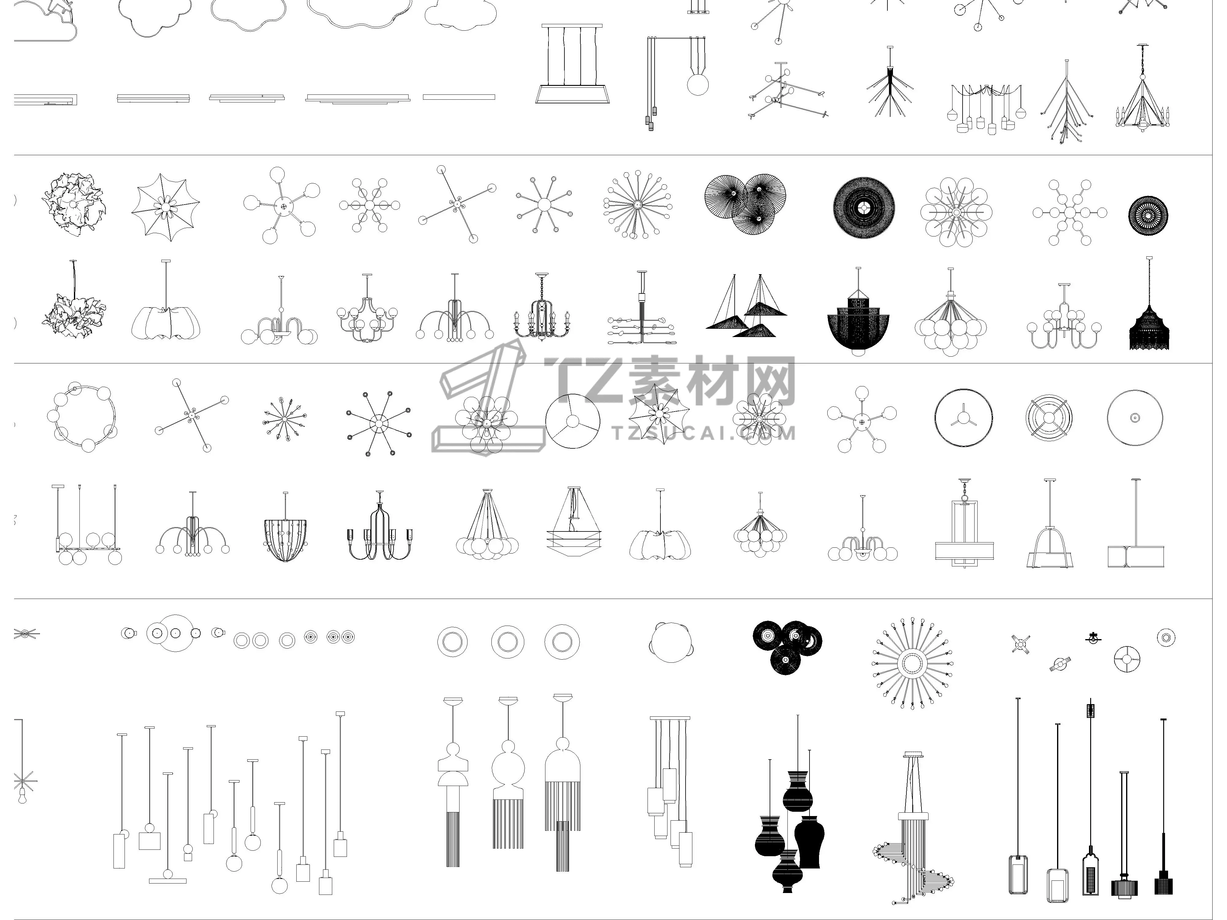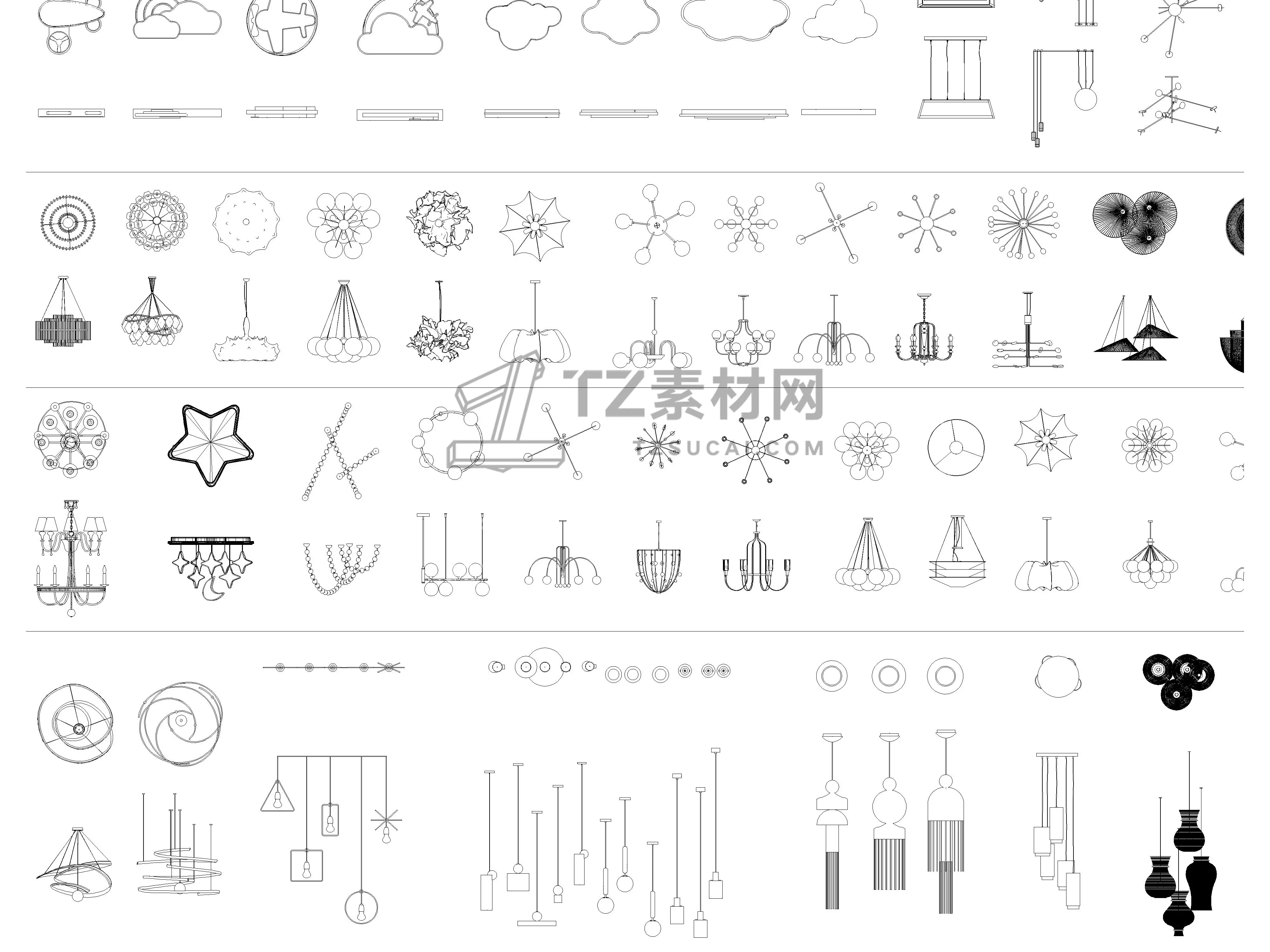 2026年最新吊灯CAD图库CAD艺术异形灯CAD水晶吊灯CAD云朵灯CAD白炽灯