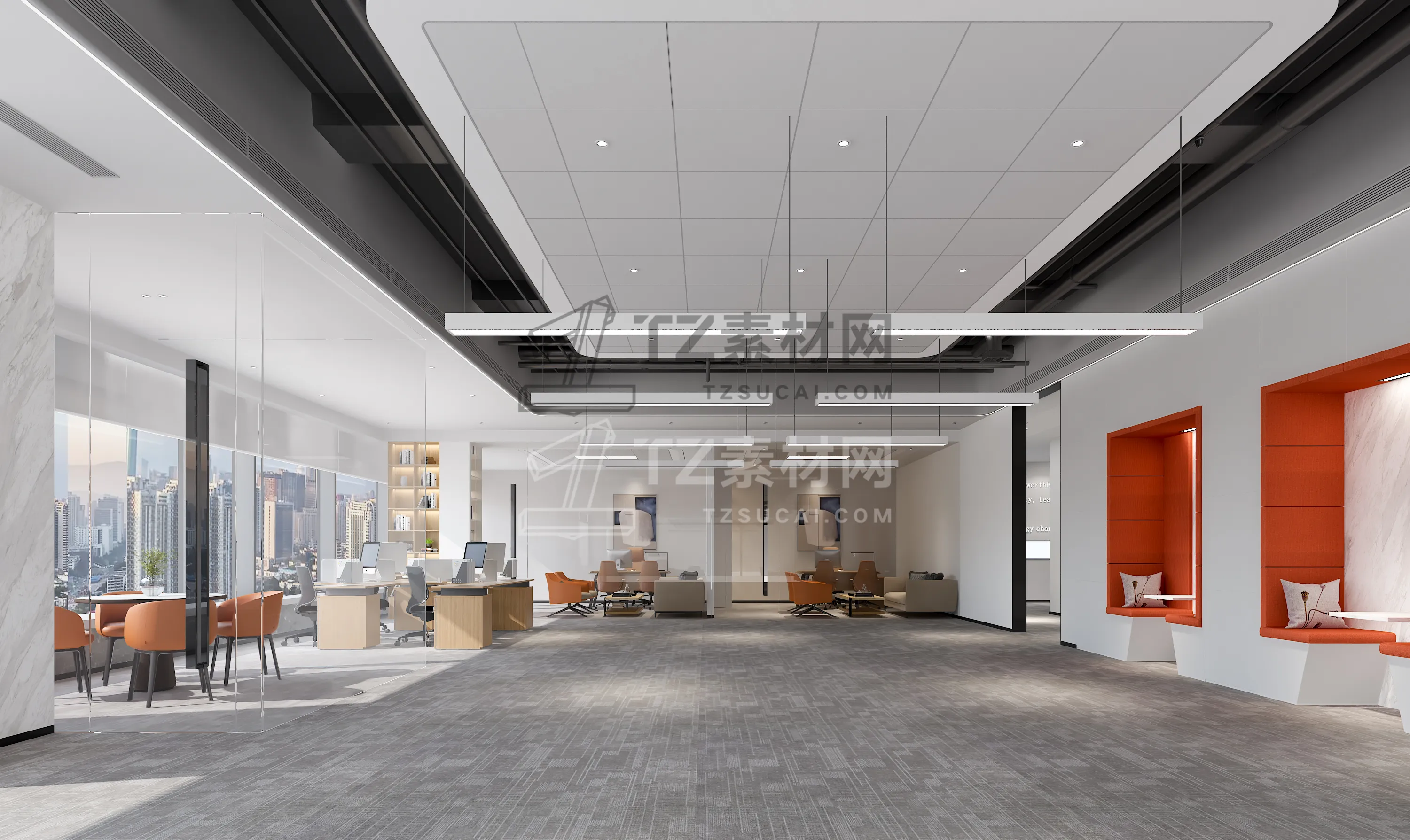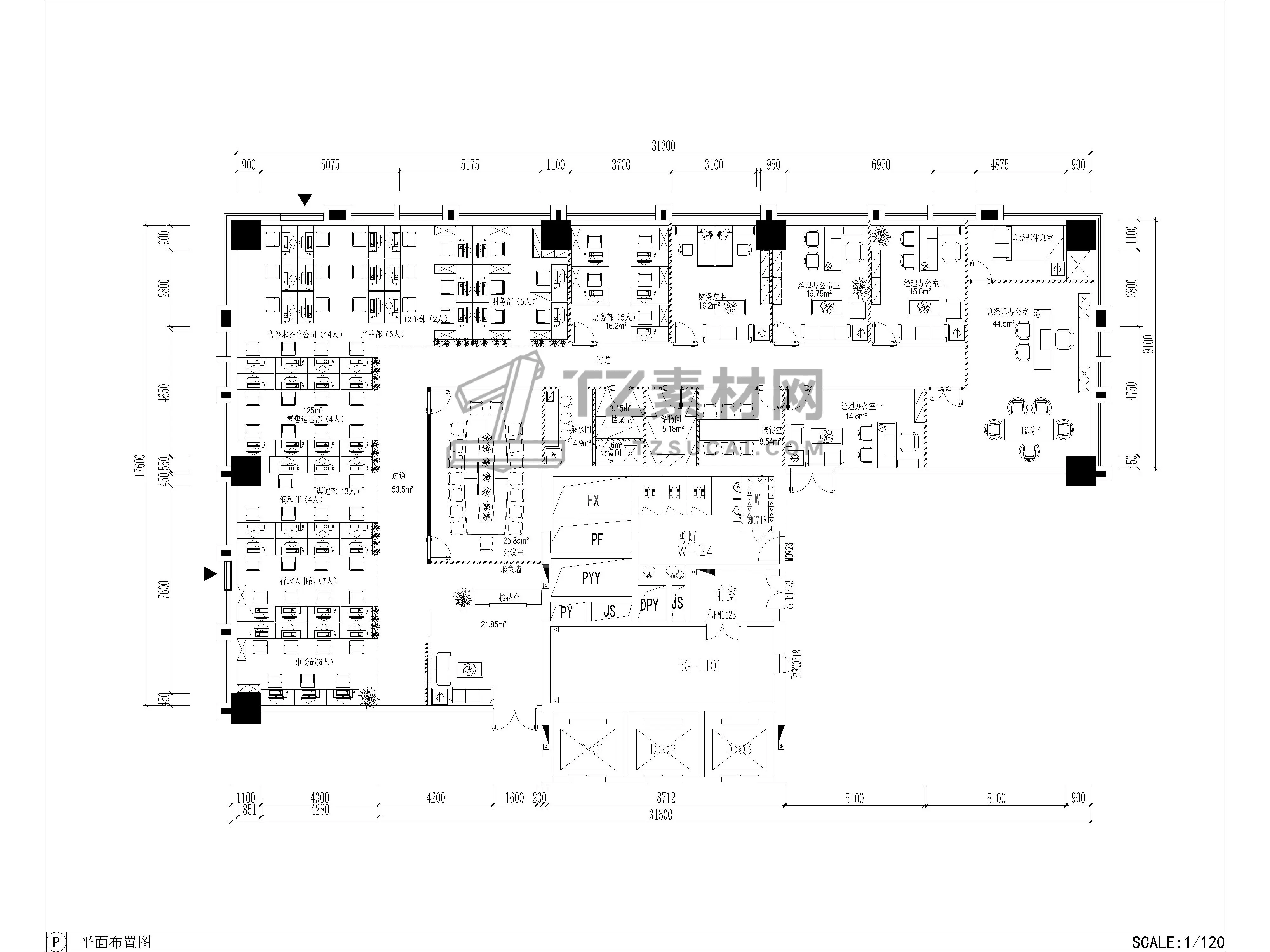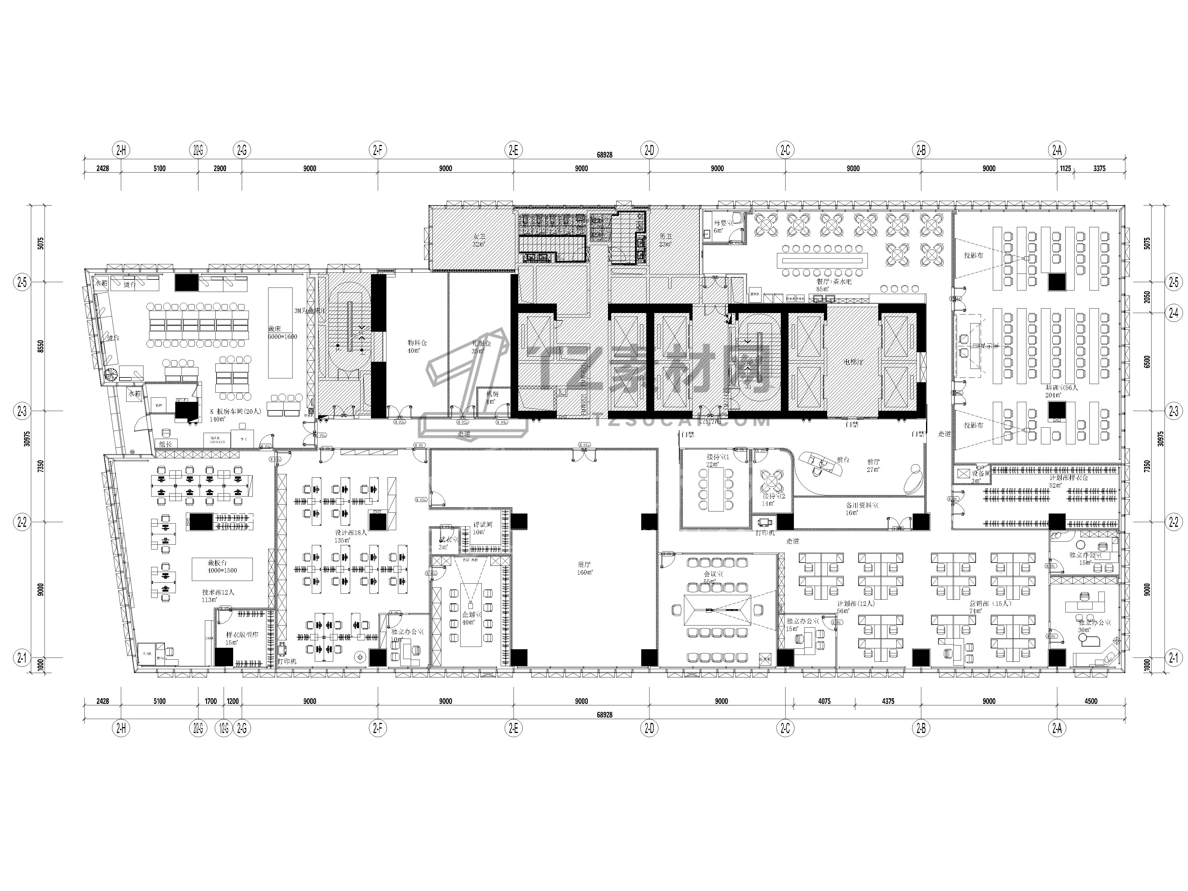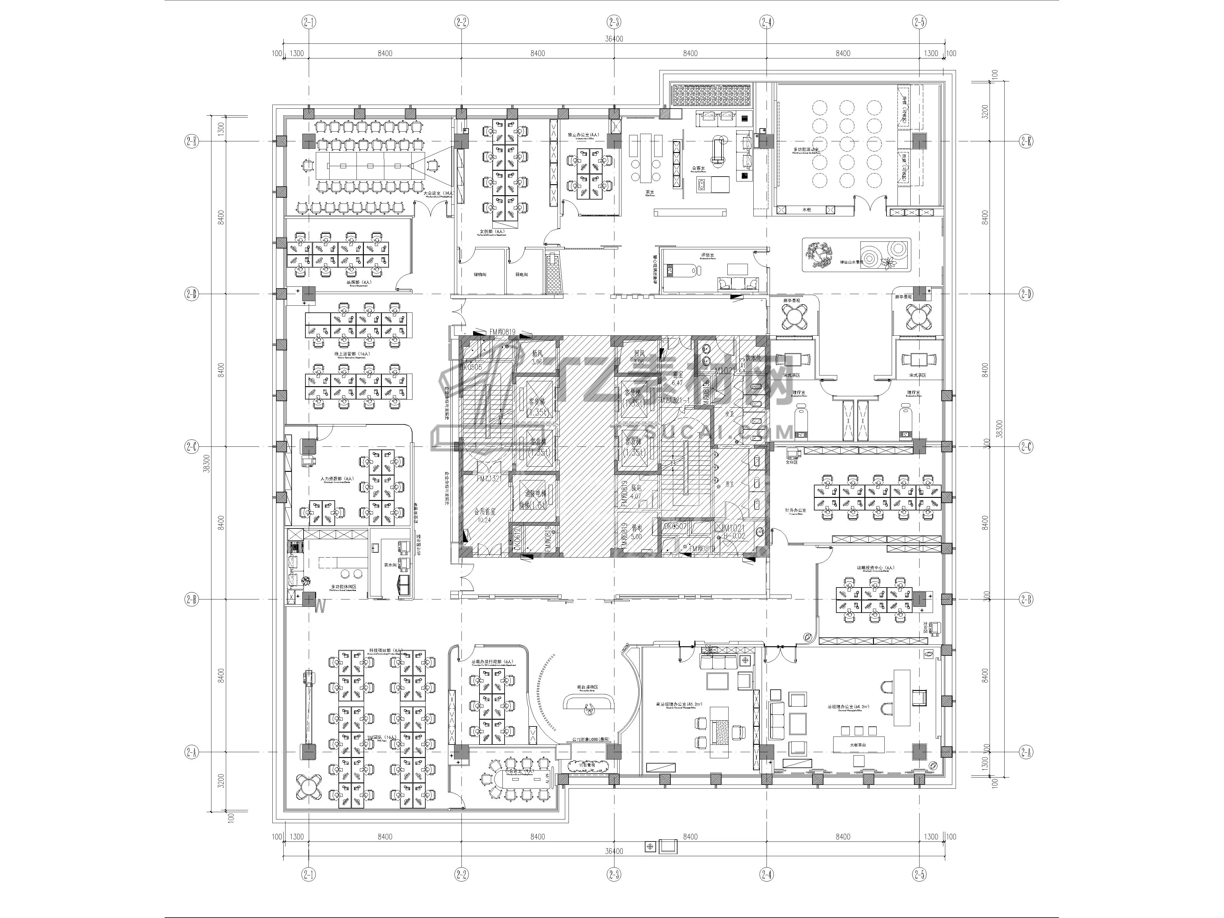 45套办公空间CAD施工图配效果图CAD办公空间CAD办公室CAD公共办公区CAD总经理办公室CAD