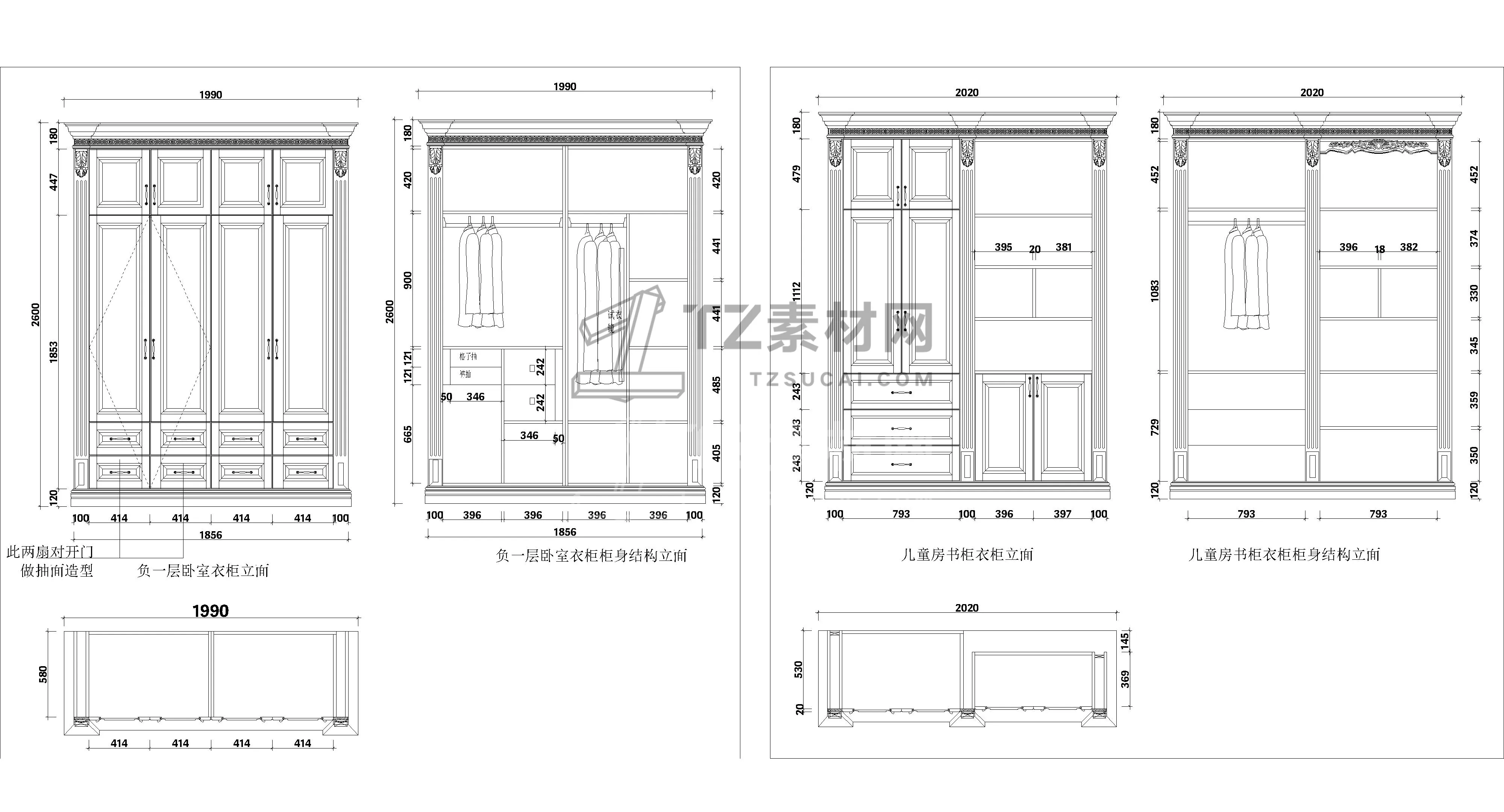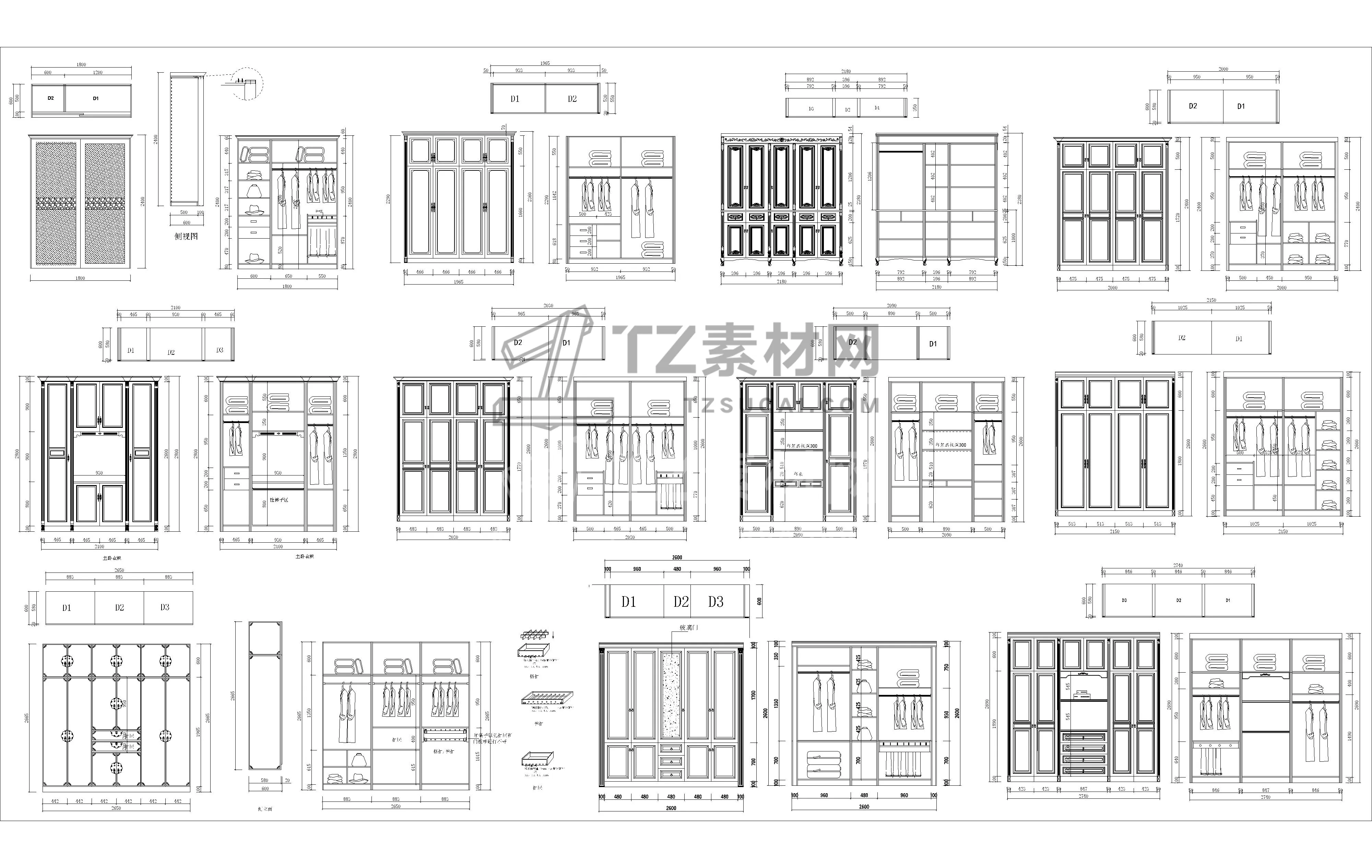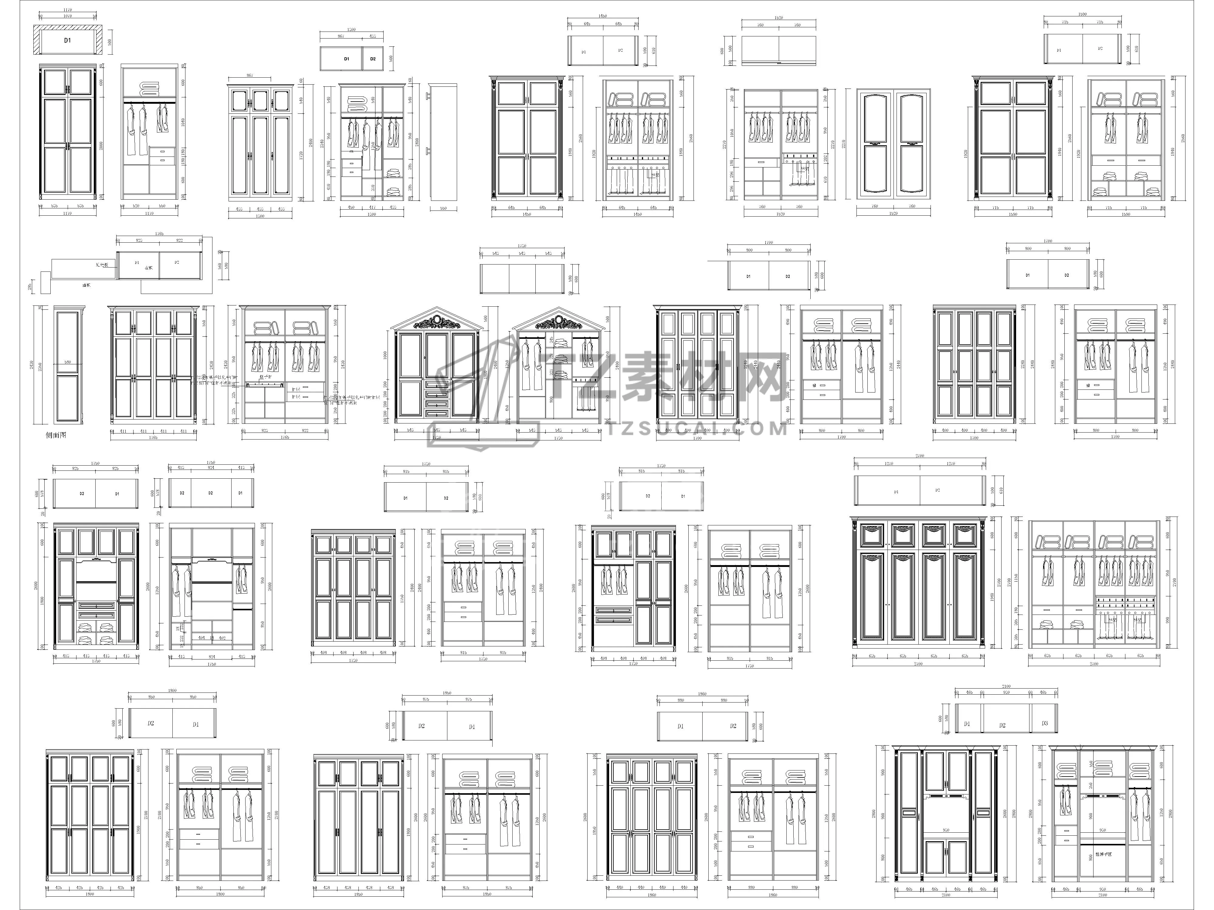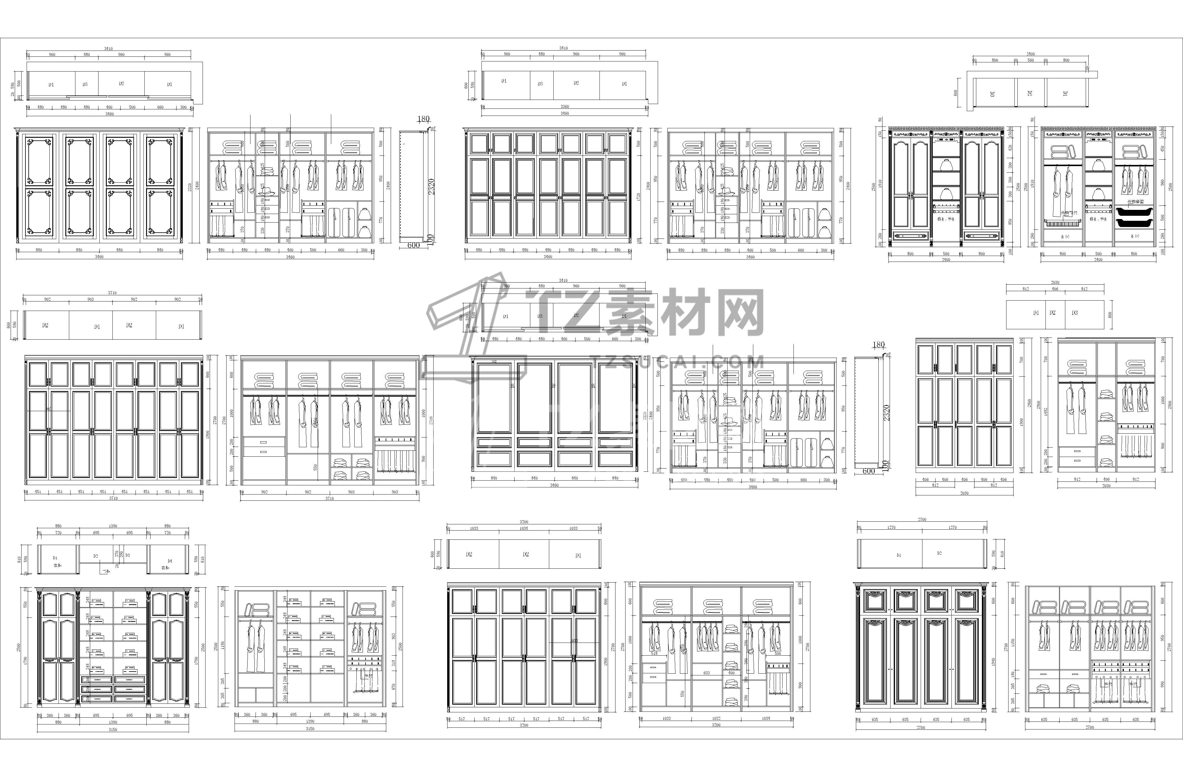 全屋定制衣柜CAD柜子CAD简欧衣柜CAD欧式衣柜CAD柜子立面图CAD全屋定制CAD图库