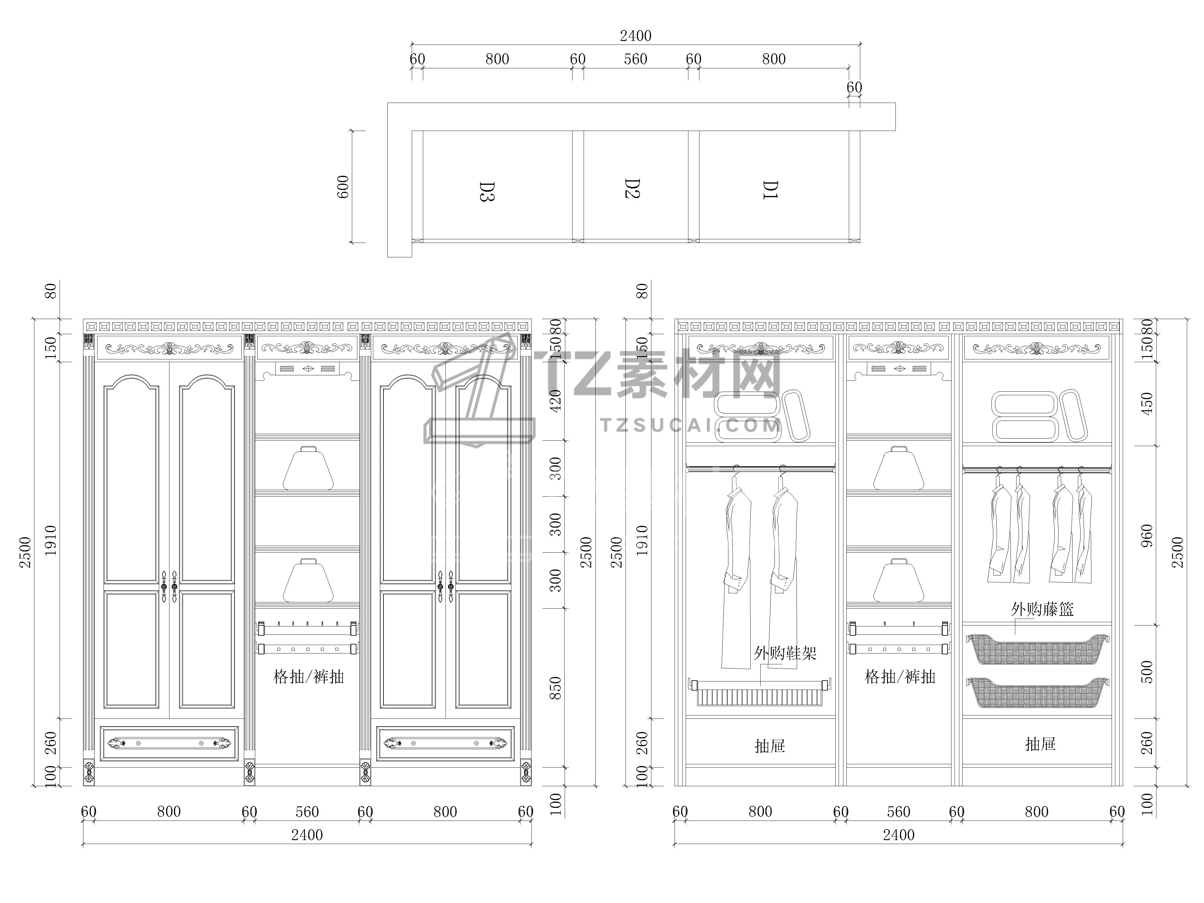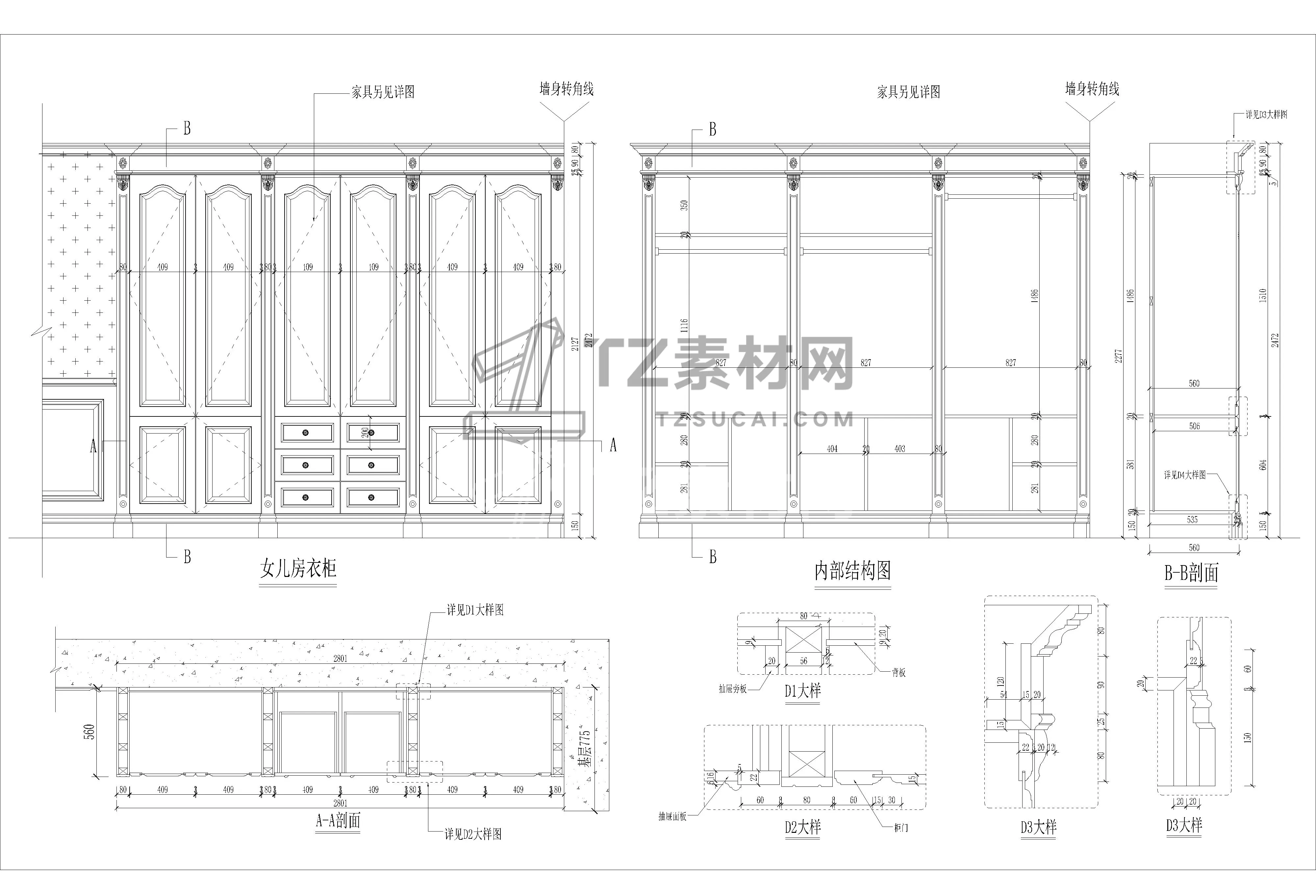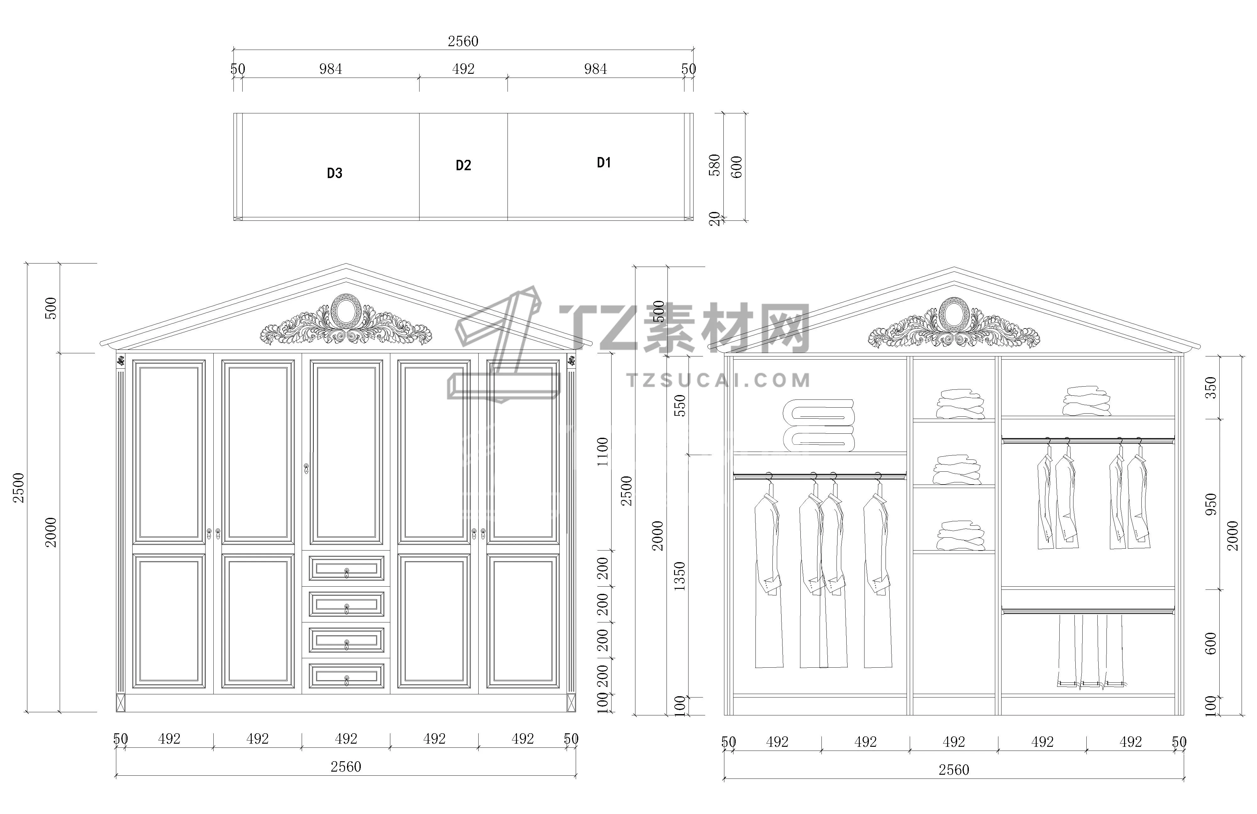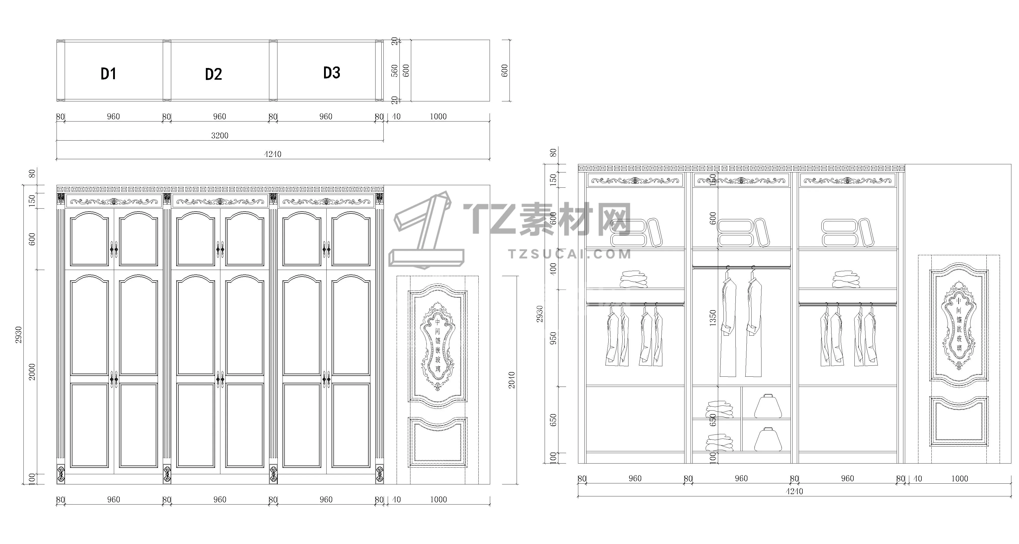 全屋定制衣柜CAD柜子CAD简欧衣柜CAD欧式衣柜CAD柜子立面图CAD全屋定制CAD图库