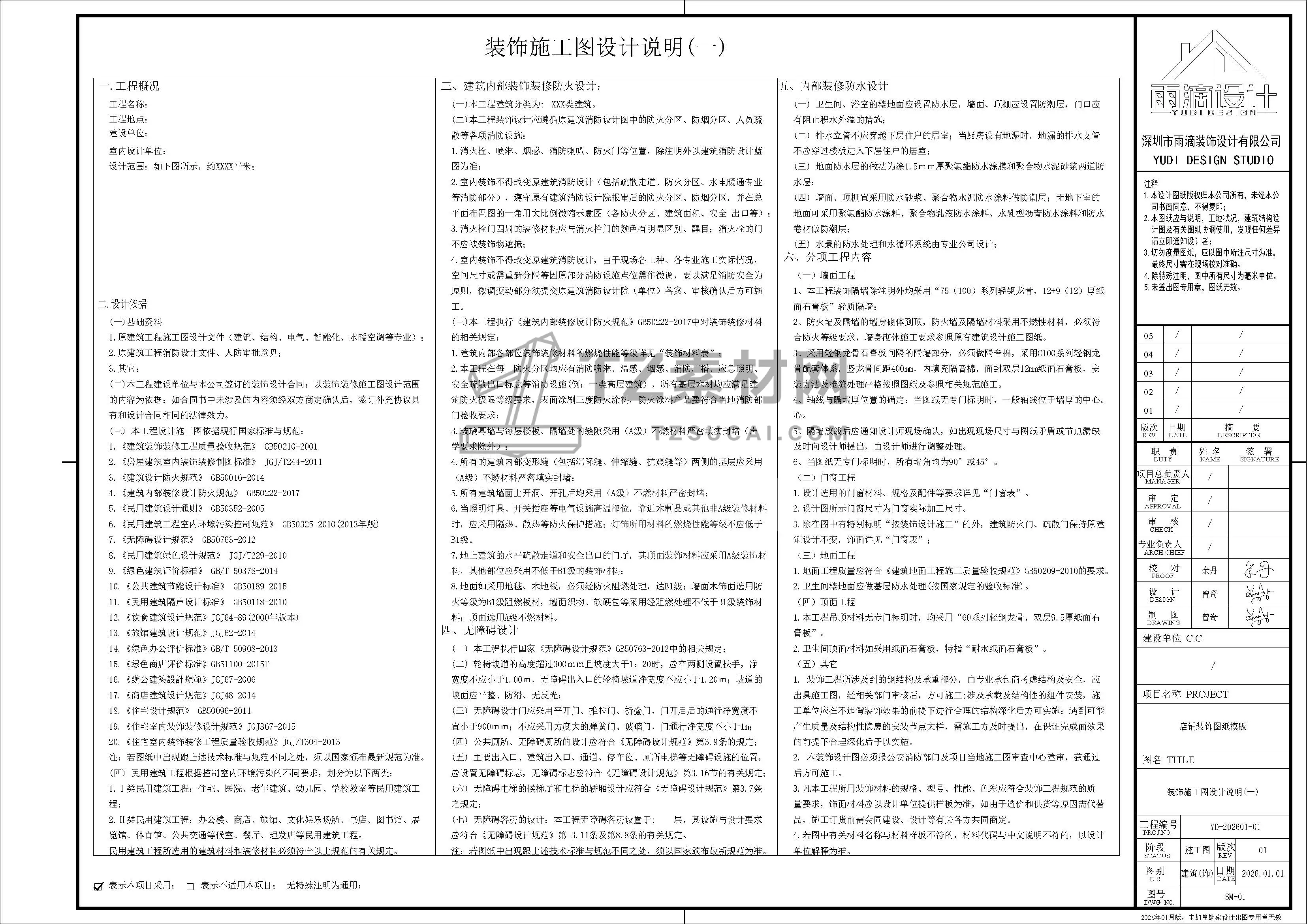 🔥 店铺施工图设计说明专用模版,适配各类店铺(服装、餐饮等),内容专业规范,可直接复制修改、适配CAD,省时高效。