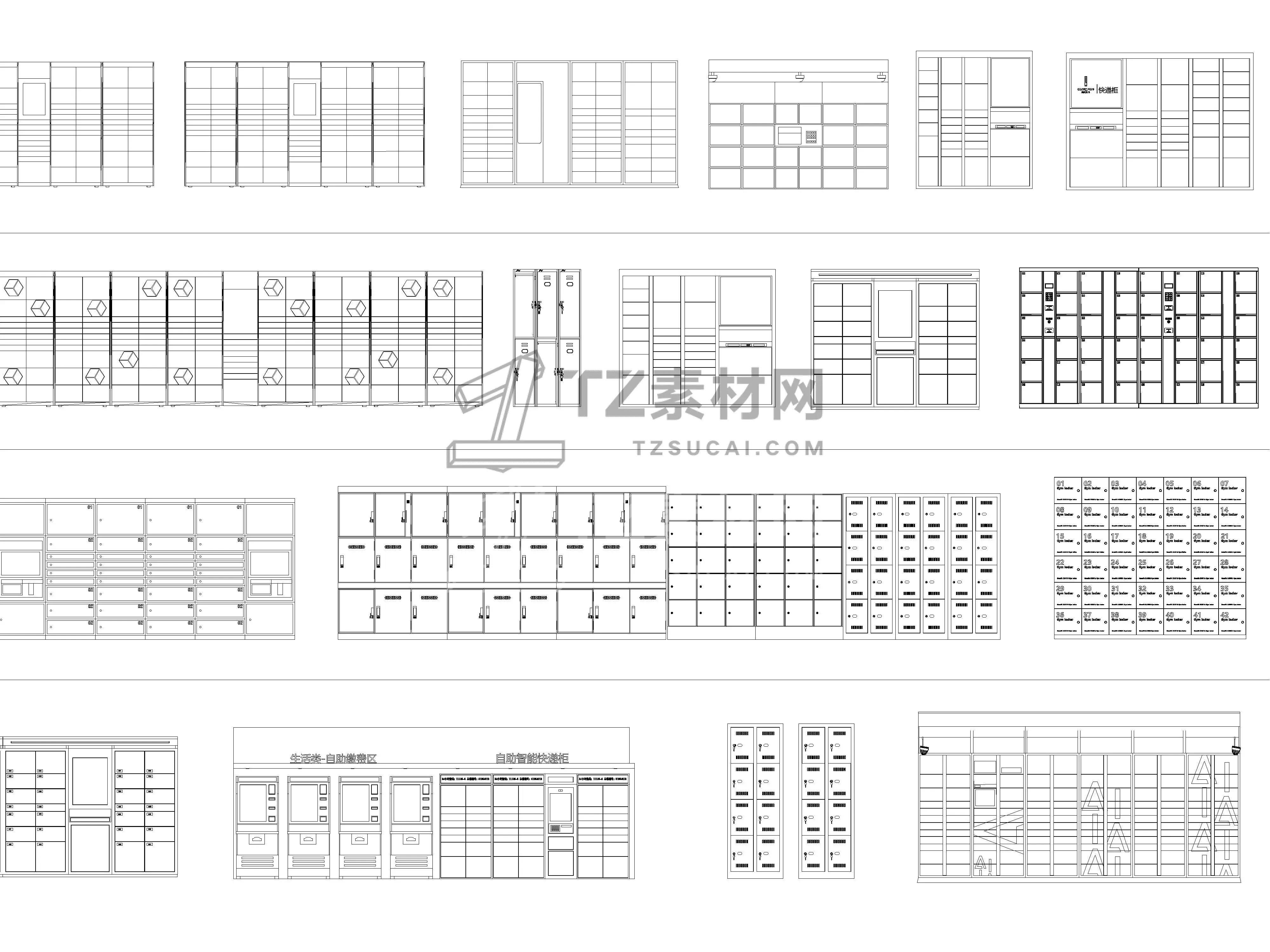 2026年最新快递柜CAD图库CAD智能快递柜CAD取货柜CAD储存收纳柜CAD储物柜