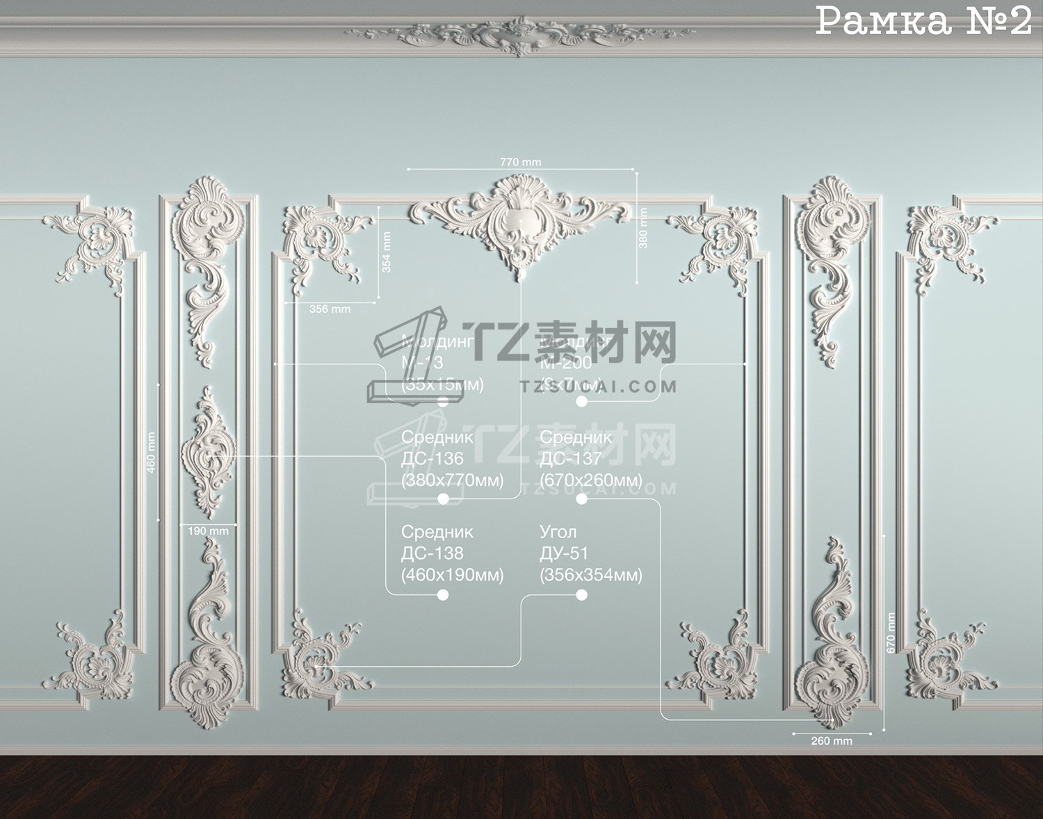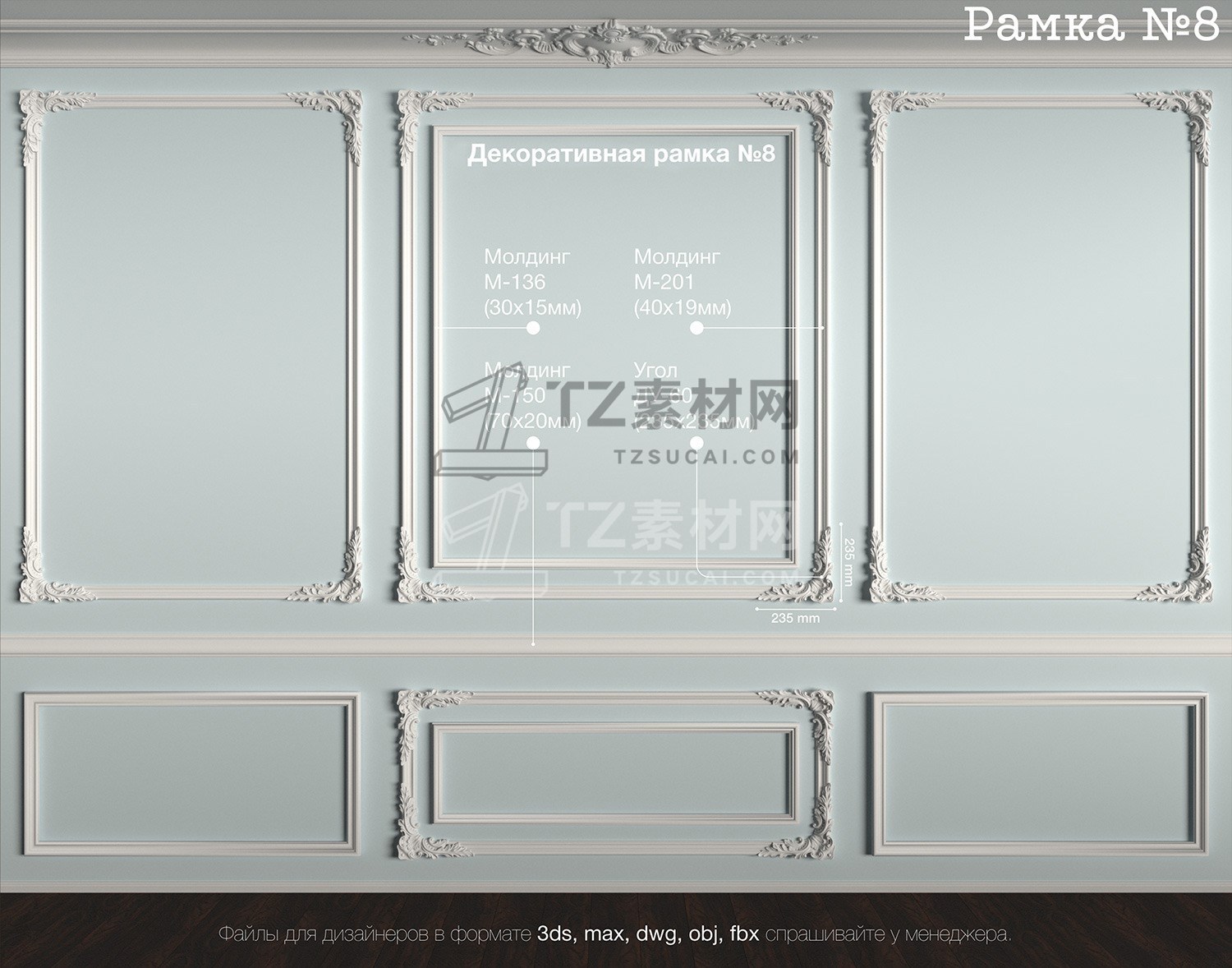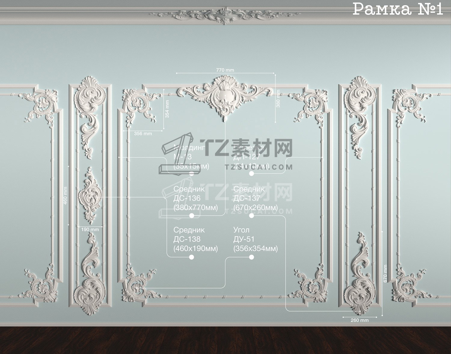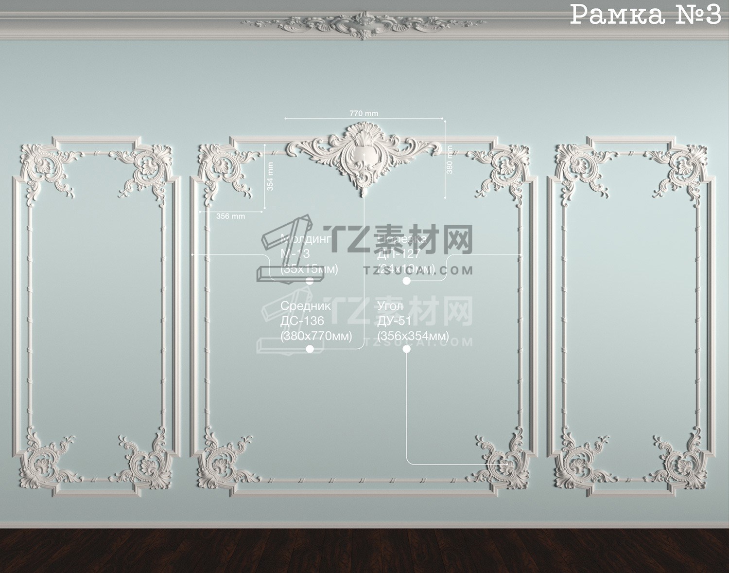 TZ18-欧式墙面雕花线条3Dmax模型下载