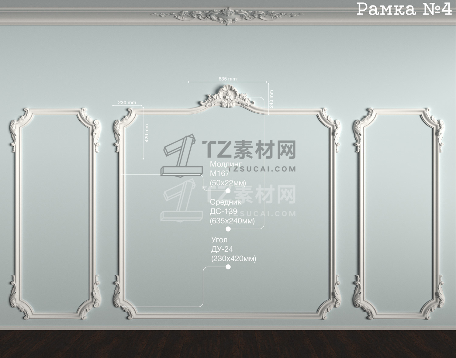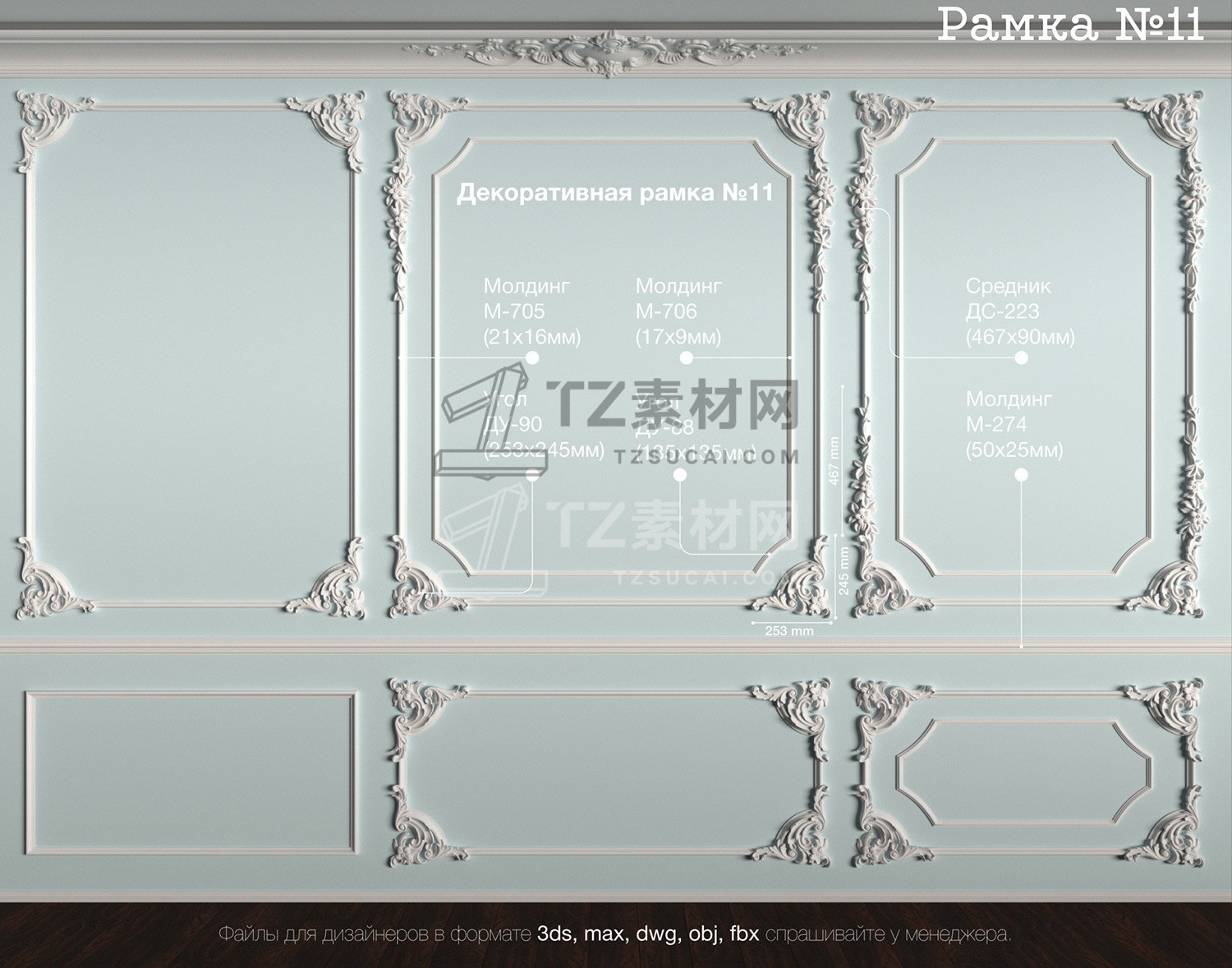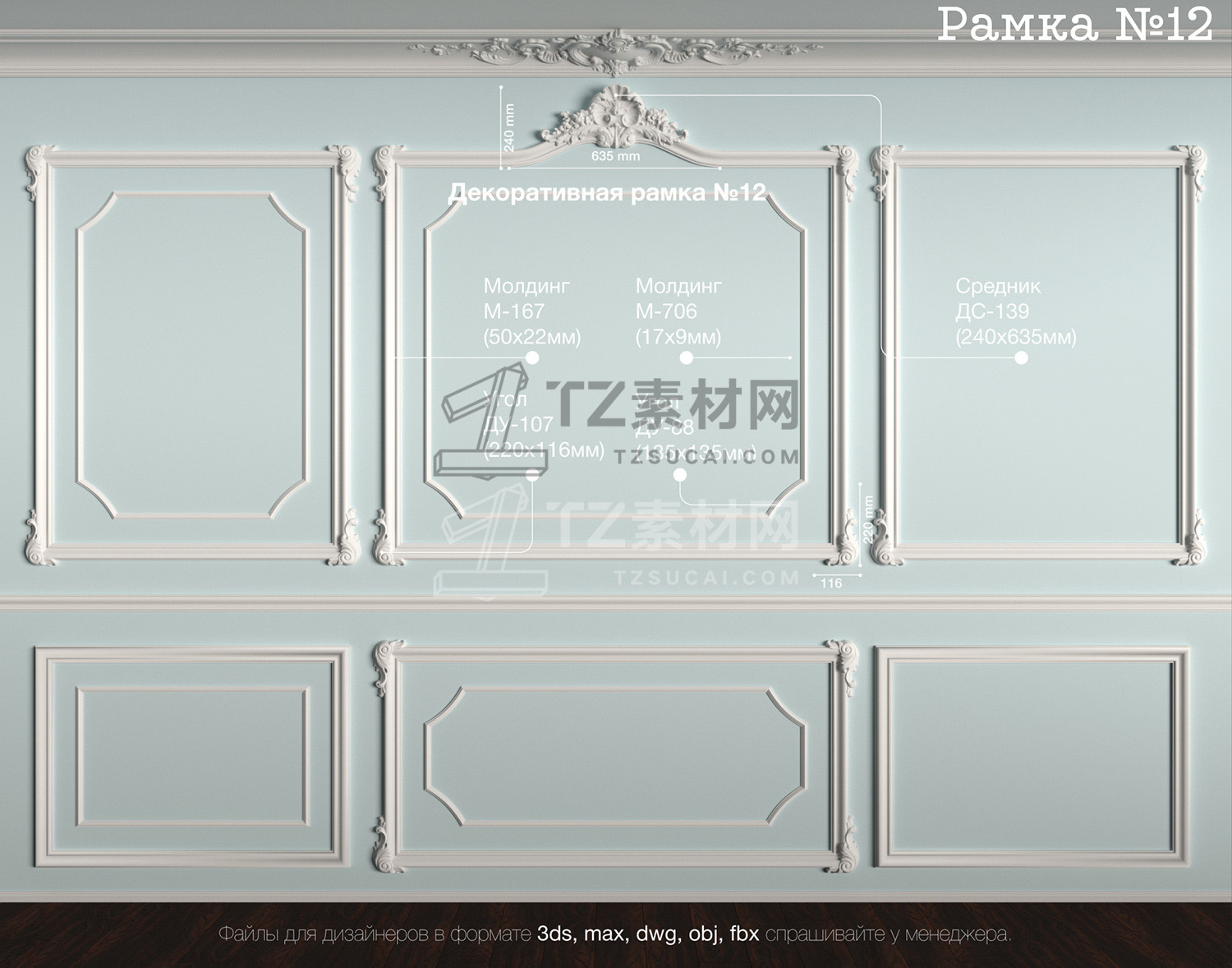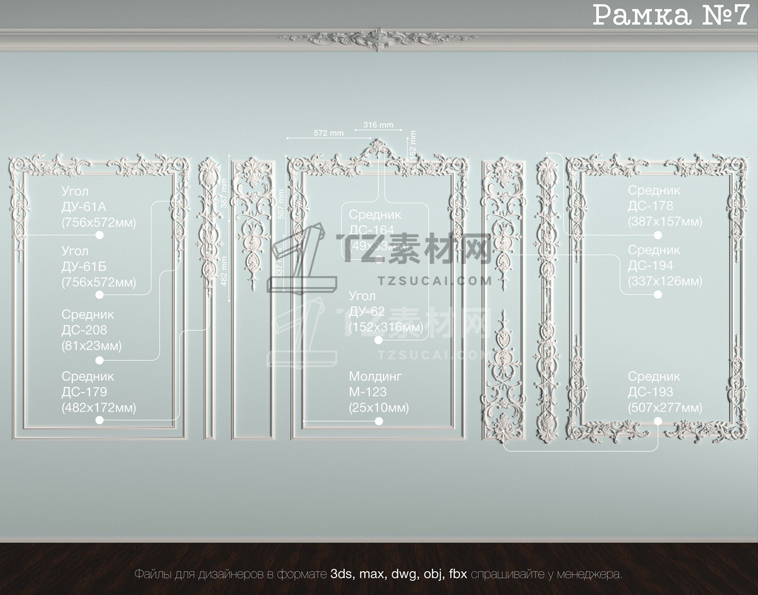 TZ18-欧式墙面雕花线条3Dmax模型下载
