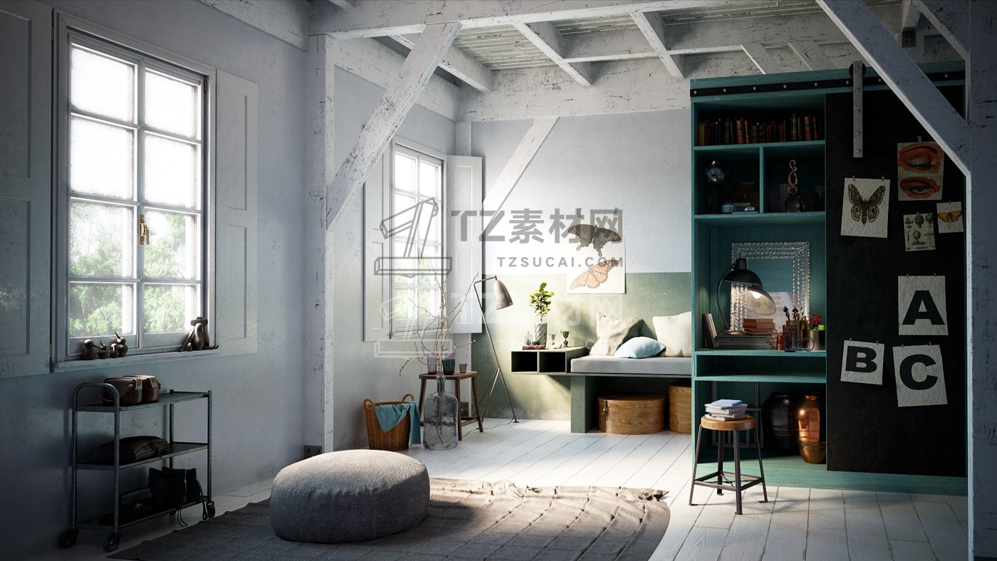 超写实北欧风格书房空间3D模型