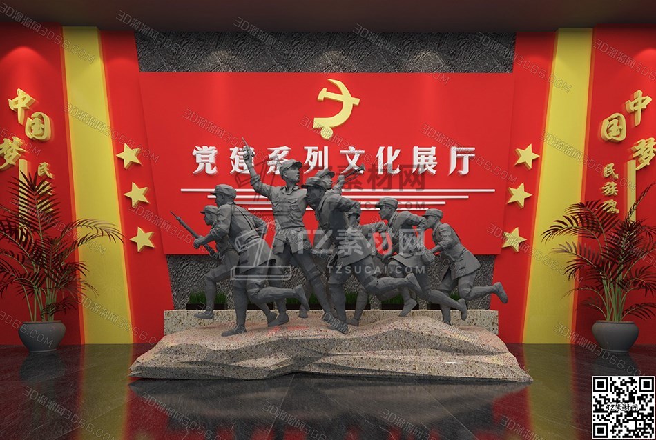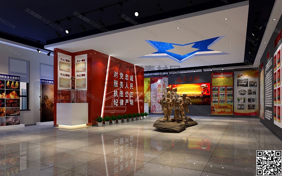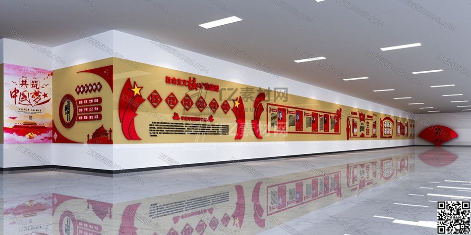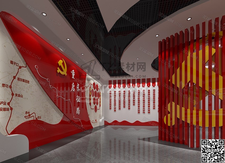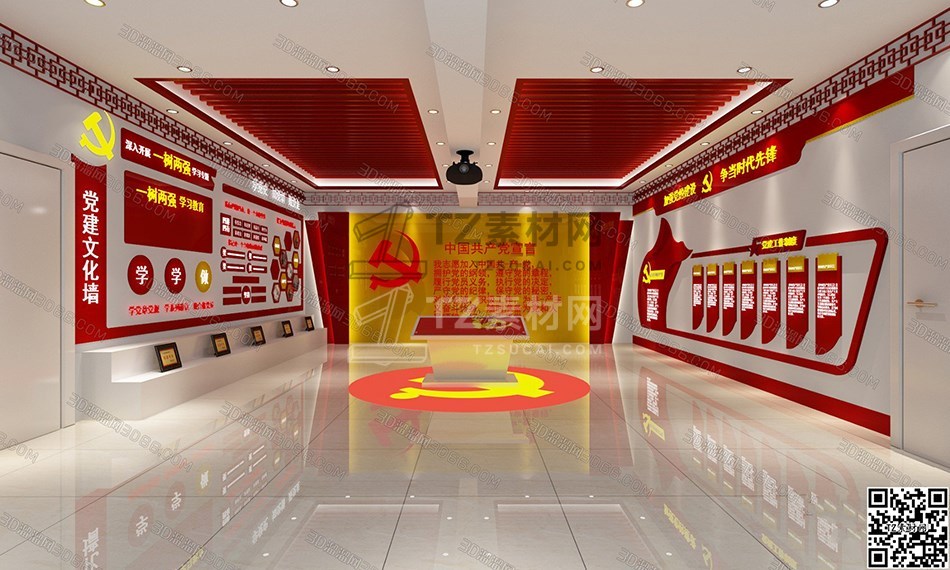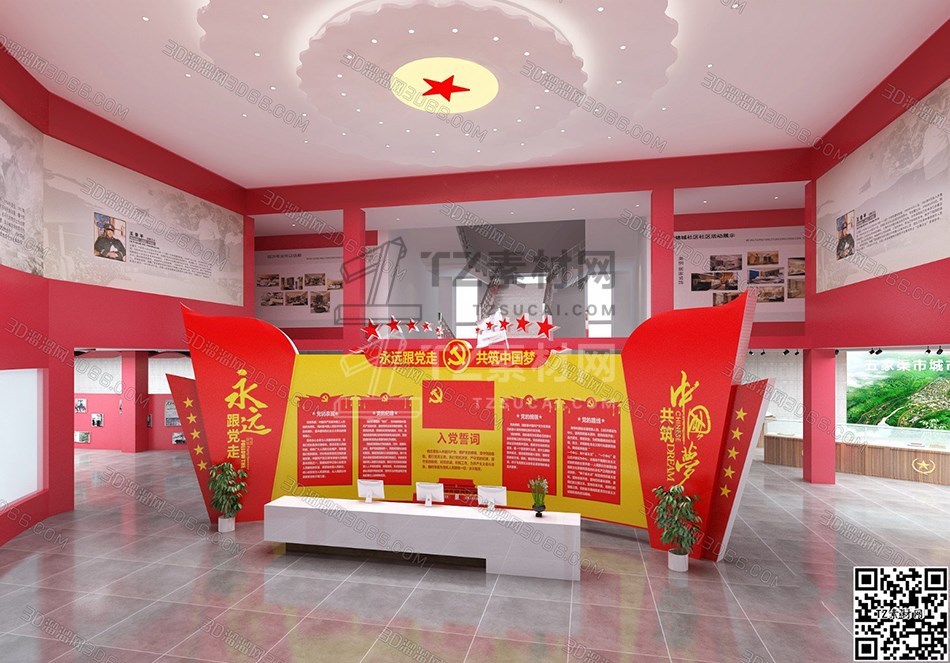 T-277党建类展厅国徽党徽国旗文化墙法院宣传展3D模型