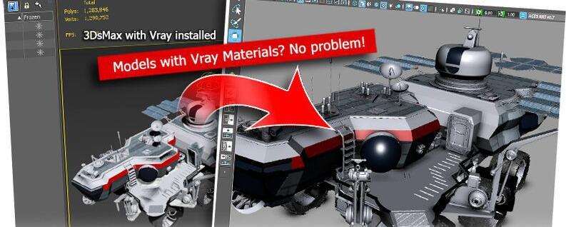♦ Vray的支持!即使具有vray材料或灯光(如果安装了用于3DsMax的vray),也可以转移3DsMax场景