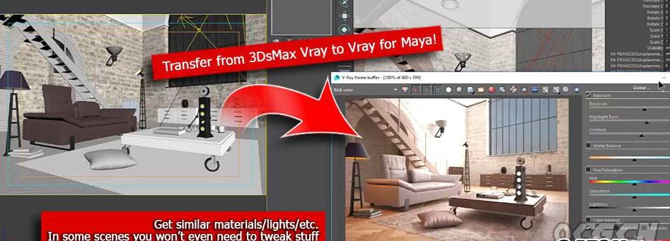 自动从3DsMax Vray转移到Vray For Maya“相似”的材质和设置。即使标准材料也会尝试获得“相似”的外观。