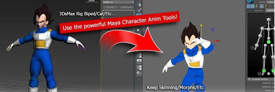 ♦ 传输3DsMax皮肤字符并使用强大的 Maya角色动画工具!保持皮肤/变形/ etc