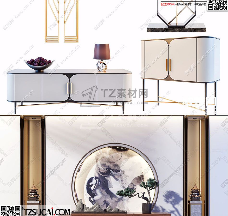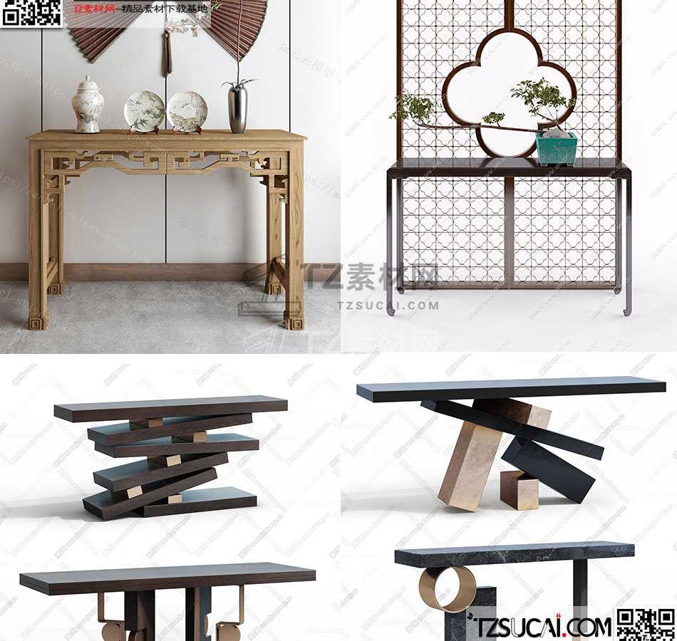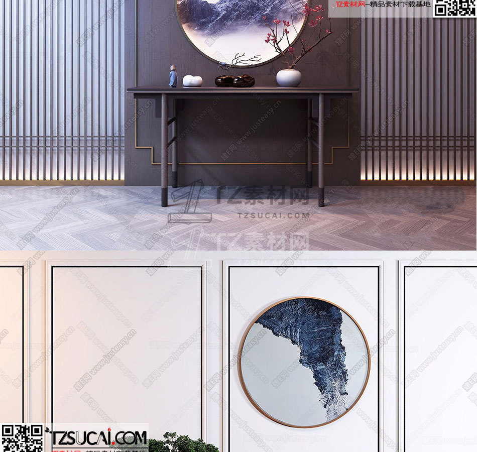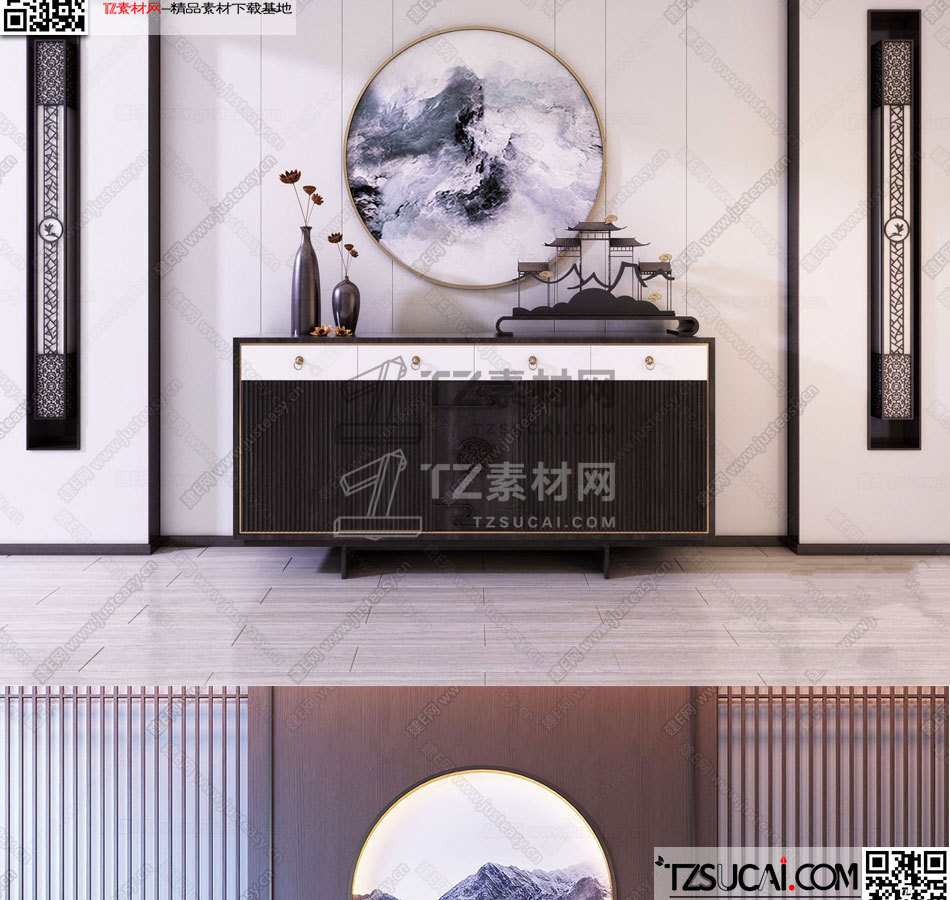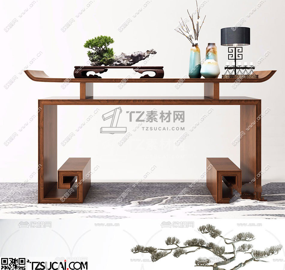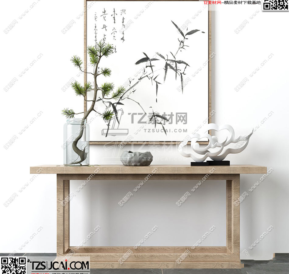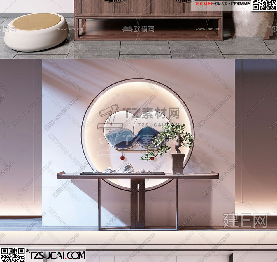 新中式玄关端景条案柜子3Dmax单体组合模型下载
