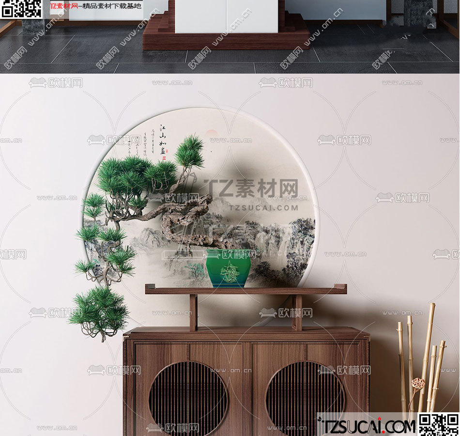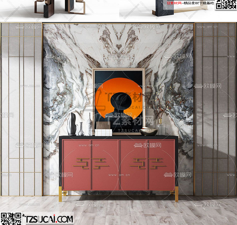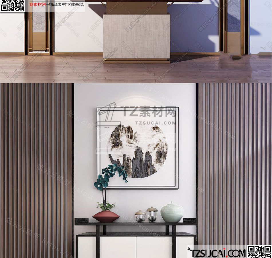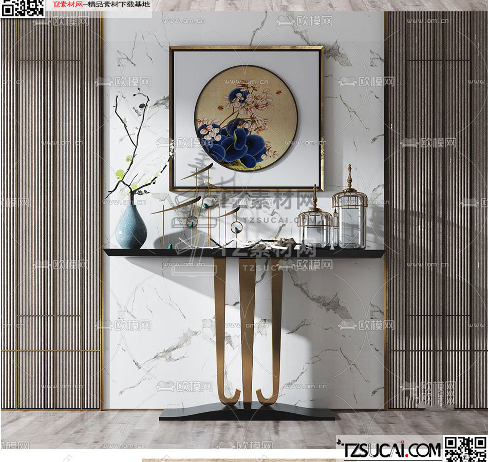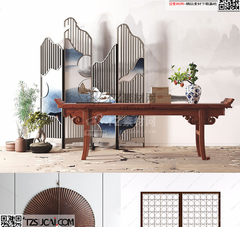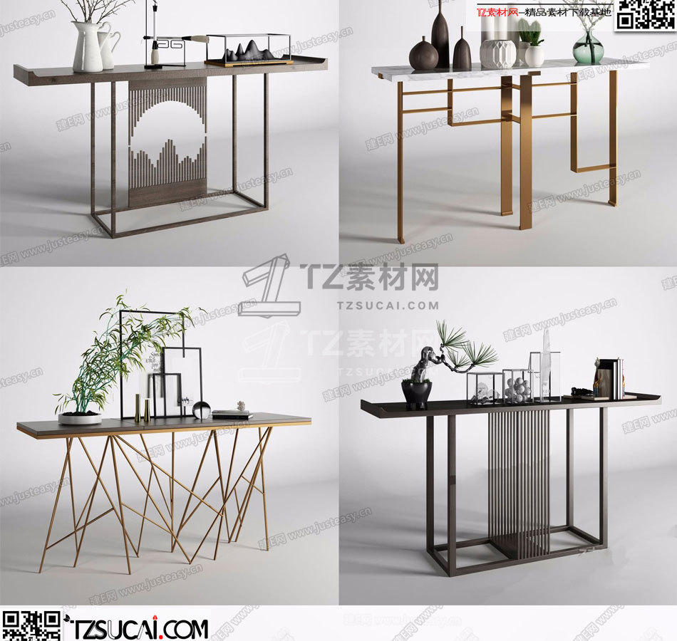 新中式玄关端景条案柜子3Dmax单体组合模型下载
