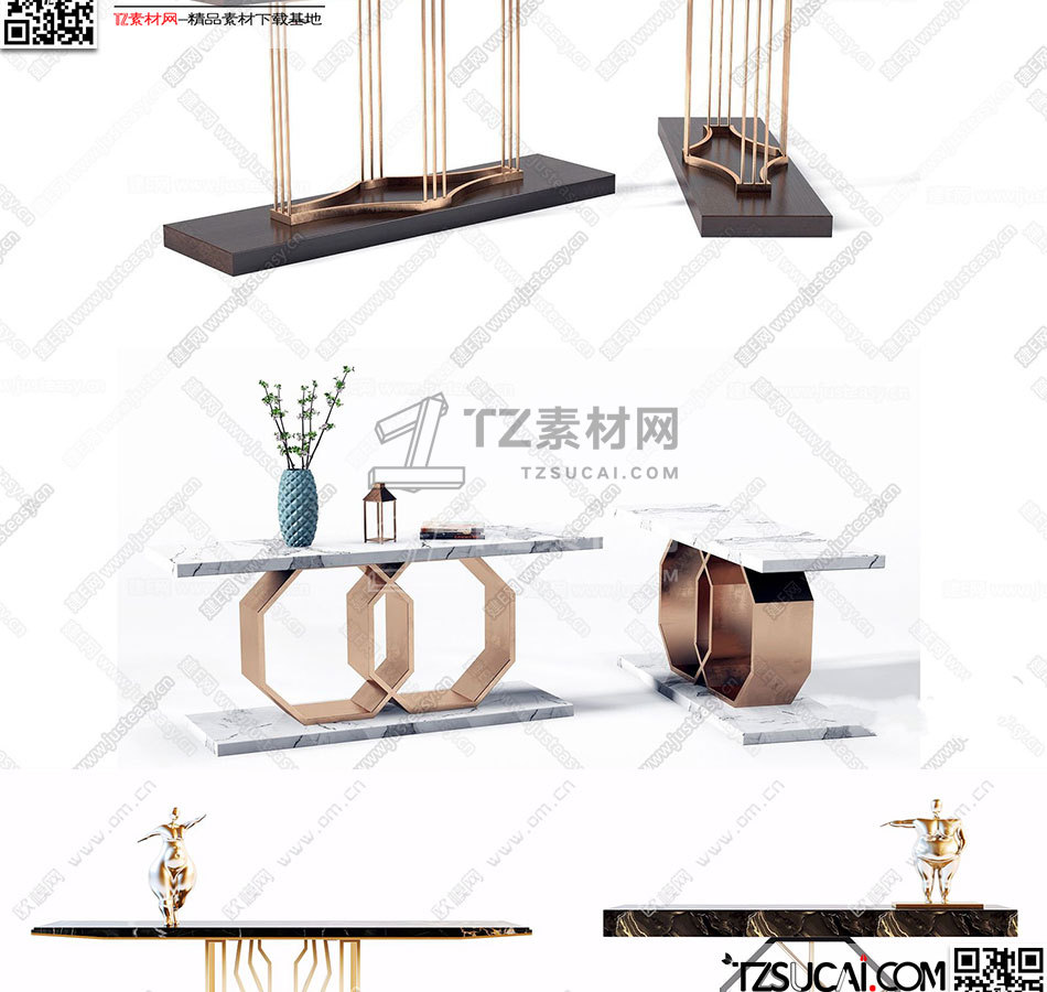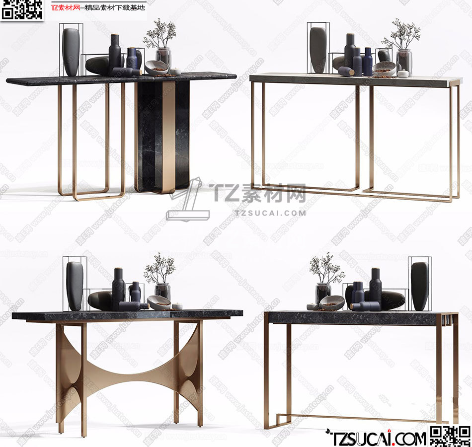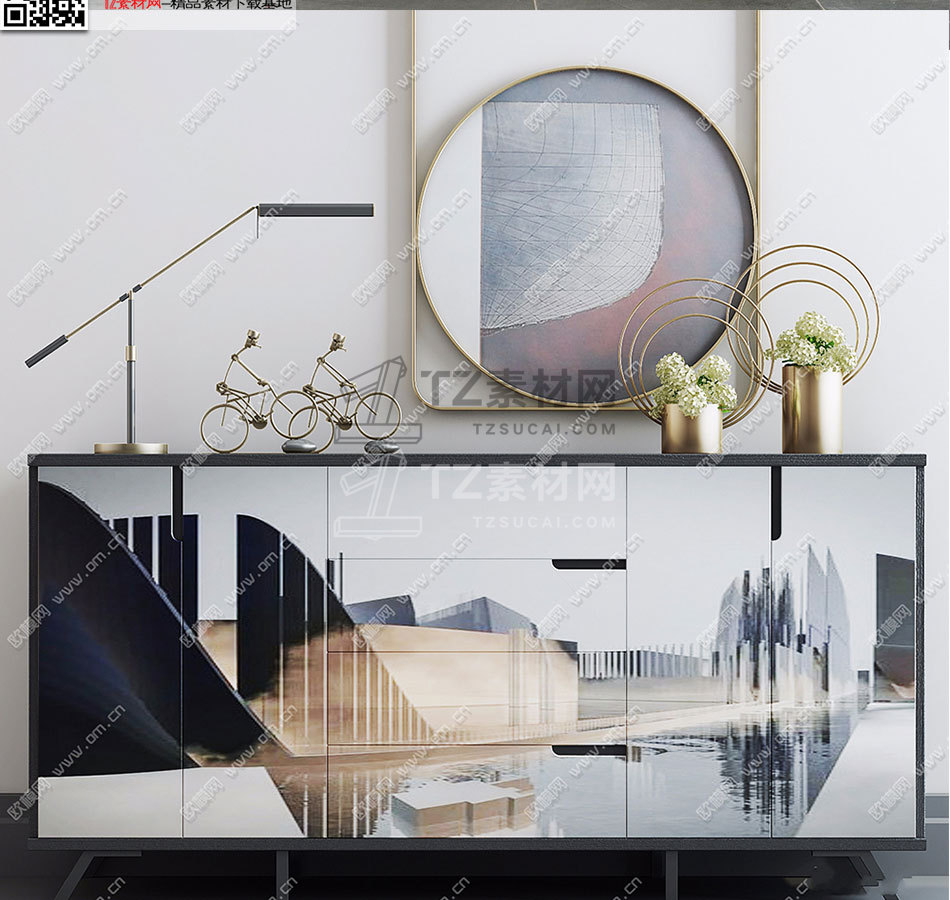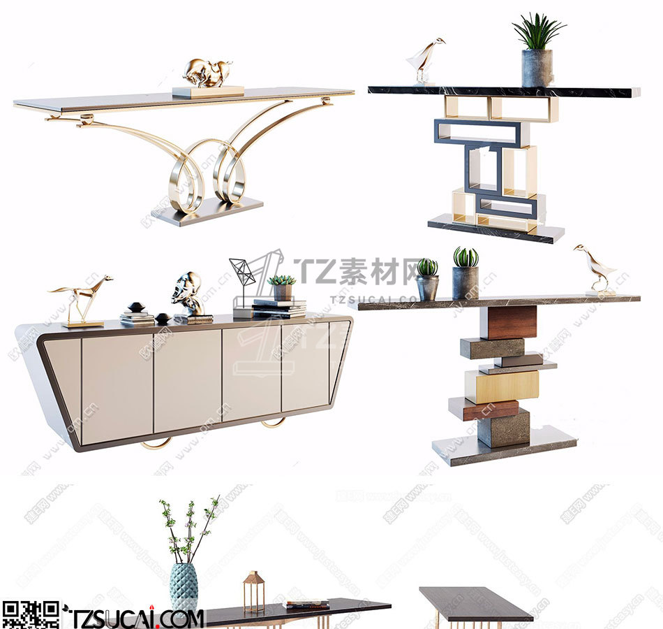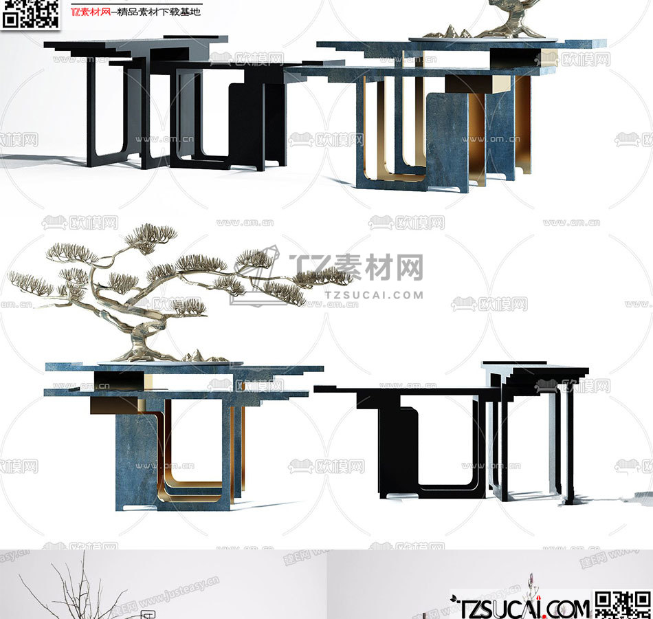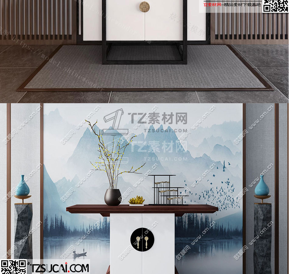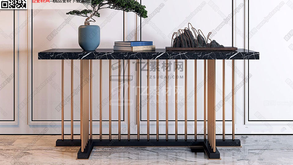 新中式玄关端景条案柜子3Dmax单体组合模型下载