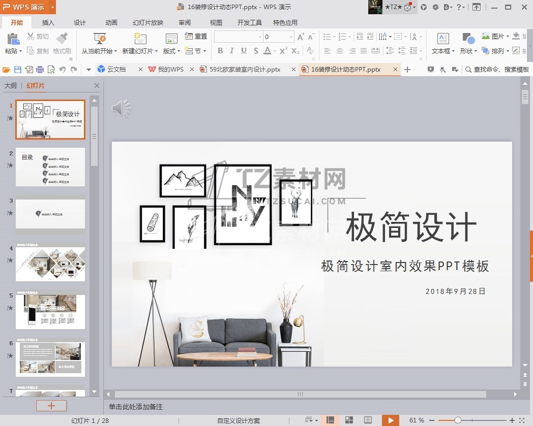 室内设计PPT模板装潢环艺设计PPT演示文稿下载