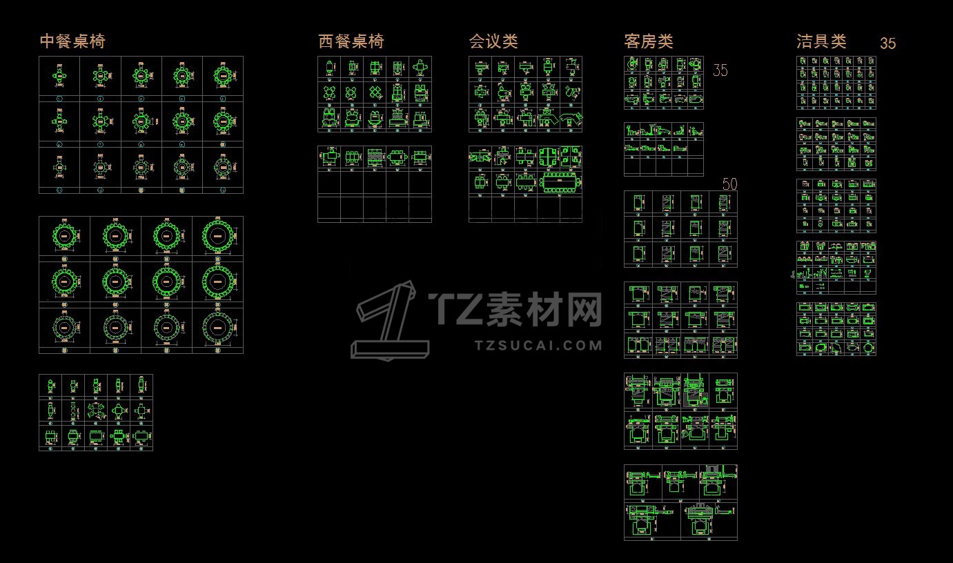 精品家具设计cad图库大堂吧沙发、餐桌椅、洁具
