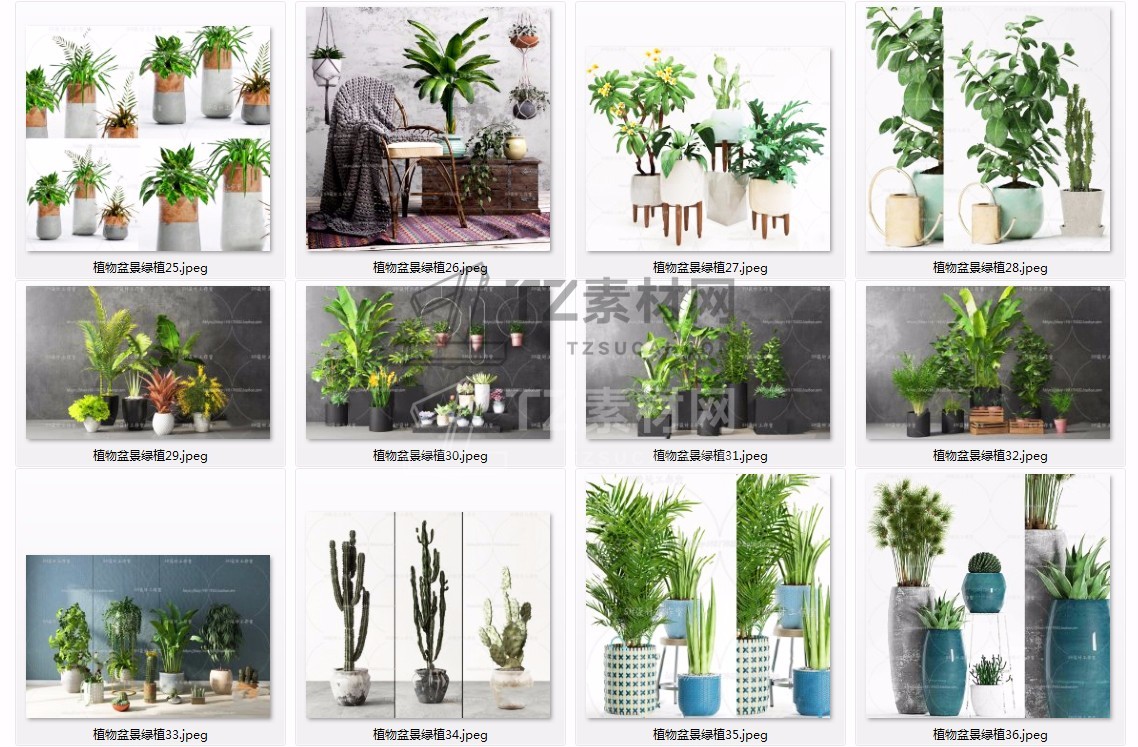 T-324室内设计植物盆栽花卉3DMAX模型合集