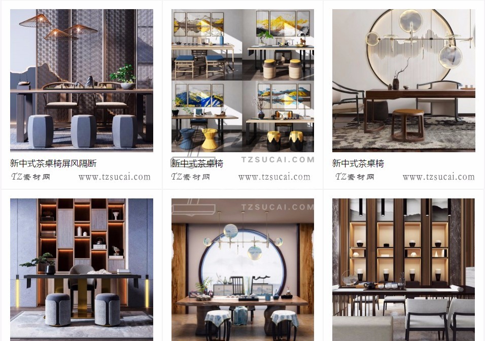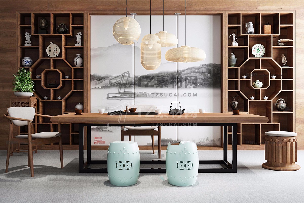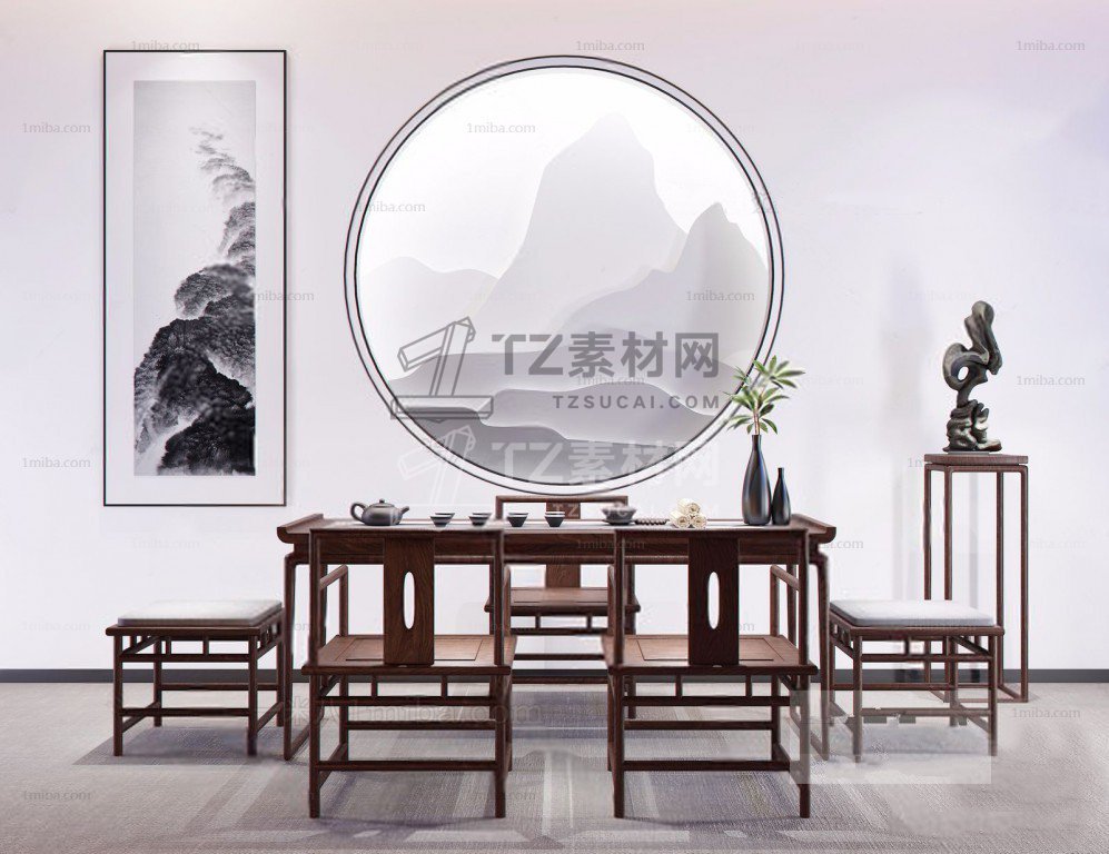 T-330新中式风格【茶桌椅】3Dmax模型合集下载