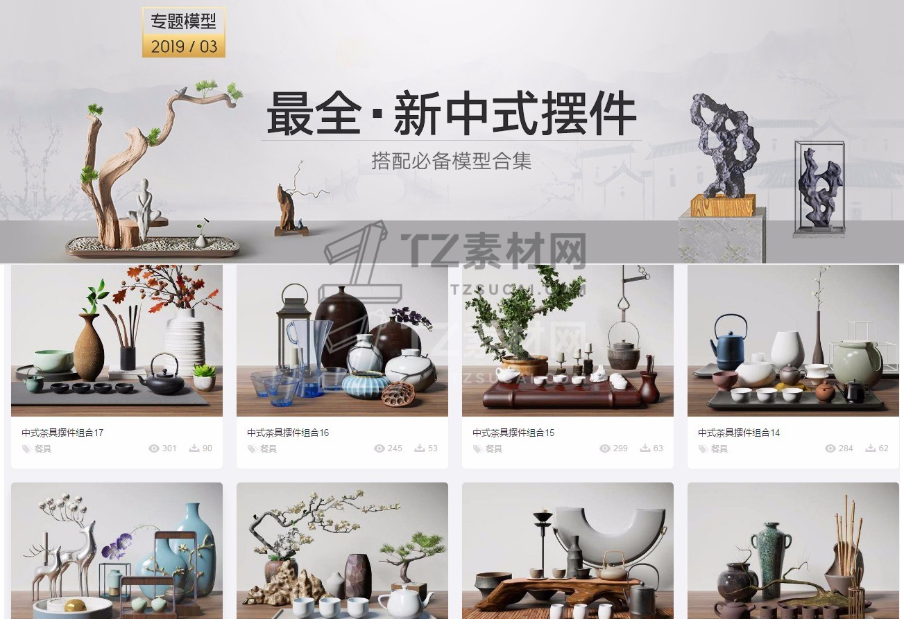 T-333新中式风格【饰品】3DMAX合集模型下载