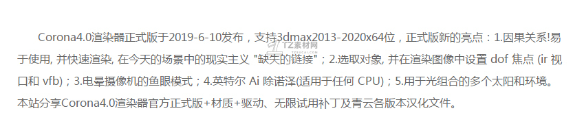 Corona4.0渲染器CR4.0 3DMAX2014/2016/2018含汉化版免费下载