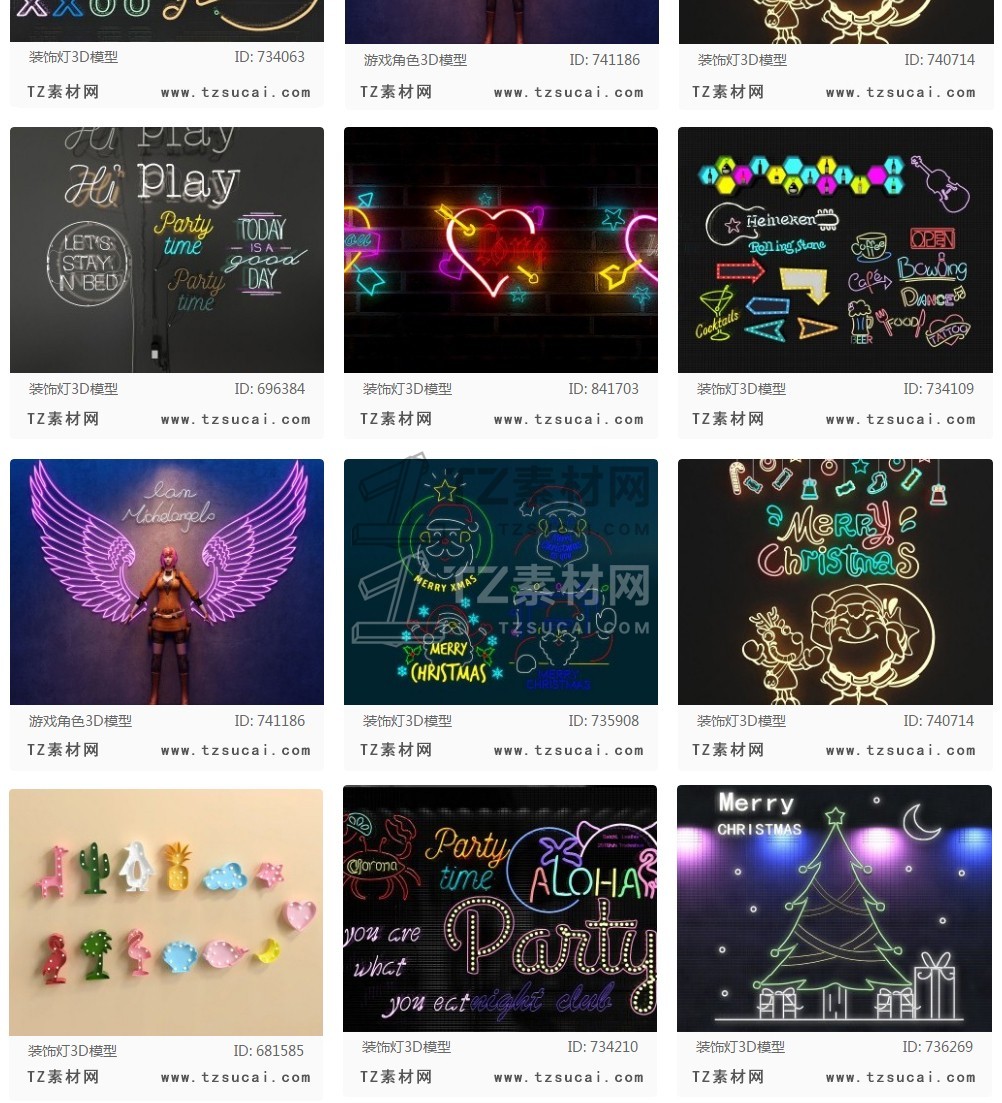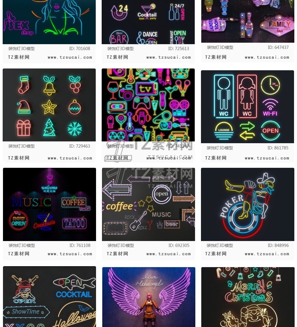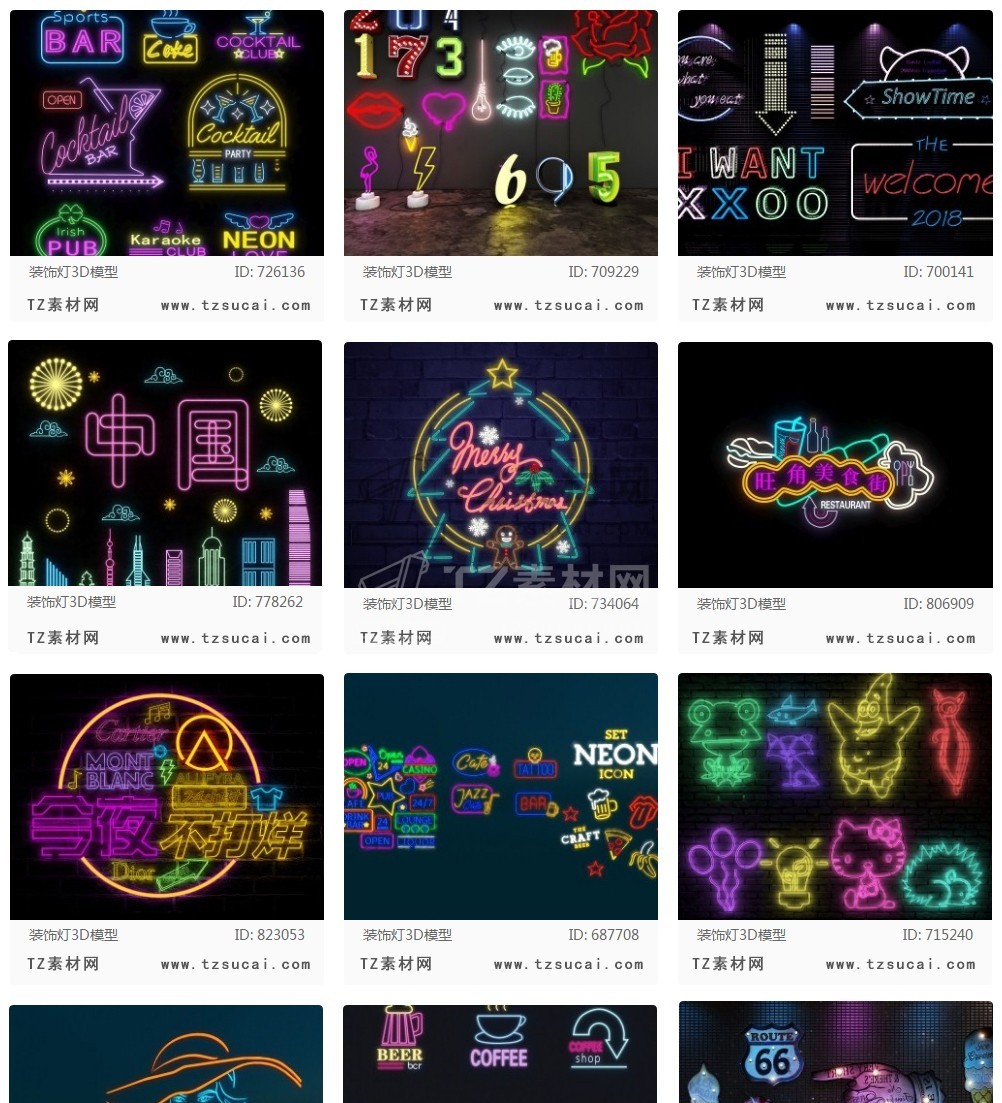 霓虹灯光3D模型|3Dmax单体模型|夜景场景灯光