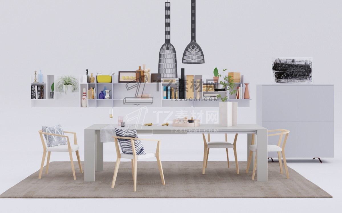 Interior Models Volume 5 is a collection of high-quality 3D interior accessories model.This collection includes 10 sets of Dining Set.