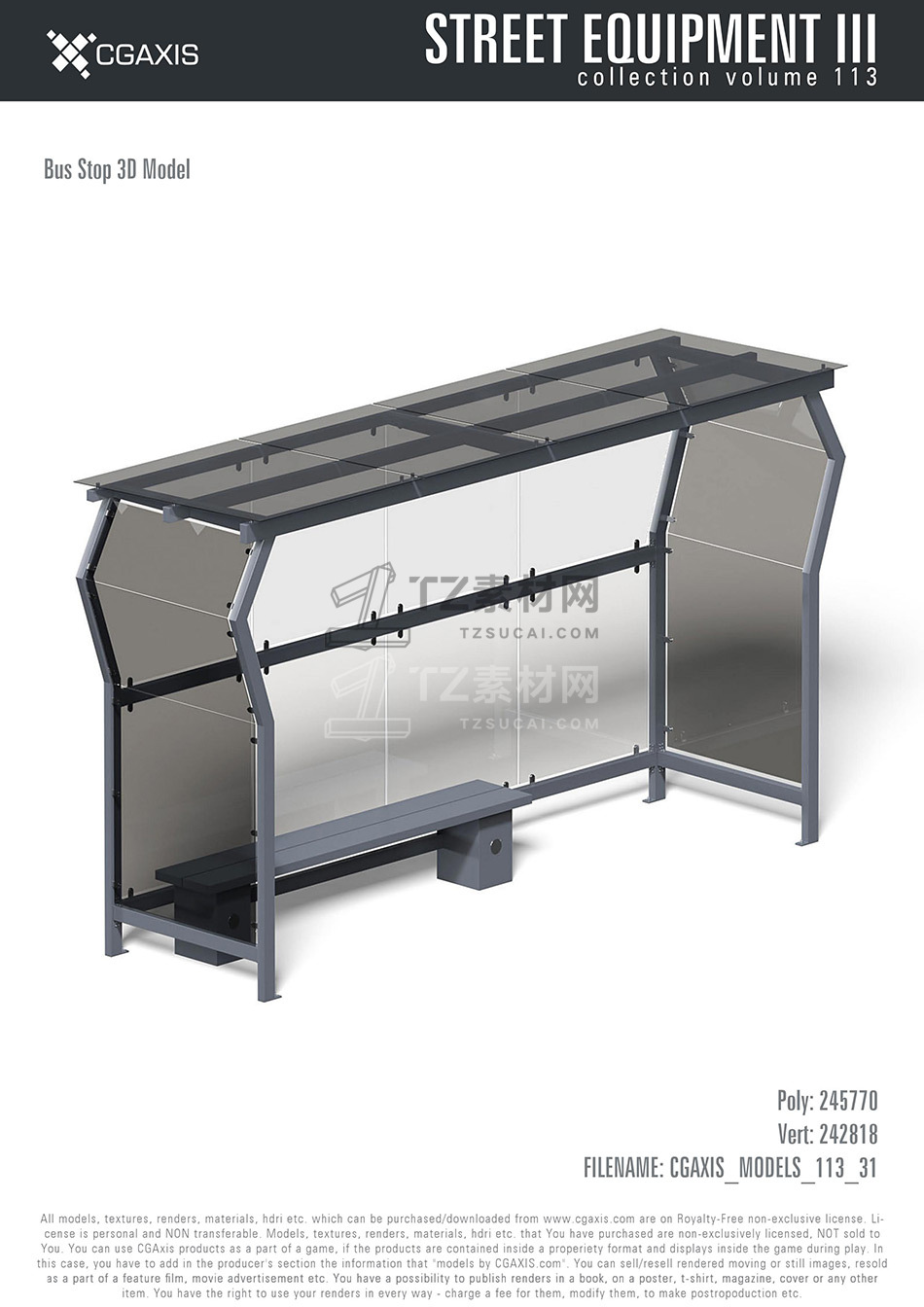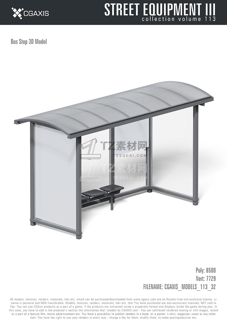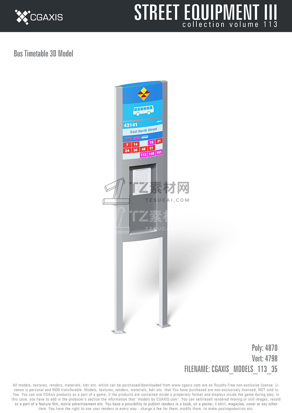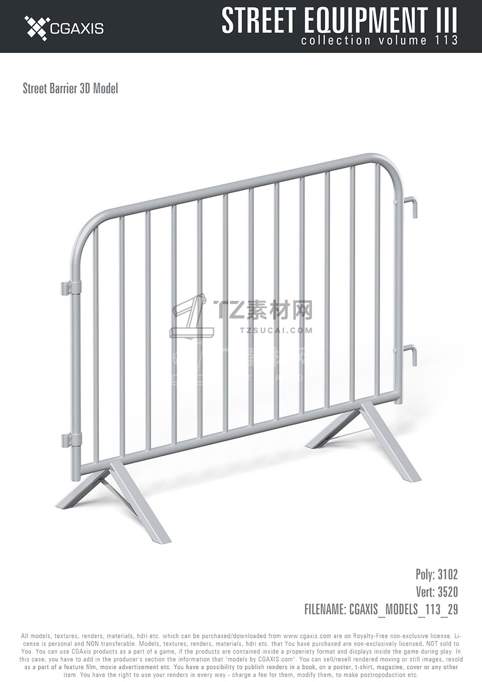 Street Equipment 3D Models Collection Volume 113 is a set of 40 high-polygon 3d models of street props and equipment. You can find here street and traffic lights, traffic signs, bus stops, benches, trash bins and many more.