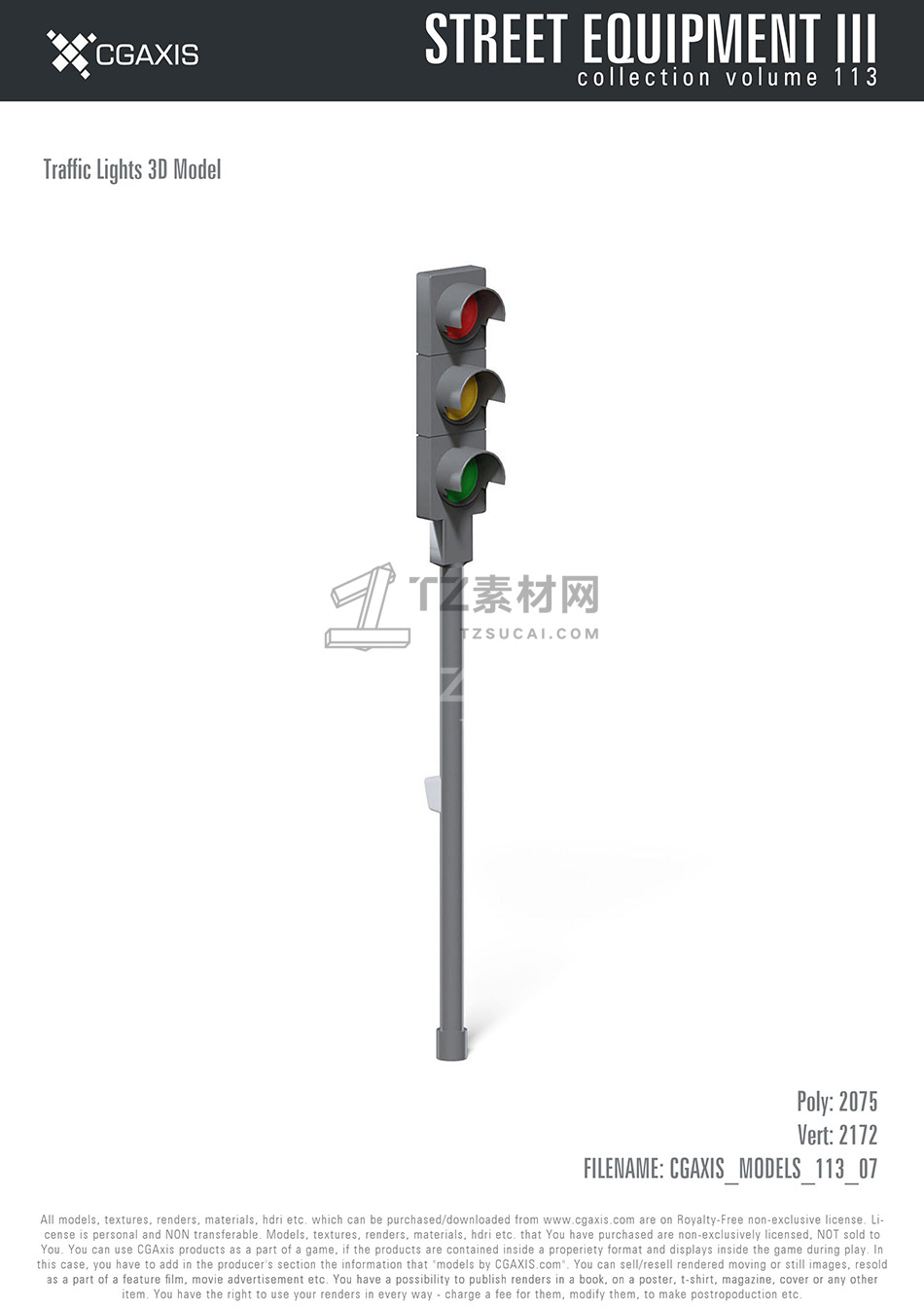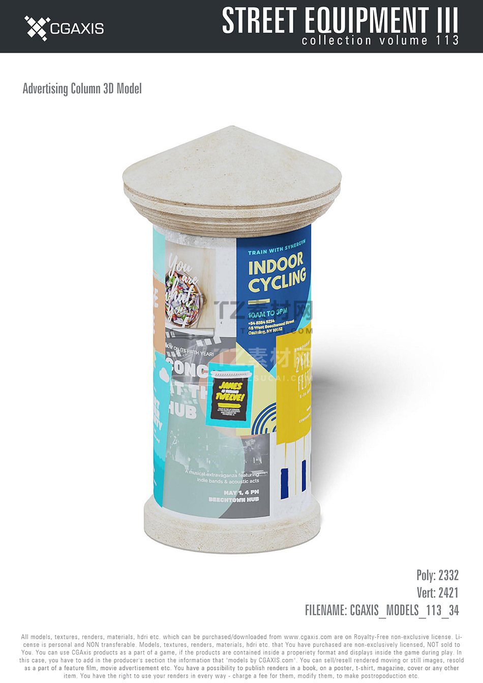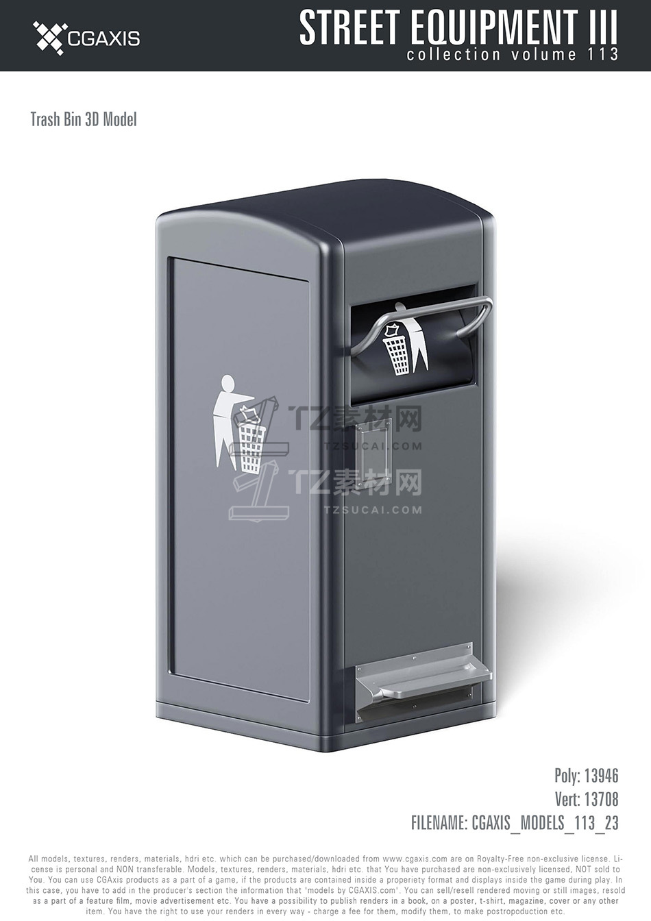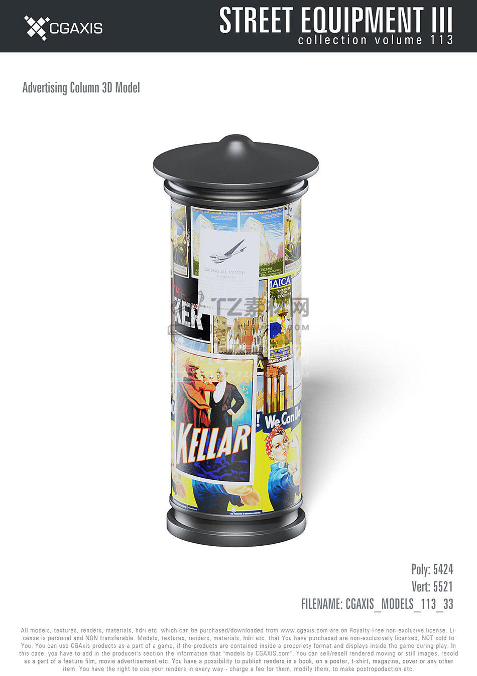 Street Equipment 3D Models Collection Volume 113 is a set of 40 high-polygon 3d models of street props and equipment. You can find here street and traffic lights, traffic signs, bus stops, benches, trash bins and many more.
