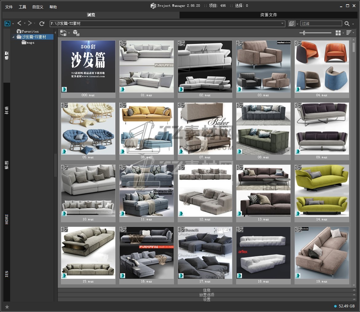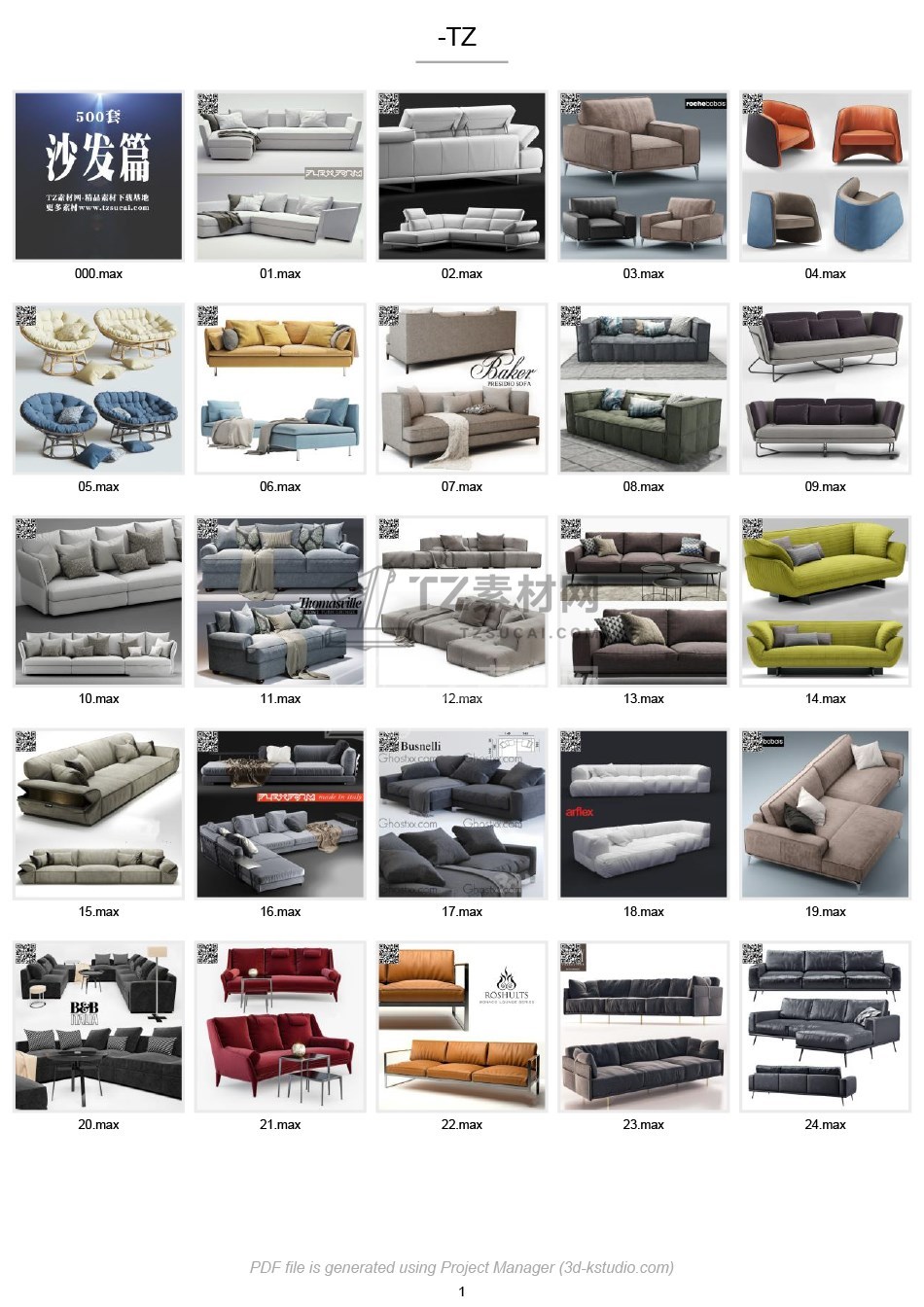 沙发篇500套精品3Dmax模型|PM项目管理器|TZ素材网整理