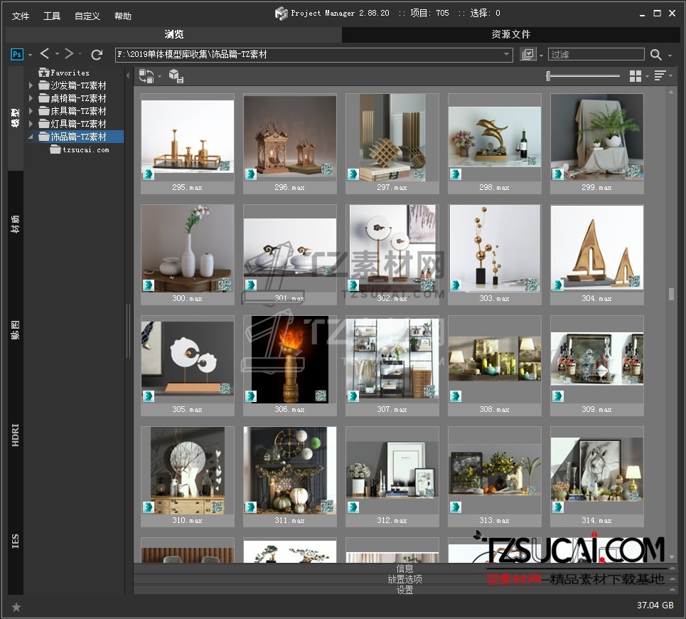 饰品篇|700套精品3Dmax模型|PM项目管理器|TZ素材网整