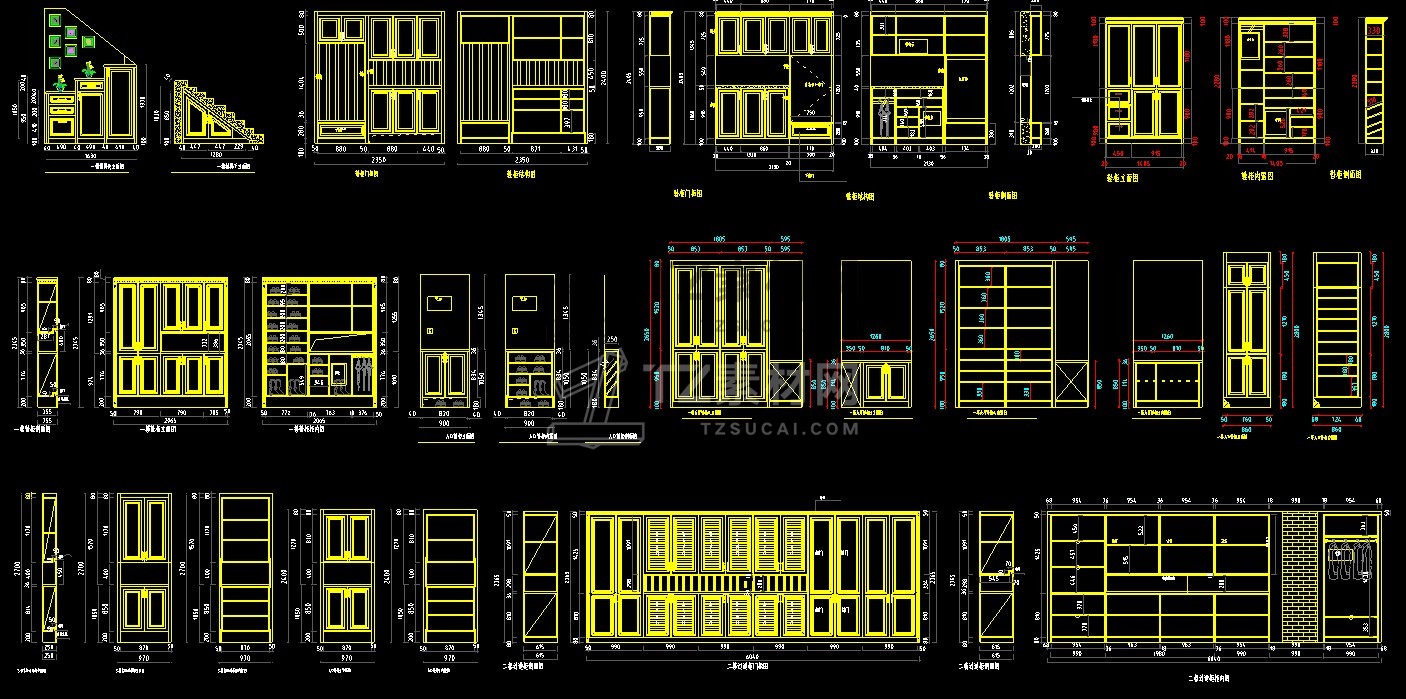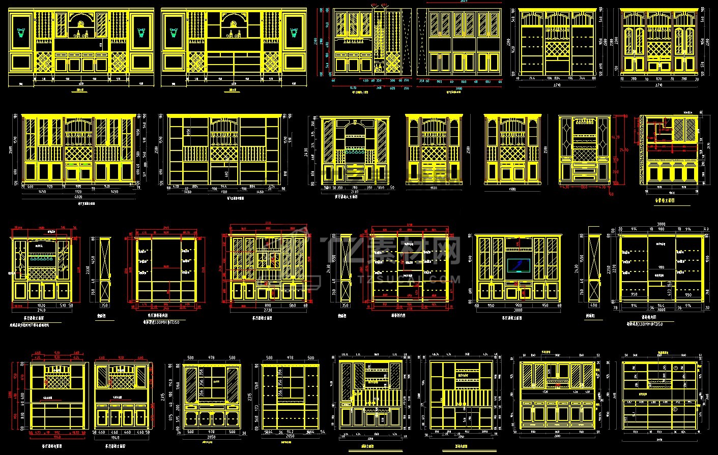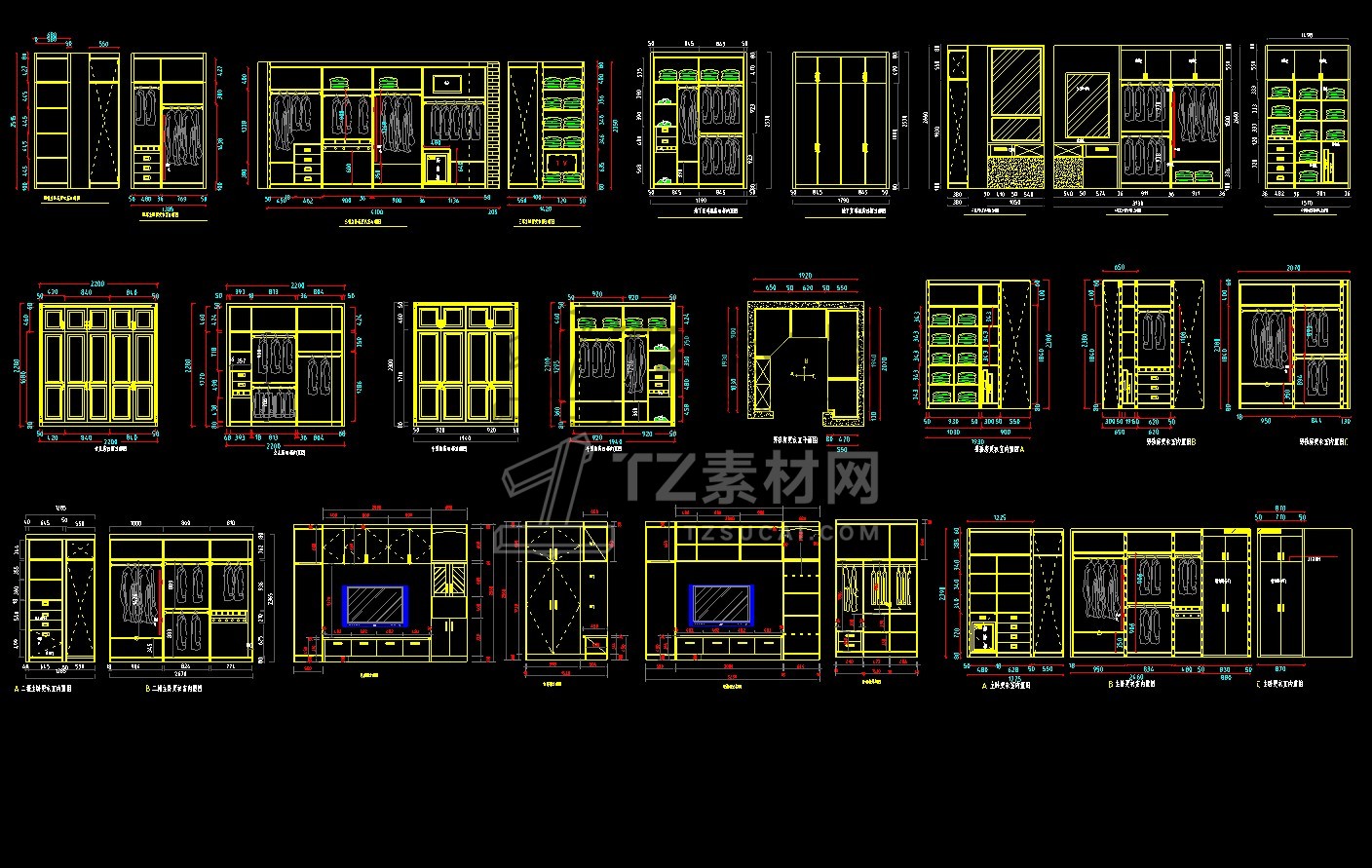 全屋定制酒柜书柜鞋柜衣柜cad图库