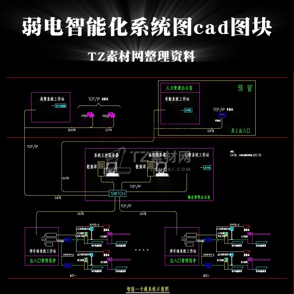 CAD素材-弱电智能化系统图cad图块图库下载