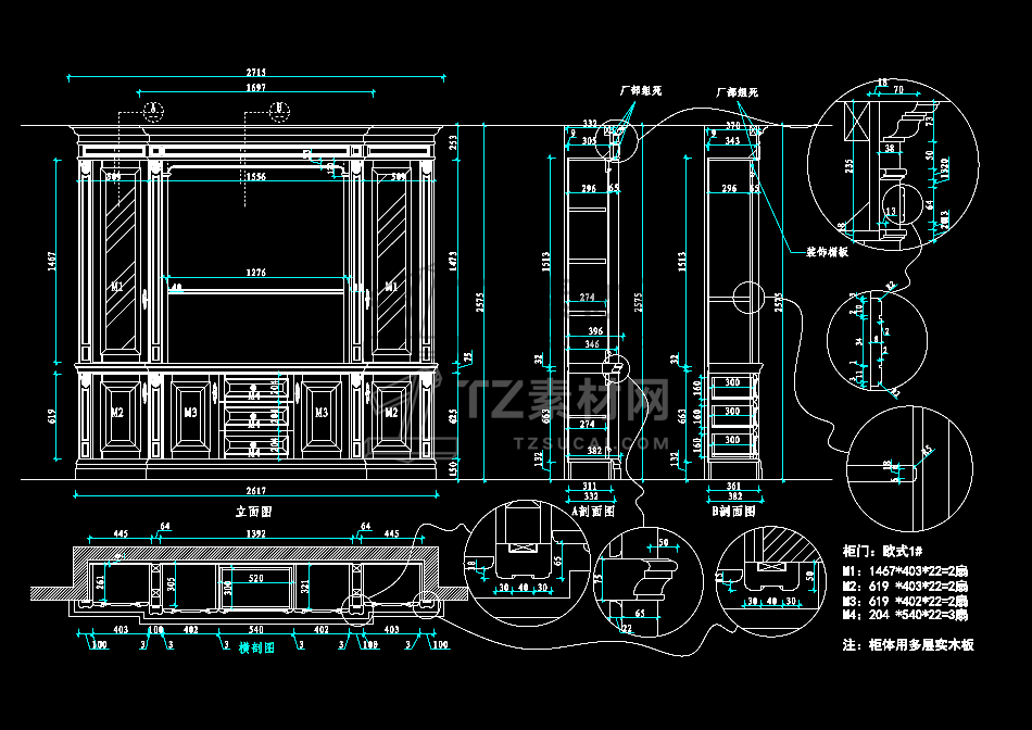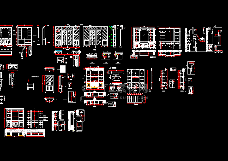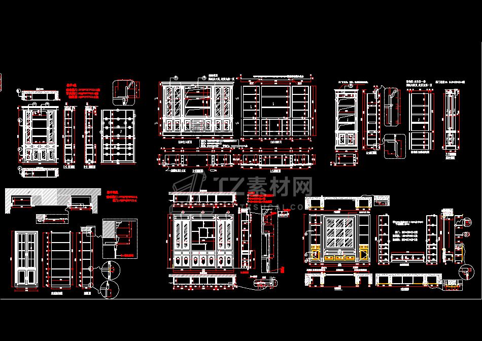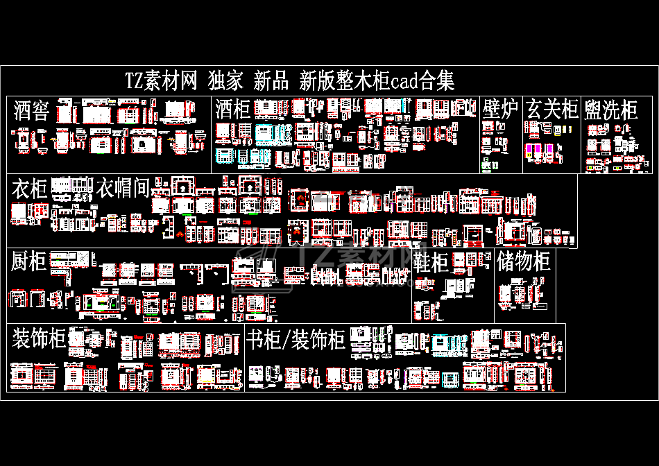 CAD素材-新版整木柜cad合集各种柜子立面图施工图