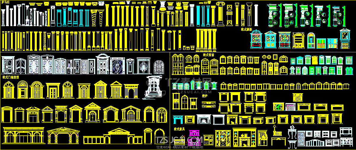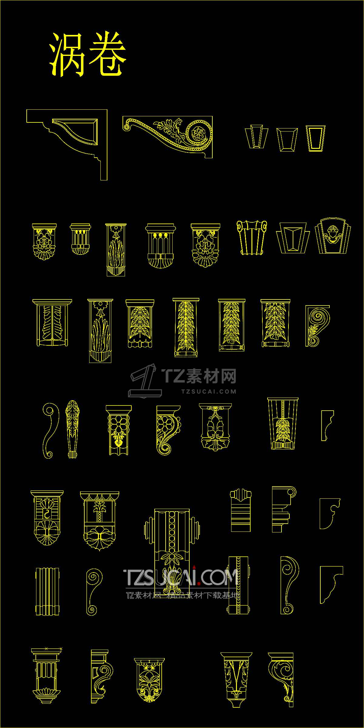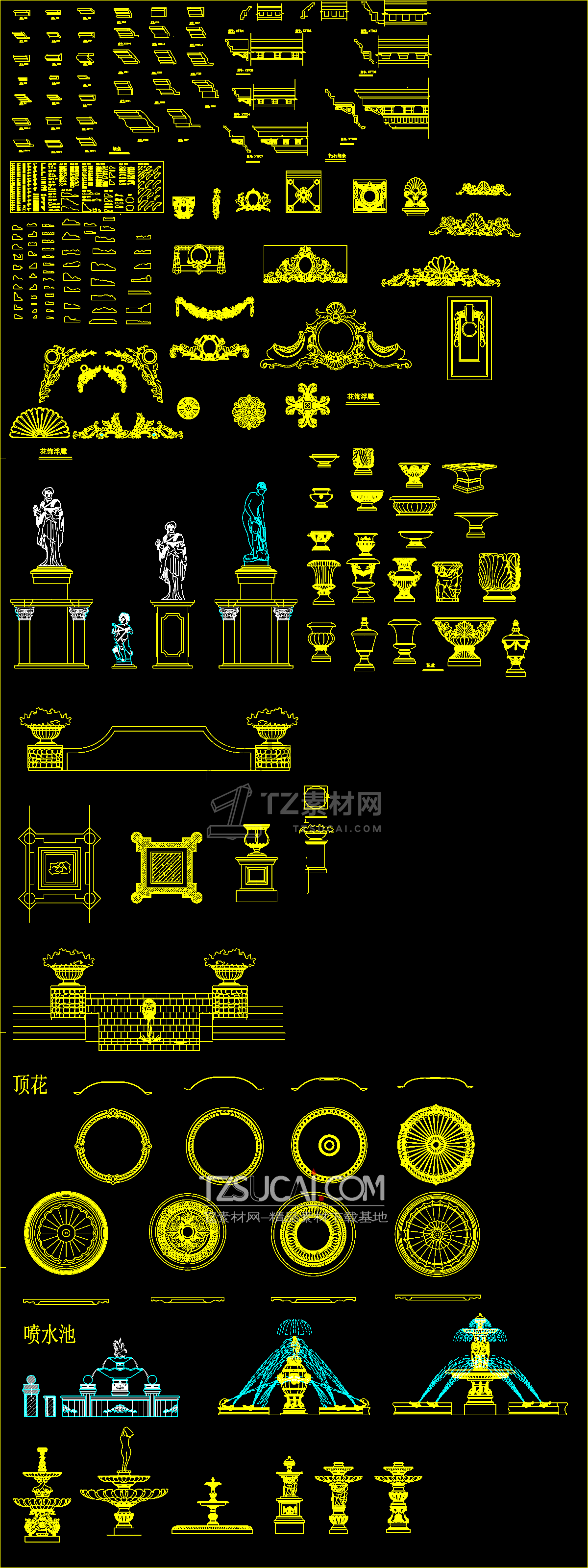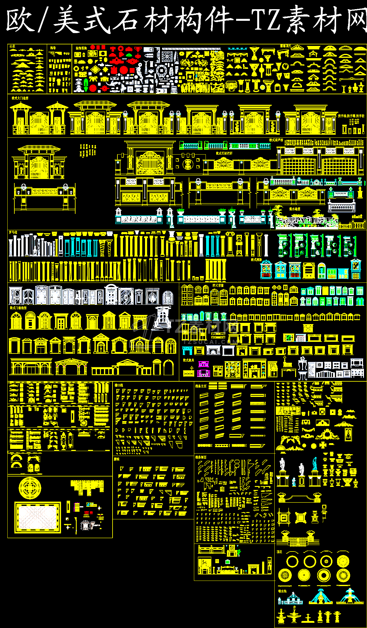 CAD素材-欧式美式石材构件奢华装饰雕花