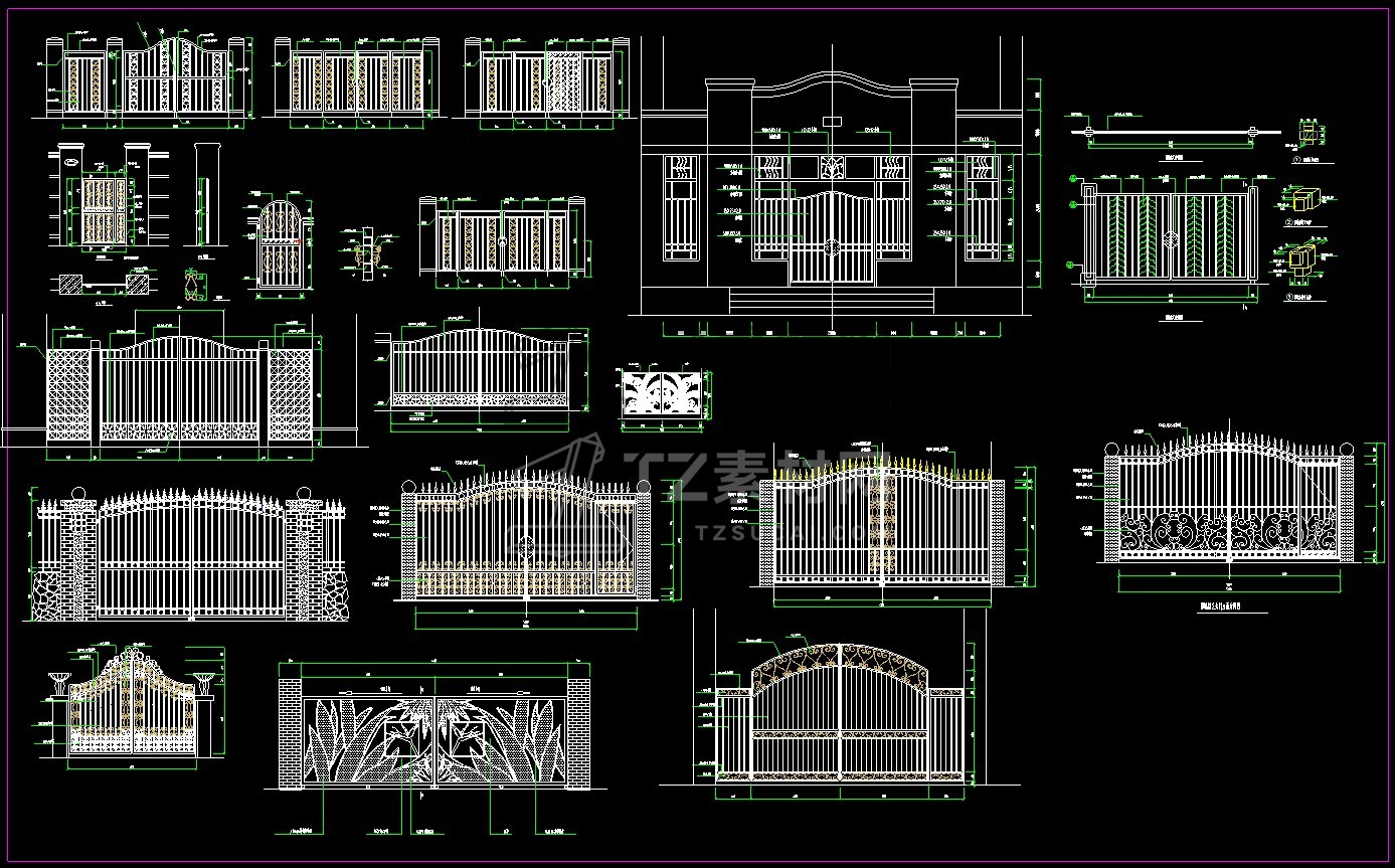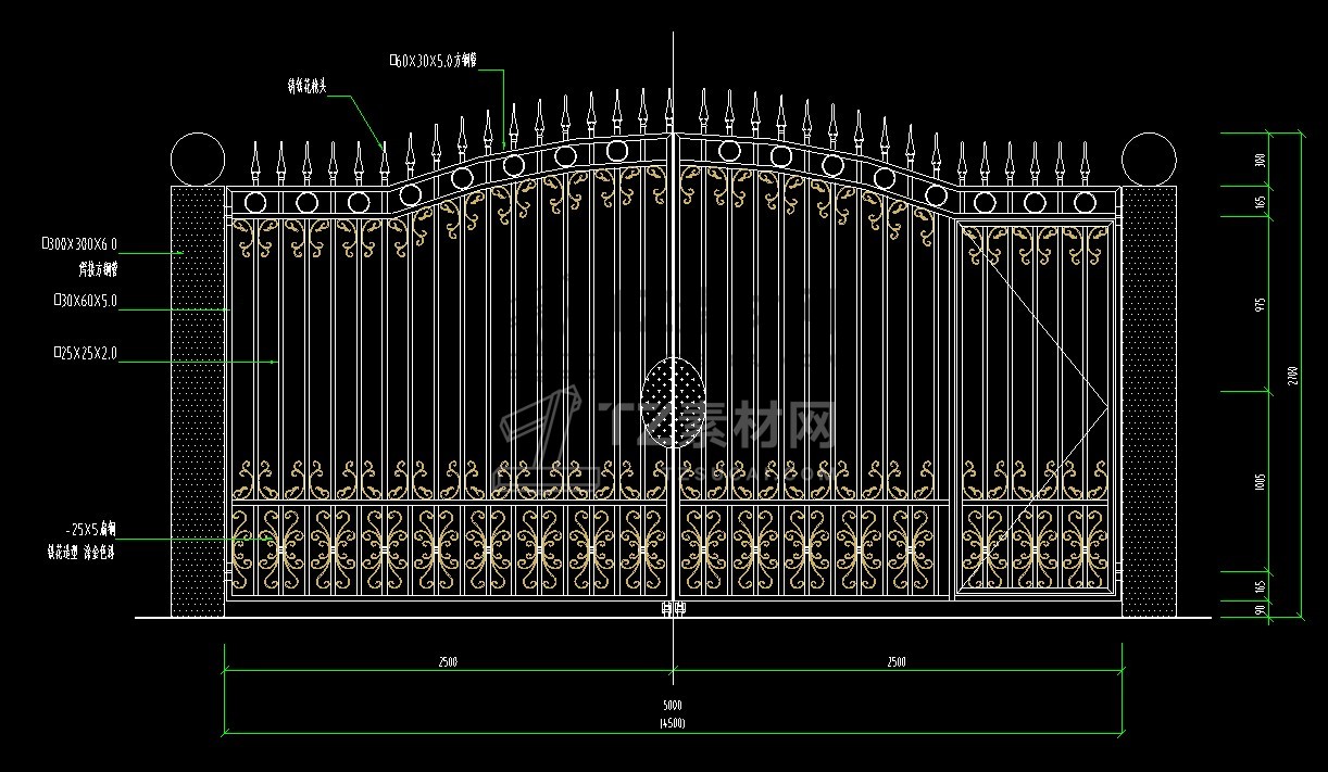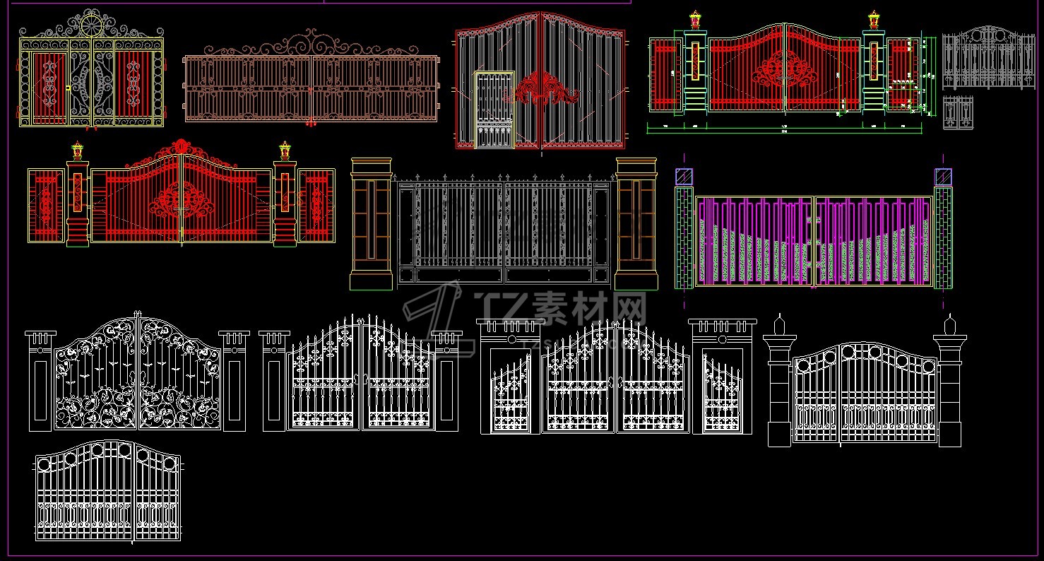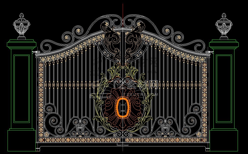 乡村庭院铁艺别墅大门cad图块