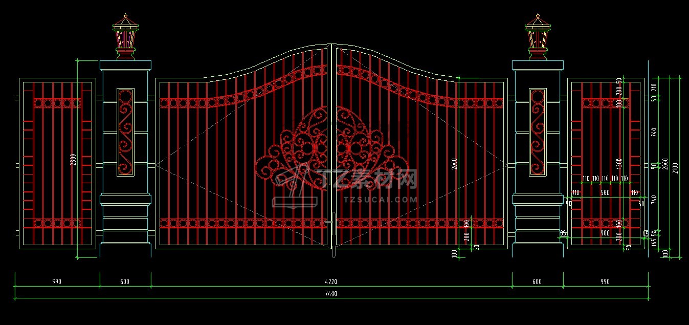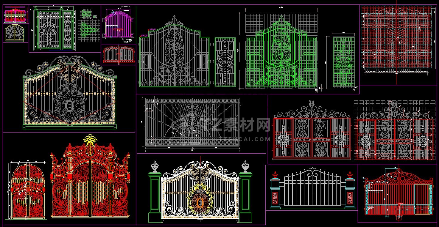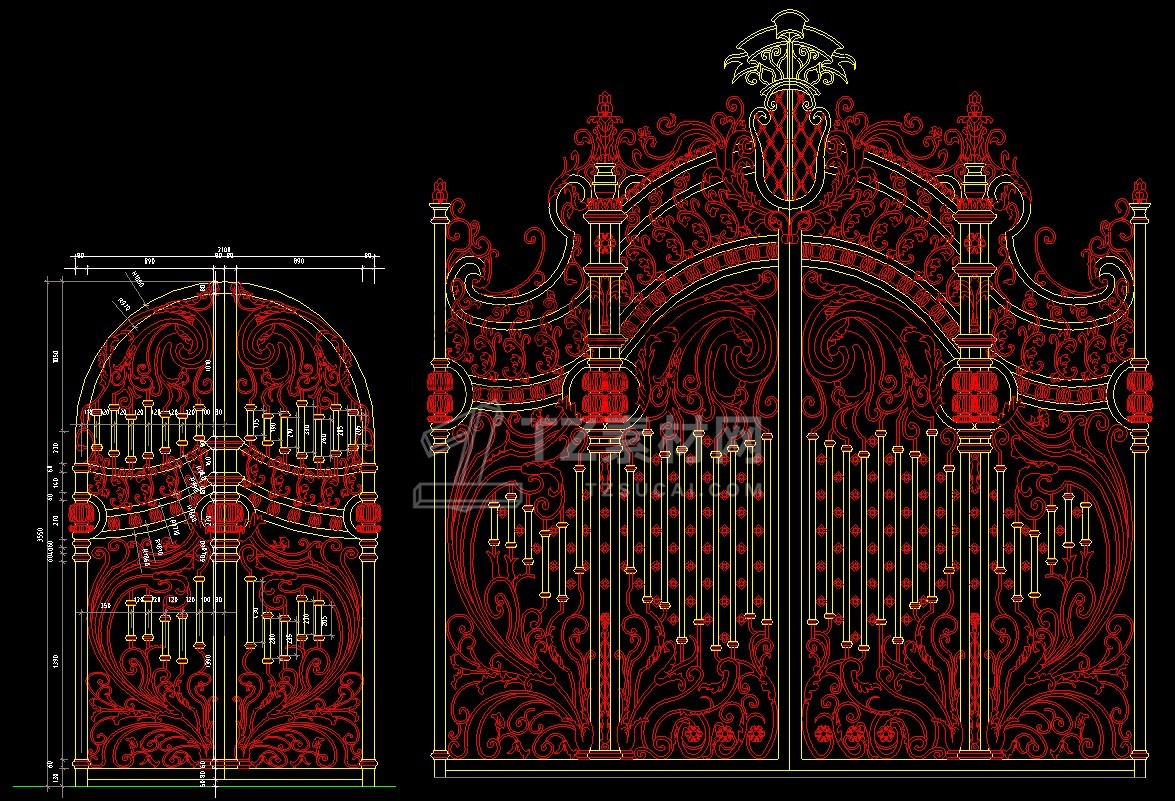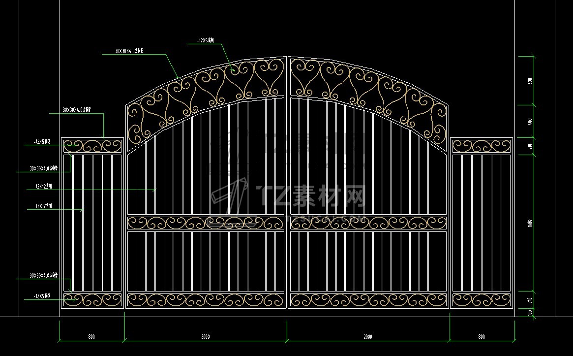 乡村庭院铁艺别墅大门cad图块