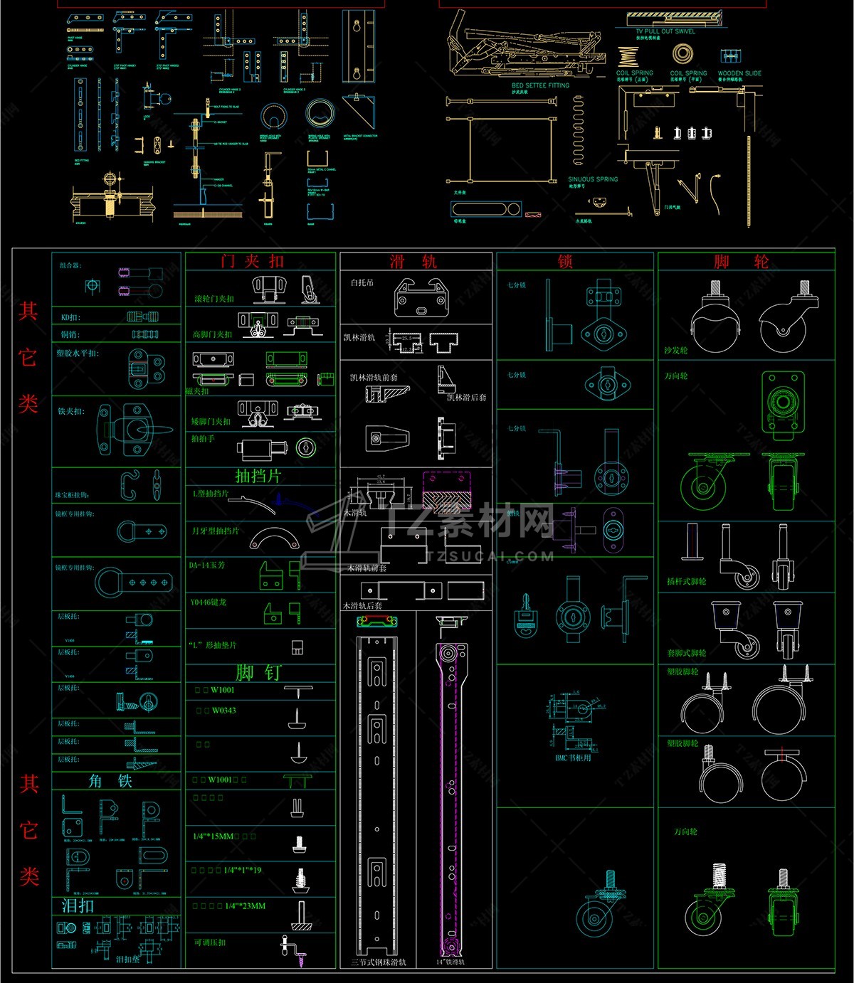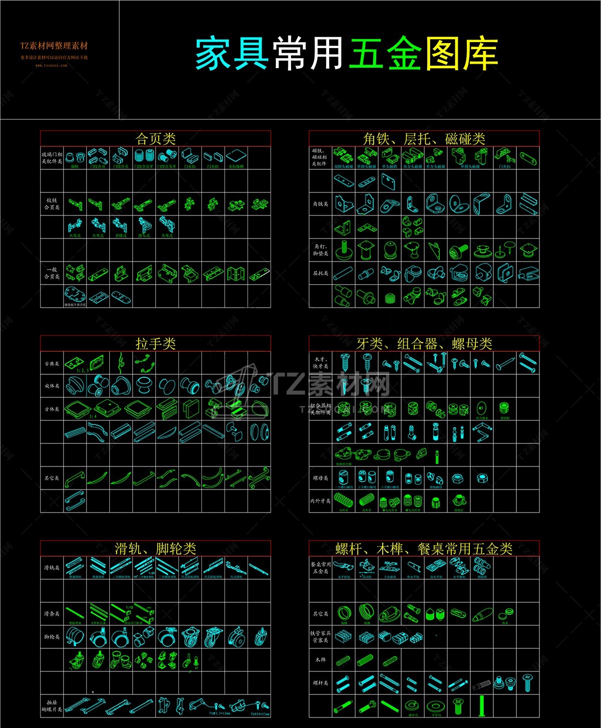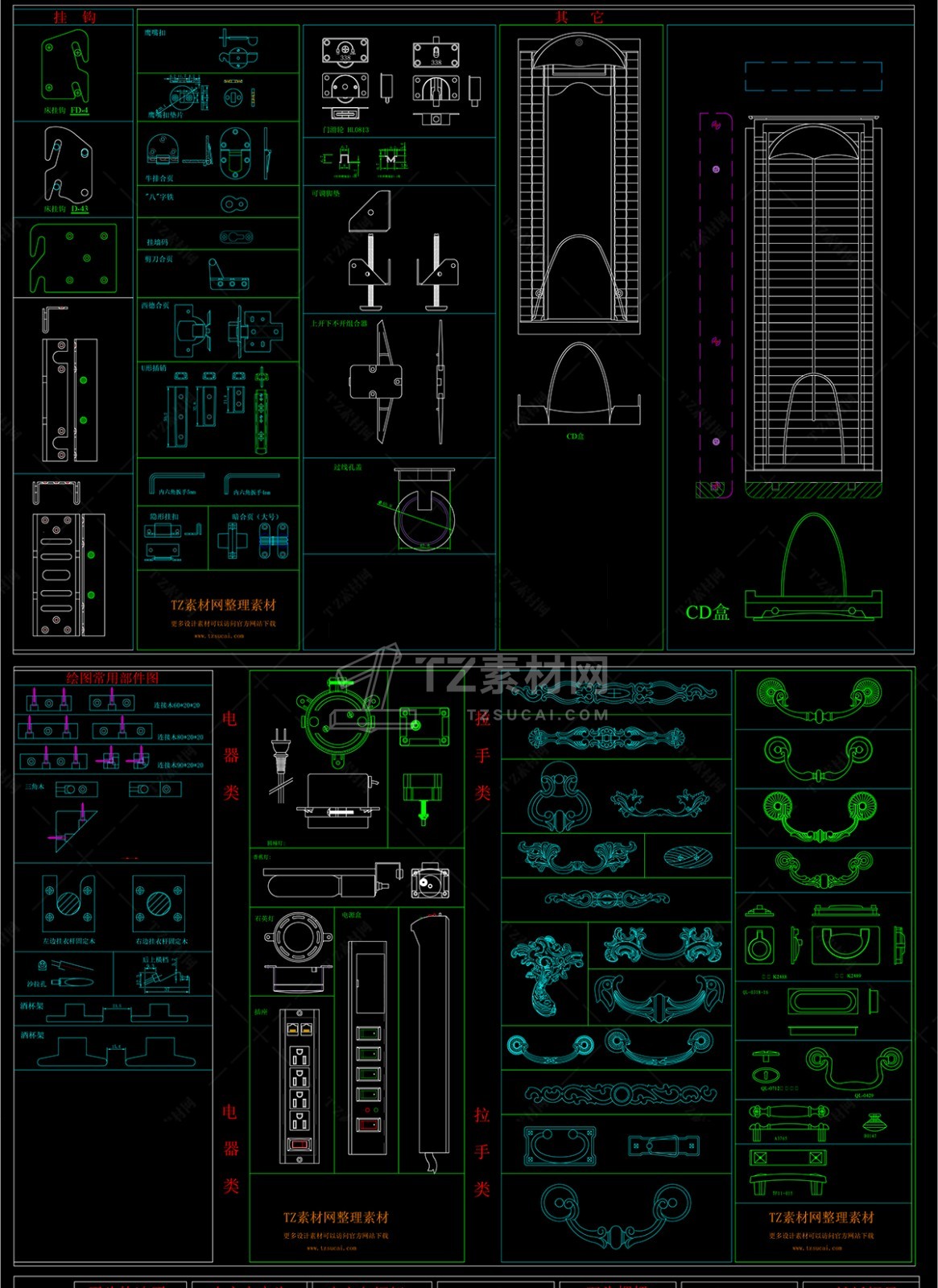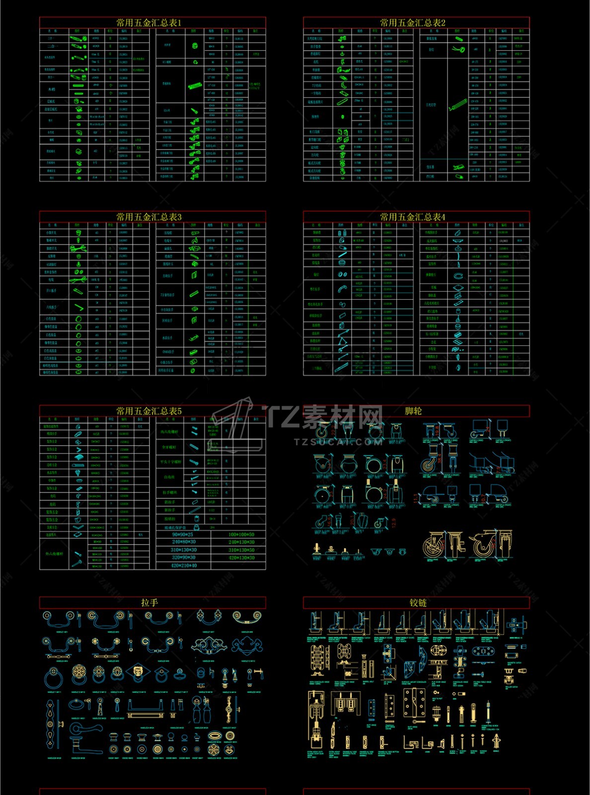 室内家具CAD五金配件图块图库下载
