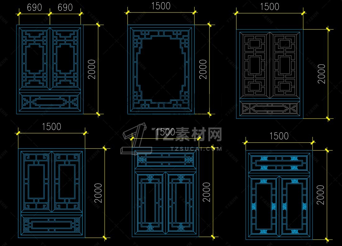 古建筑窗CAD图集CAD素材图块图库