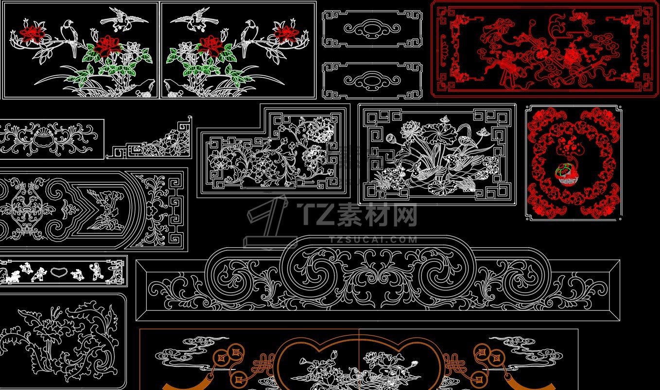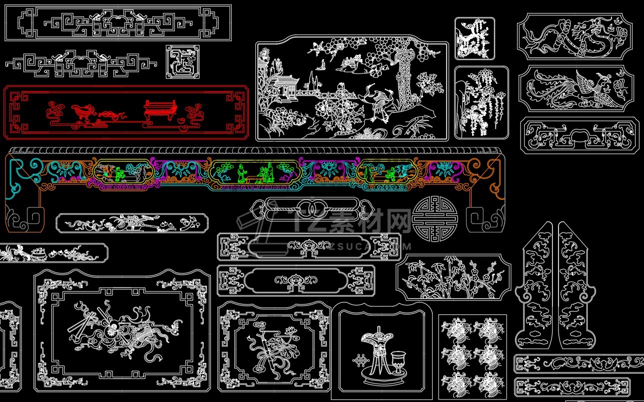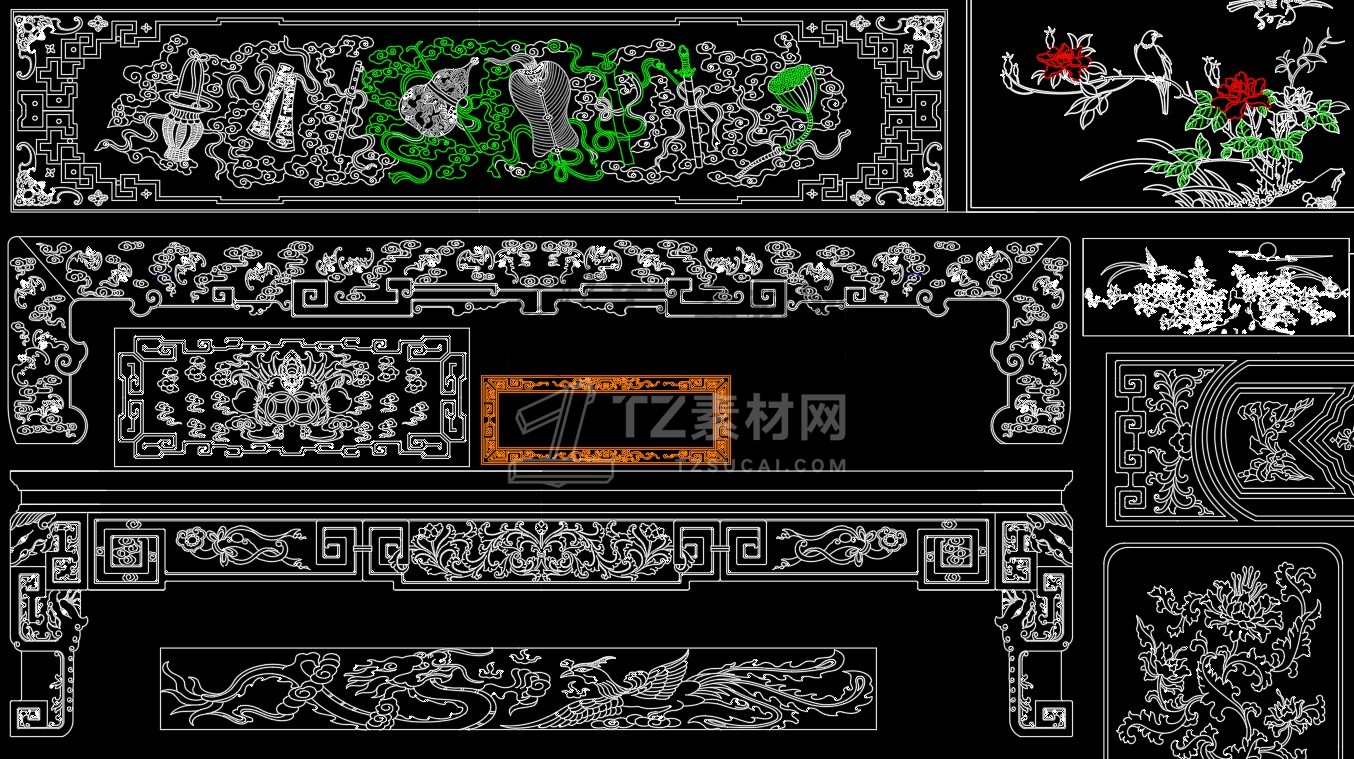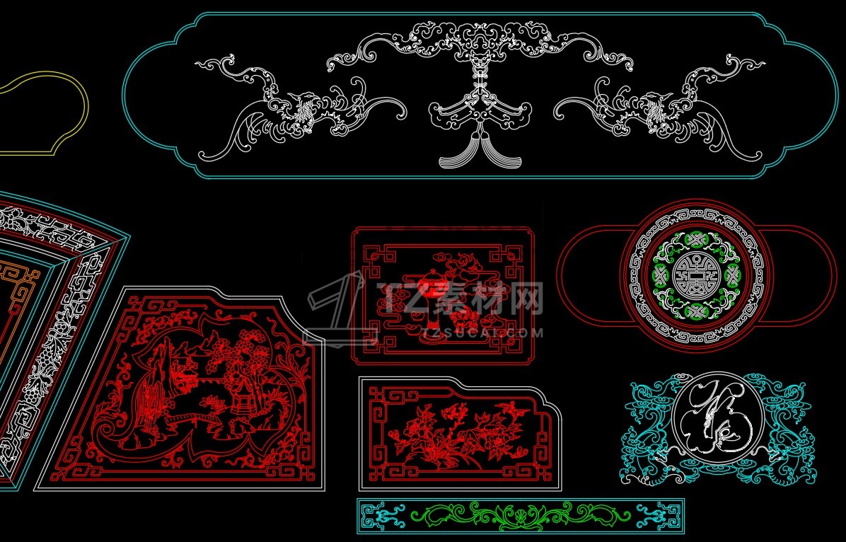 中式雕花构件CAD图库