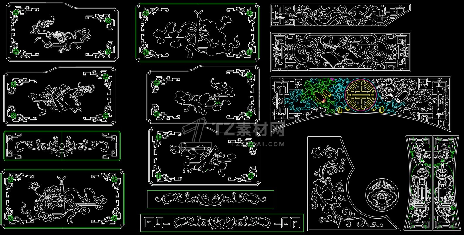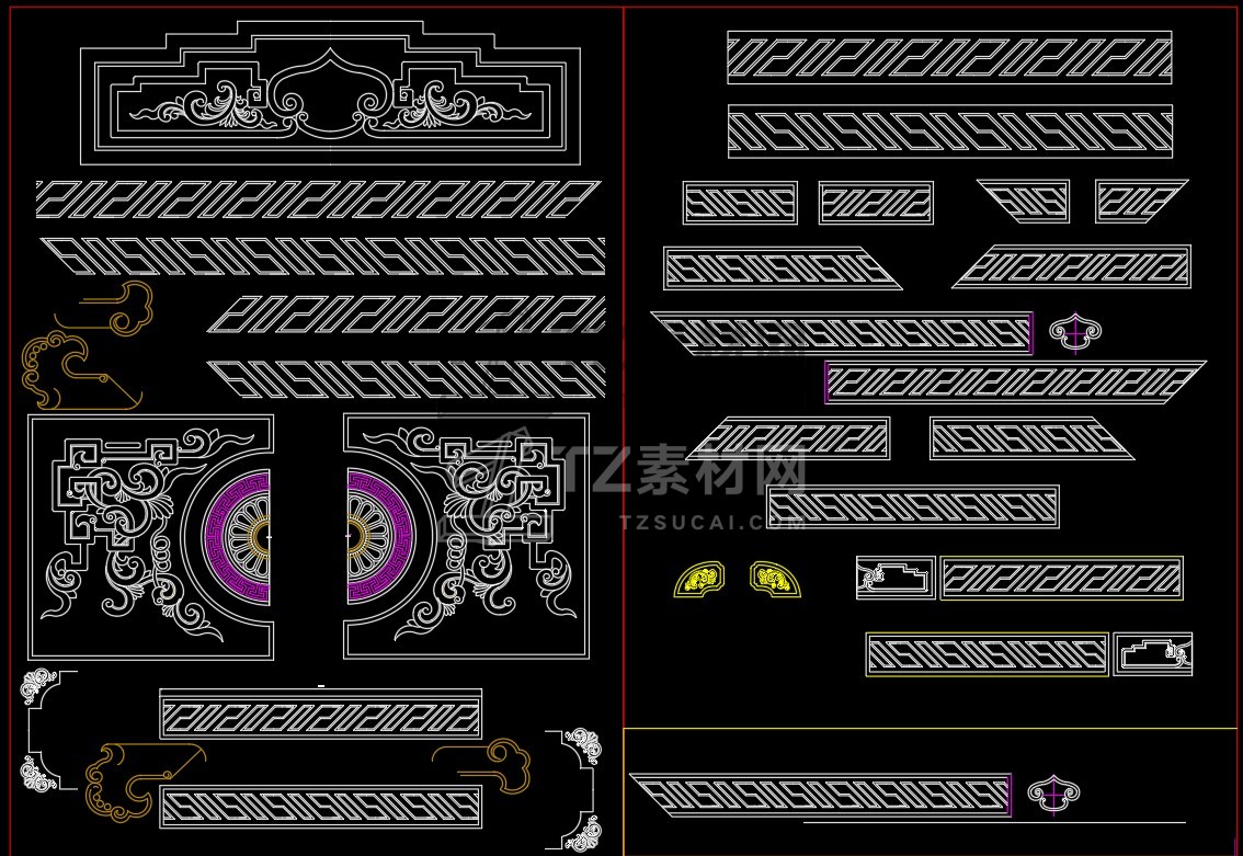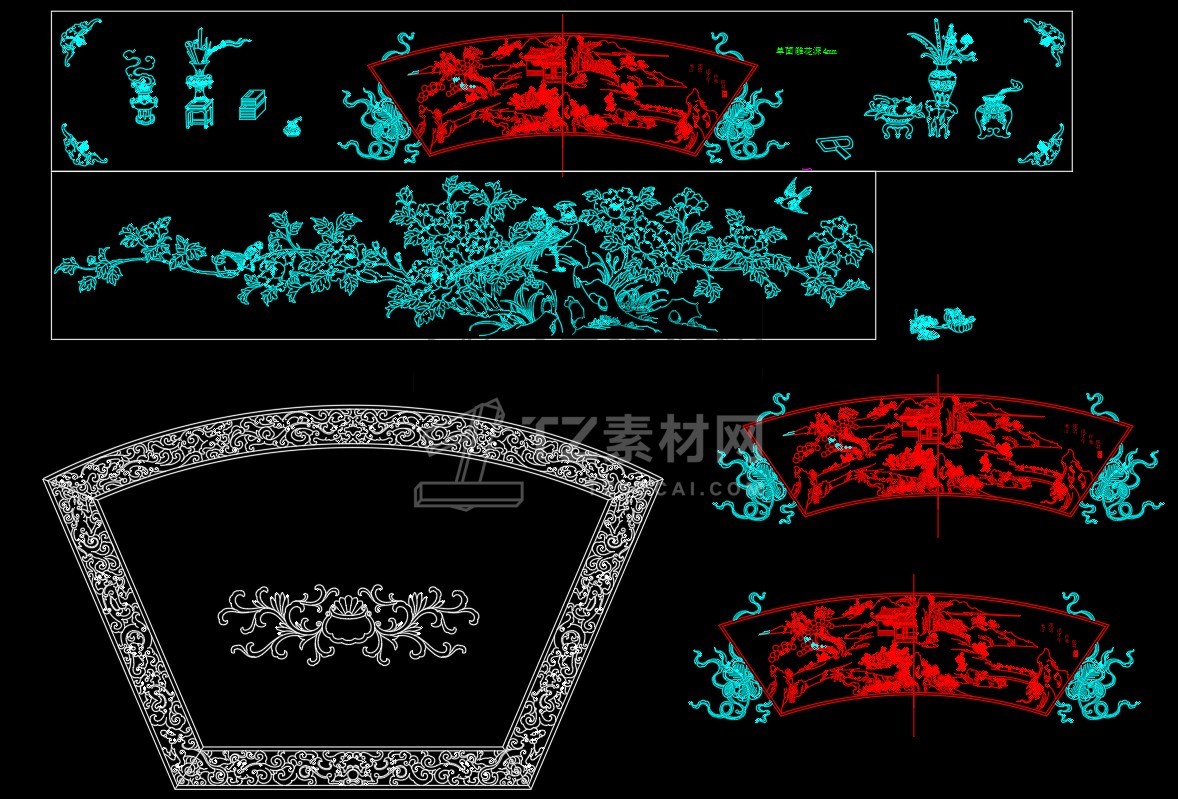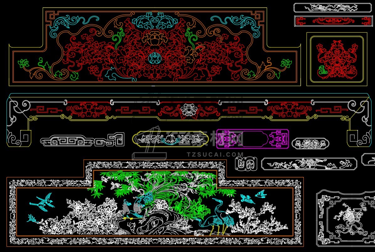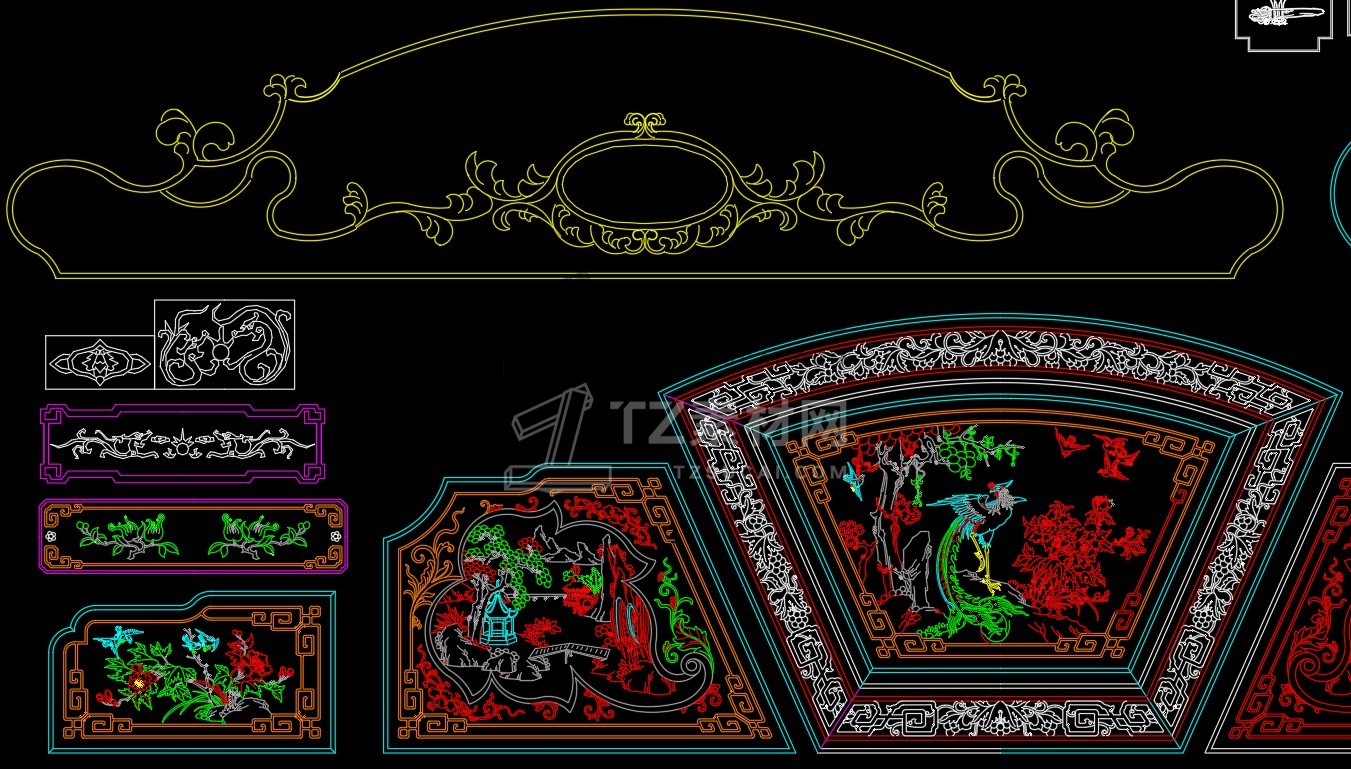 中式雕花构件CAD图库