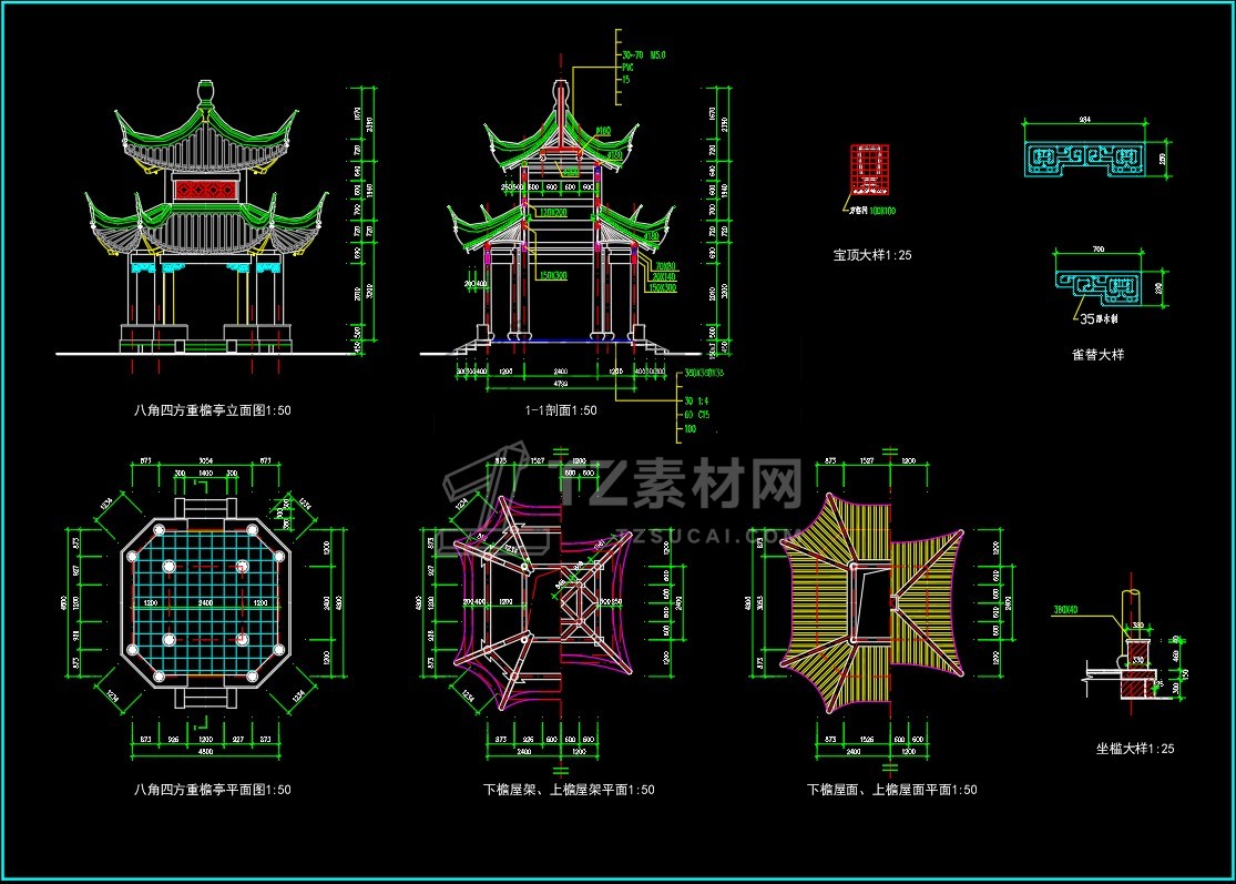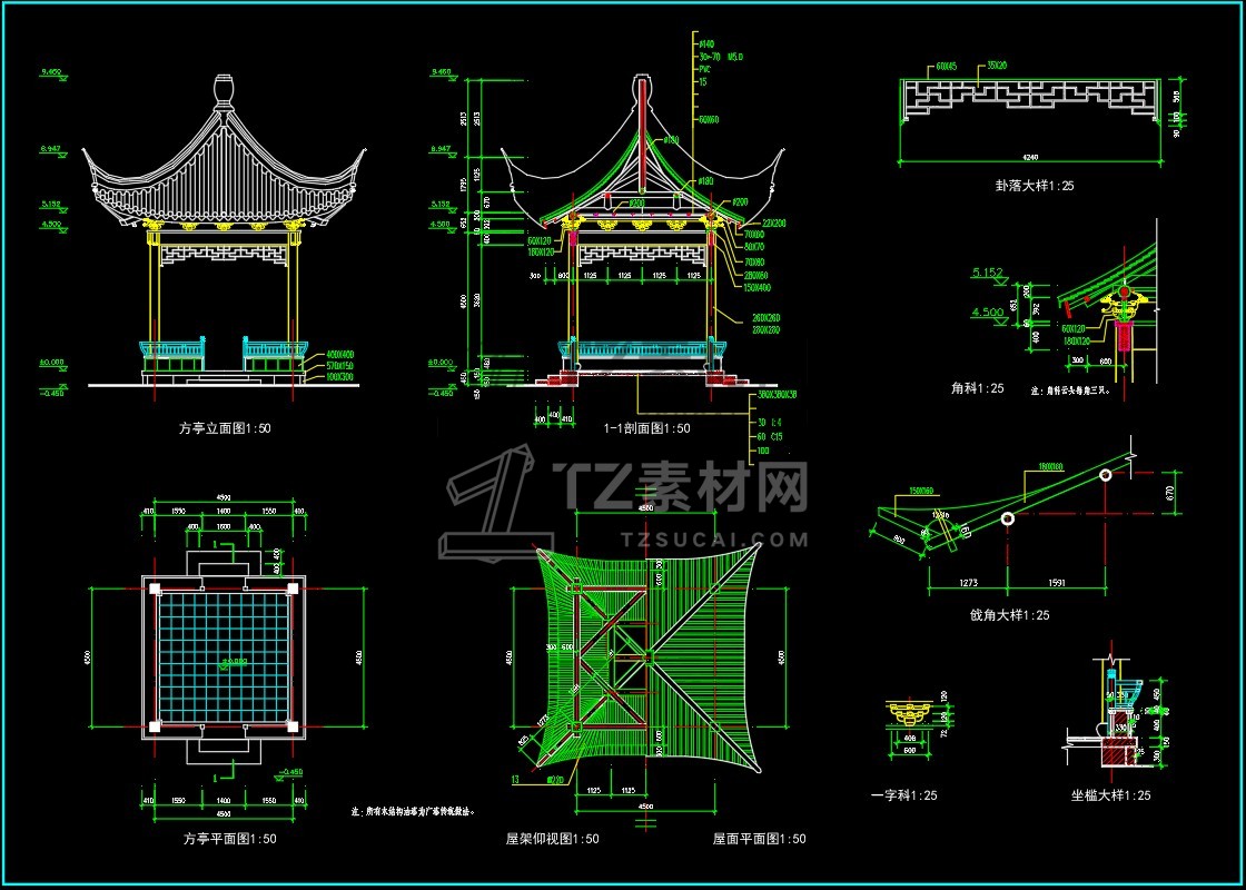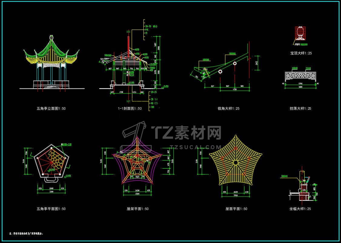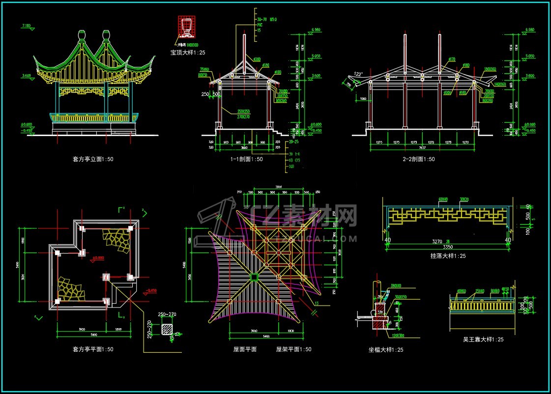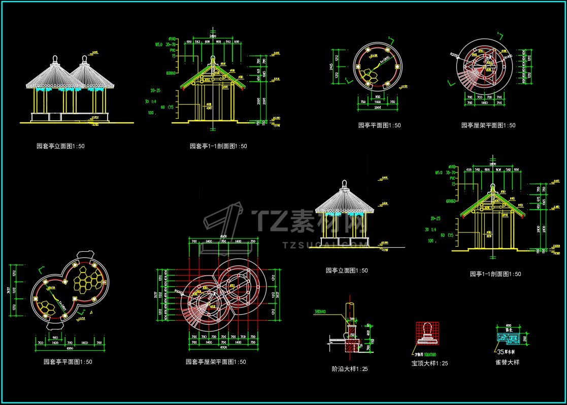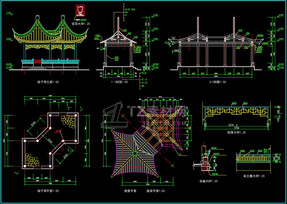 CAD亭子大全六角亭施工图CAD图库图块