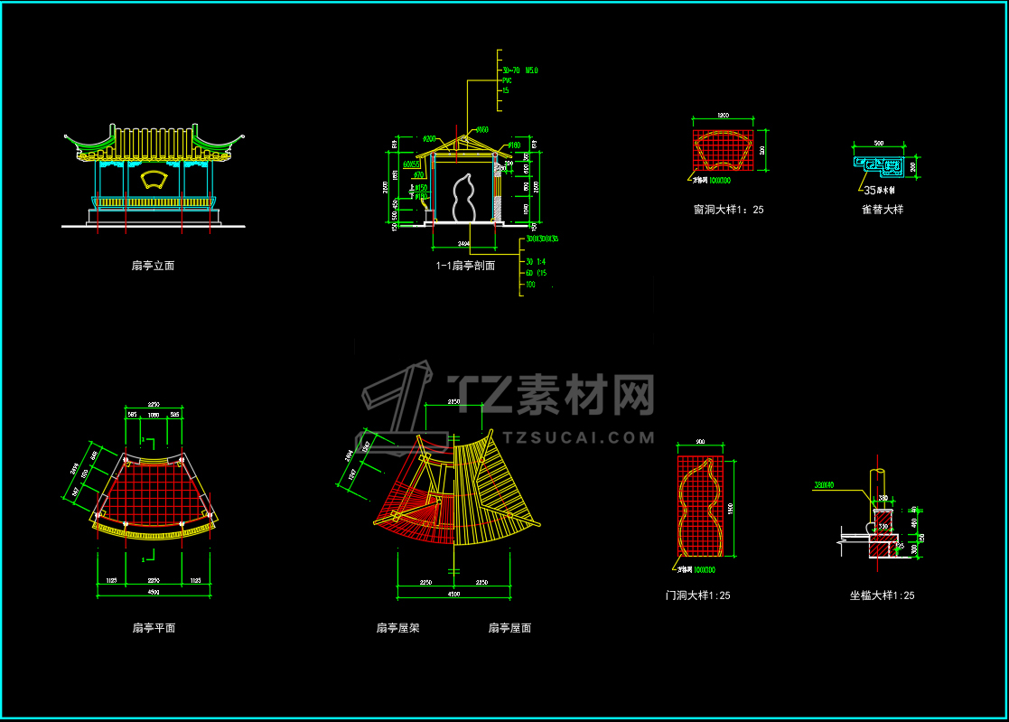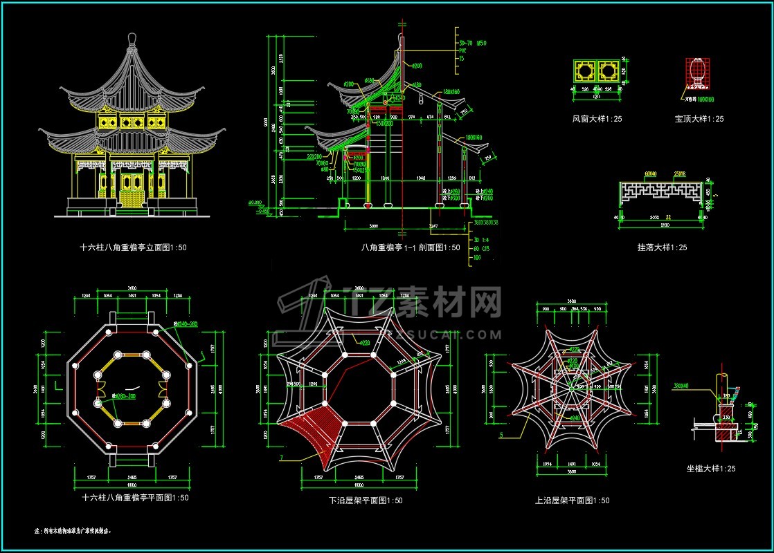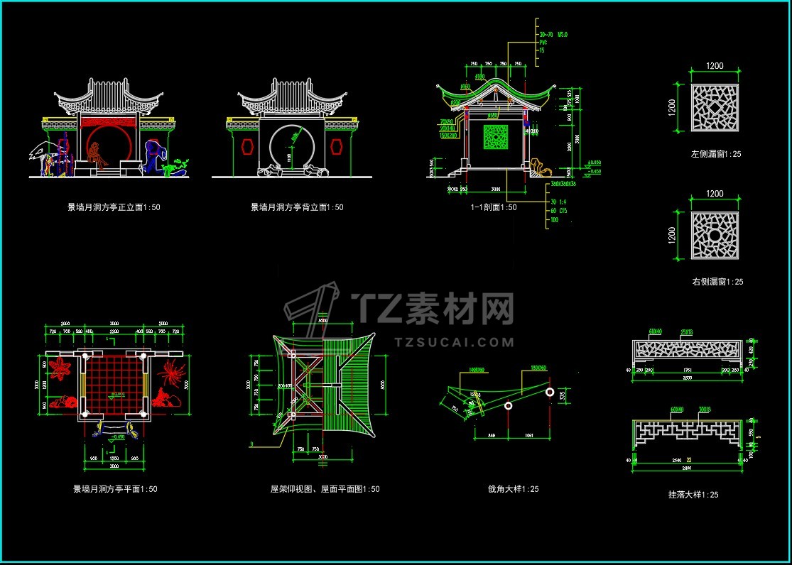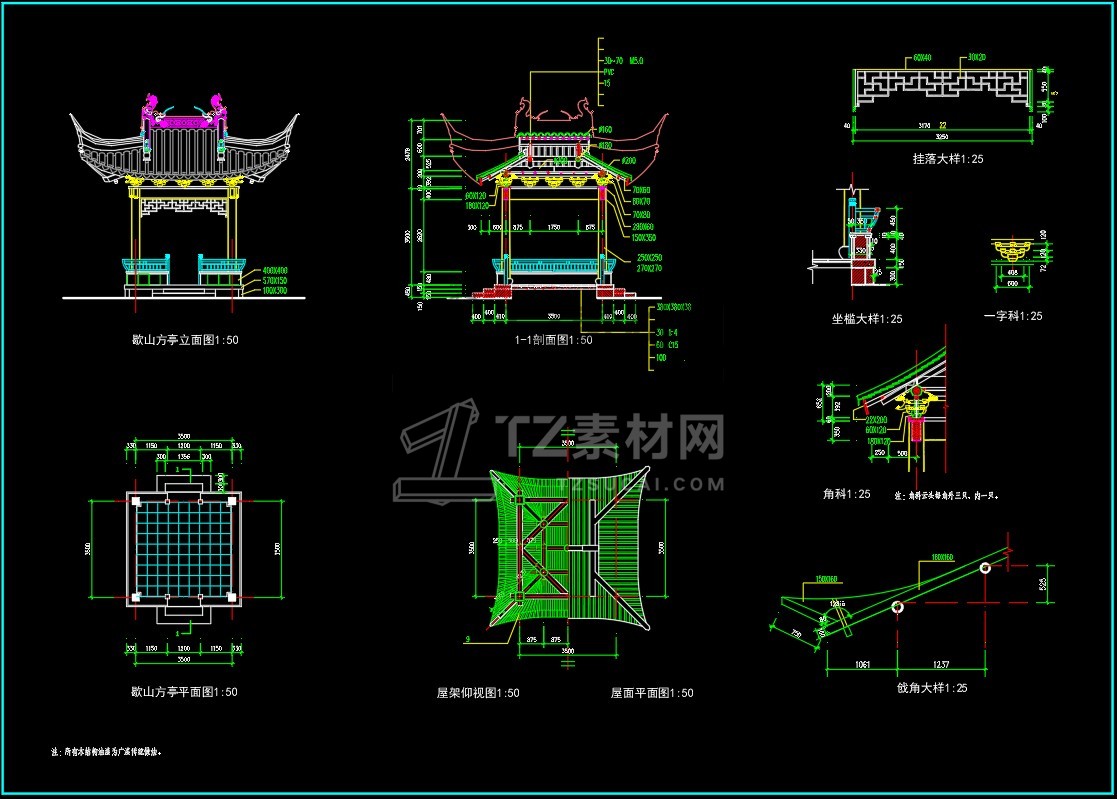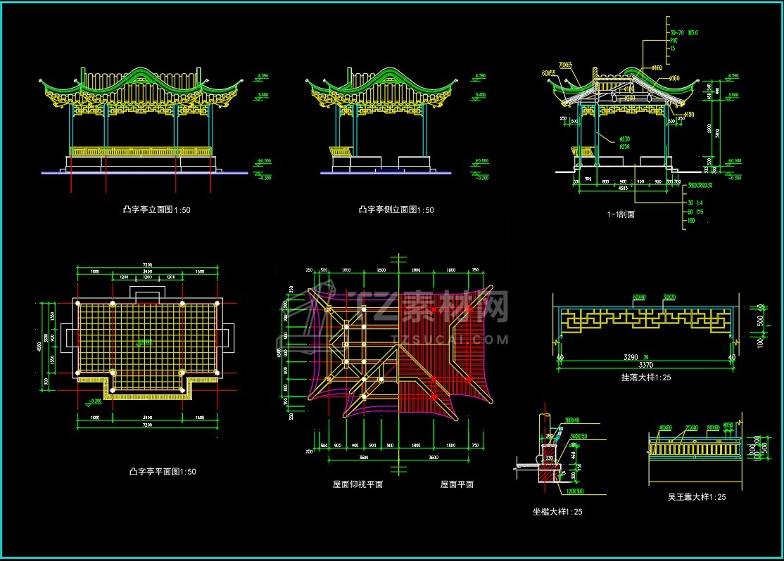 CAD亭子大全六角亭施工图CAD图库图块