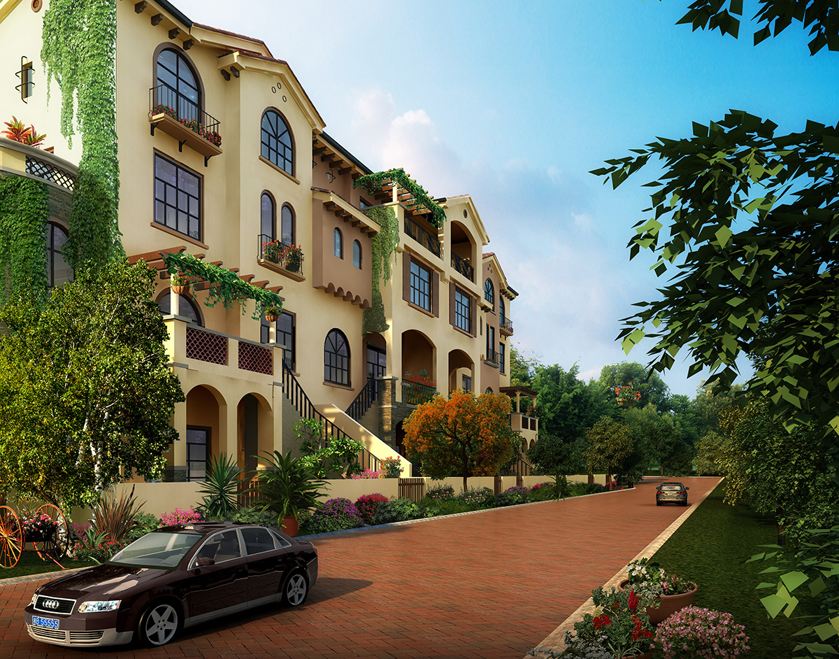 别墅庭院私家屋顶花园PSD素材