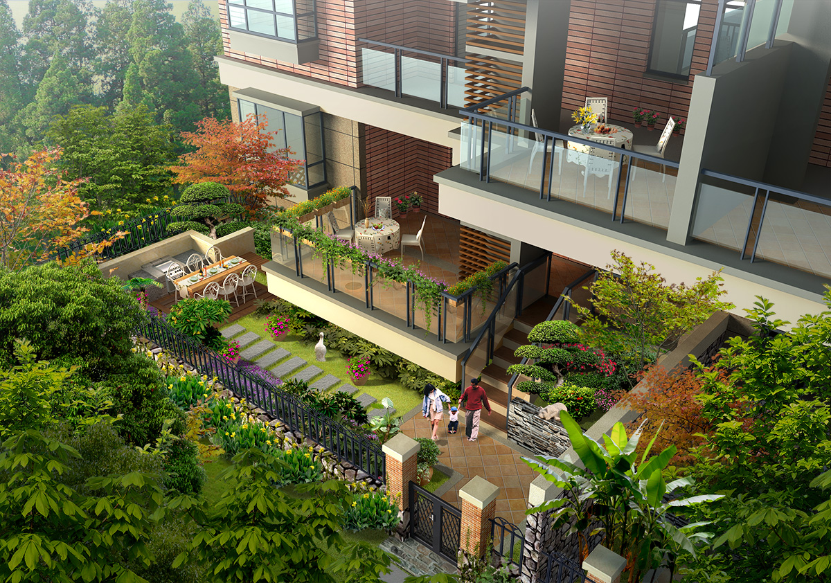 别墅庭院私家屋顶花园PSD素材