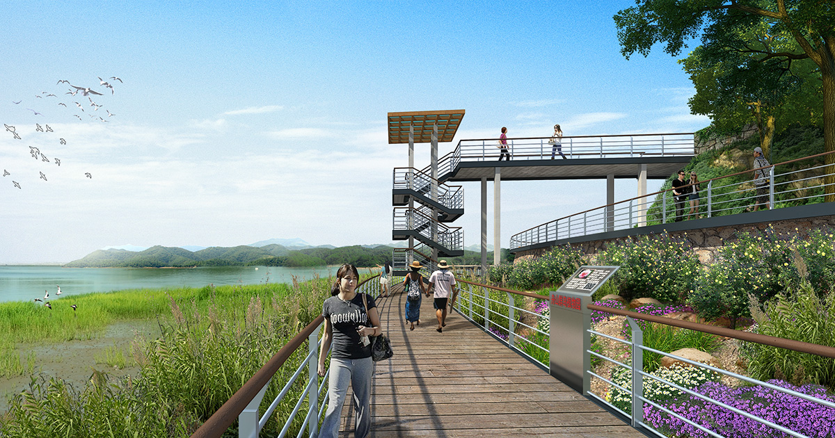 滨水河道湖边栈道景观后期psd素材源文件分层图层